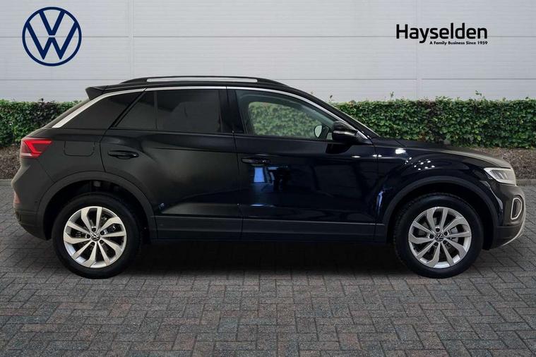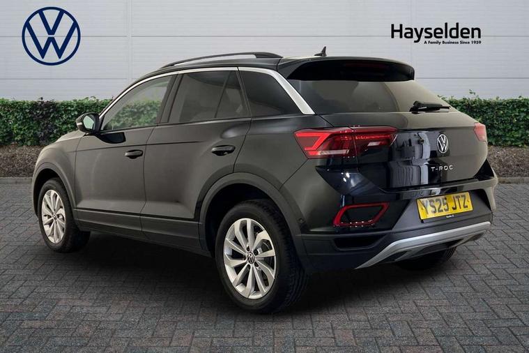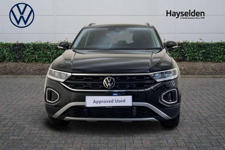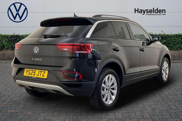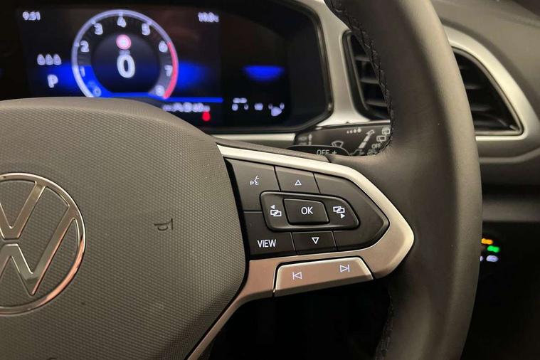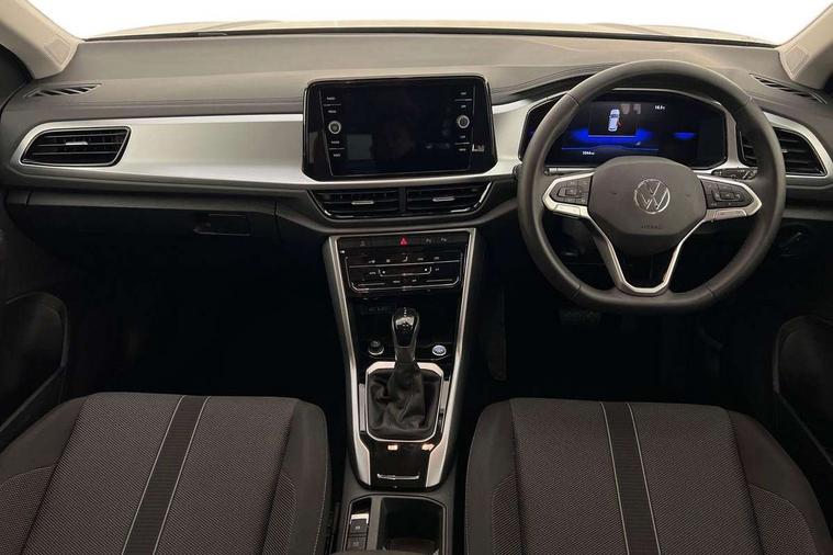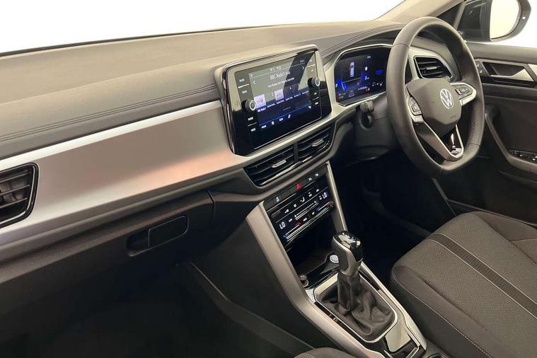 Advanced driver attention and drowsiness monitor, Dynamic road sign display, Emergency call service, Lane keeping system Lane Assist, Mobile phone interface, Modified key software - reduce switch off time for key status change to Long no motion, Online services, Park assist including front and rear parking sensors, Power assisted speed sensitive steering, Rear view camera, Service interval indicator, Tailgate/trunk lid release from outside, Think blue trainer driver tips and journey analysis, Warning sound and light for front seatbelts unfastened, Wireless app connect, Battery regeneration during braking, Front shock absorption, Rear shock absorption chassis with increased ride height, Start/stop function with battery regeneration, DAB Digital radio, Diversity antenna for FM reception, Front and rear 6 speakers, Music playback - MP3, WMA and AAC files, Premium USB cable in choice of either Apple or Android smartphone compatibility, SD card slot, Simultaneous pairing of 2 compatible mobile devices, Title and cover art display, We Connect and We Connect Plus functionality, Auto dimming interior rear view mirror, Automatic hazard lights activation under emergency braking, Automatic headlight control with LED separate daytime running lights with coming/leaving home function, Black roof rails, Body coloured bumpers and radiator grille with chrome trim and front fog lamps with chrome bezel, Body coloured exterior mirror housings and door handles, Electrically adjustable and heated door mirrors, Extended roof spoiler, Exterior mirrors aspherical on driver side, convex on front passenger side, External USB type C socket and charging sockets, Front windscreen wiper with intermittent wipe and 4 position delay, Heated rear window, LED 3rd brake light, LED rear combination lamps, LED rear number plate lights, Power windows with comfort operation and circuit breaker, Privacy glass for rear side windows and rear window, Rain sensor, Rear exhaust tailpipe, Rear fog light on one side and reversing lights on both sides, Rear side wing doors, Rear wash/wipe with intermittent wipe setting, Remote electrically foldable door mirrors, puddle lights and reverse activated passenger's door mirror, 12V power socket in centre console, 3 rear head restraints, 3 seat bench in 2nd row, 4 load lashing points in luggage compartment, Air care climatronic air conditoning system with active combination filter and 2-zone temperature control, Black stitching for floor mats, Ceramique roof liner, Cloth upholstery, Door and side trim panel in cloth, Drawer under drivers seat, Driver/front passenger seat height adjustment, Front centre armrest, Front comfort sports seats, Front cupholders x 2, Front reading light, Front seat back storage pockets, Glove compartment door with light, Instrument lighting, white adjustable panel illumination, Interior ambient lighting and surround lighting, Interior light delay, Isofix child seat preparation, Leather gearshift handle, Load-through provision with cup holder when folded down ('Unsplit rear seat bench, split folding backrest, with centre armrest), Luggage compartment lighting, Lumbar support for driver's and front passengers seat, Non-folding front passenger seat backrest, Single front passenger seat, Storage compartment in left and right luggage area, Storage compartment in rear doors, Storage compartments in driver and front passenger doors, Sunvisors with illuminated vanity mirrors, Variable boot floor, height adjustable and removable, Driver assistance pack without proactive passenger protection - T-Roc Life/Match, 3 point height adj front seatbelts + pretensioners, 3 point seatbelts in outer rear with ECE label, ABS, Child locks on rear doors, City emergency braking and pedestrian monitoring, Driver and front passenger airbag with front passenger airbag deactivation, Driver and front passenger safety-optimised head restraints, Drivers seatbelt reminder, Electronic parking brake, Electronic Stability Control (ESC) inc EDL (Electronic Differential Lock) and ASR (Traction Control), Front and rear passengers curtain airbag system including front side airbags, Front disc brakes, Hill start assist, Predictive pedestrian protection, Rear disc brakes, Two tone horn, Tyre pressure loss indicator, Volkswagen roadside assistance, Alarm with interior protection, Keyless locking and starting system keyless access with safelock, Pewter matt decorative inserts for intrument panel, centre console and door panels at the front, Trims for alloy wheels,