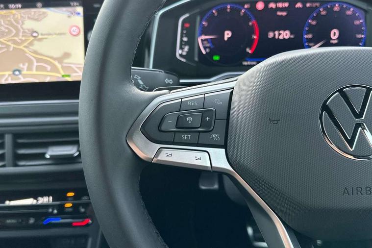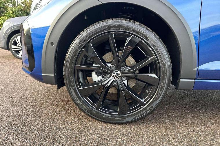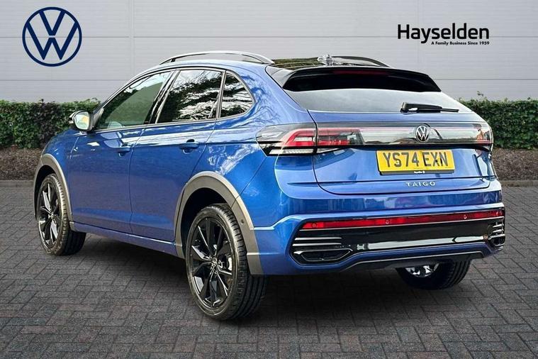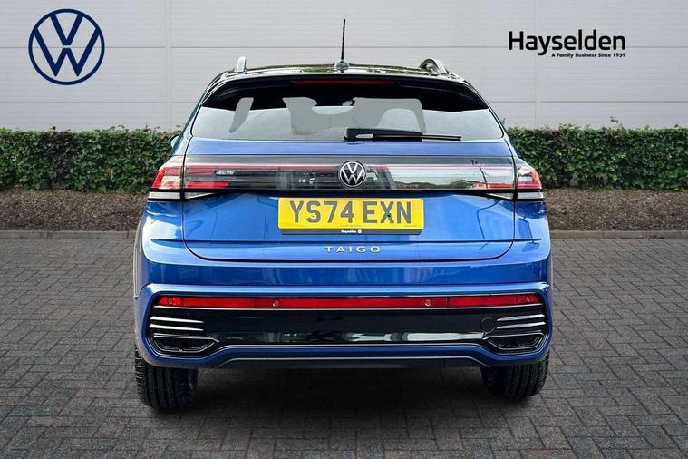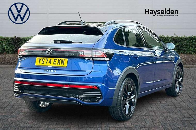 Adaptive cruise control, Advanced driver attention and drowsiness monitor, App-Connect including App-Connect Wireless, Digital cockpit pro - 10.25" high resolution TFT dash display screen with customizable menus and information, Driving profile selection, e-Call (emergency call), Power Steering, Travel assist including emergency assist, Washer fluid level indicator, Wireless Charging including Bluetooth, Start-stop system with battery regeneration (recuperation - energy recovery during braking), XDS electronic differential lock for improved traction and handling, Digital radio reception (DAB+), Diversity antenna for FM reception, WeConnect plus, Ambient lighting with logo projection, Aspherical driver's exterior mirror, Auto headlights, Body coloured bumpers, Body coloured door handles, Cornering headlights, Electric windows, External USB type C socket and charging sockets, LED rear combination lamp, LED third brake light, Left convex exterior mirror, Power folding adjustable/heated exterior mirrors and front passenger exterior mirror lowering function, Rear fog light on one side, reversing light on both sides, Rear side wing doors, Rear wash/wipe with intermittent wipe setting, 12V socket in centre console, 2 front reading lights, 3 rear head restraints, 3 seat bench in 2nd row, Air care climatronic air conditoning system with active combination filter and 2-zone temperature control, Black carpets, Black roof lining, Child seat anchor for child seat system i-Size, 2x top tether and child seat anchor in front on front passenger side, Chrome bezel for instrument cluster, vents, door handles + gear shift, Driver and front passenger seat height adjustment, Front + rear carpet mats, Front centre armrest, Front footwell illumination, Front sports comfort seats, Heated front seats, Height and reach adjustable steering wheel, Interior ambient lighting and surround lighting, Karoso artvelours cloth upholstery, Leather trimmed gear knob, Leather wrapped multifunction steering wheel, Luggage compartment floor, Luggage compartment light, Lumbar support for driver's and front passengers seat, Seat covers in grey + titanium black, Single front passenger seat, Split folding backrest with centre armrest and unsplit rear seat bench, Stainless steel pedals, Storage compartment under front seats, Sun visors with illuminated vanity mirrors, Black design pack - Taigo Black Edition, Black roof pack with mirror housing - Taigo, IQ.LIGHT - LED matrix headlights pack - Taigo, Light and Sight pack including High beam assist - Taigo, 2 x 3-point seatbelts/outer rear seats with ECE label, 3-point seat belts in front with pretensioner and height adjustment, 3-point seatbelt for centre rear seat, Adaptive driver and front passenger airbags with passenger airbag deactivation function, Driver and front passenger safety-optimised head restraints, Electronic stability control, Extended and predictive pedestrian/ cyclist protection, Front and rear disc brakes, Front curtain and side airbags with center airbag, Hill start assist, Manual rear child locks, Single tone horn, Tyre pressure loss indicator, Anti-theft alarm system with interior monitoring, backup horn, and towing protection, Grey anodised matte decorative inserts in dash and front door panels, 18" York black alloy wheels with anti theft wheel bolts, Breakdown kit, Low rolling resistance tyres,