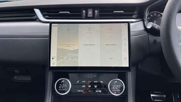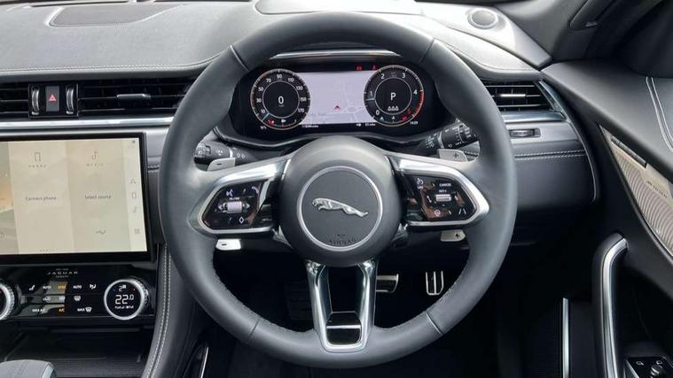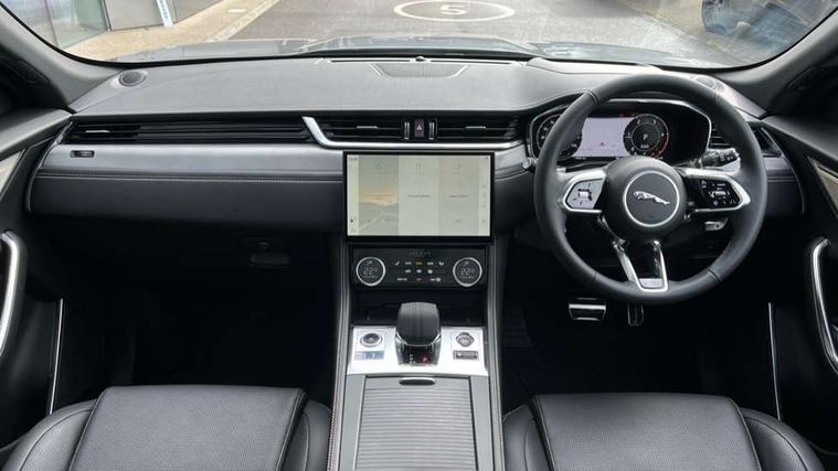 11.4" touchscreen, Android Auto, Apple car play, Blind spot assist, Bluetooth connectivity, Clear exit monitor, Driver alert system, Driver condition monitor, eCall emergency call system, Eco driving style assistant, Electric power assisted steering, InControl remote, Interactive driver display digital with 12" TFT display, Jaguar Toggle shift selector, Lane departure warning system, Lane keep assist, Outside temperature gauge, Personalisation profile management, Pivi pro connected navigation system with app interface and media storage, Pro services and wifi hotspot, Push button starter, Rear traffic monitor, Service interval indicator, Speed proportional steering, Start up sequence with movement in dials and lighting, Traffic sign recognition with adaptive speed limiter, Trip computer, Voice control system, Wireless device charging, 8 speed automatic transmission, All terrain progress control, All Wheel Drive (AWD), Open differential with torque vectoring by braking, AM/FM radio, Bluetooth streaming, DAB Radio (Digital Audio Broadcasting), Dynamic volume control, InControl apps, InControl protect, iPod integration, 3 flash lane change indicators, Animated directional indicators, Approach Illumination, Auto dimming rear view mirror, Auto high beam assist, Automatic headlights, Electric heated/power fold memory door mirrors with approach lights and auto dimming driver side, Electric windows with one touch open/close and anti trap, F-Pace and R Dynamic badge, Green tinted glass, Heated front windscreen + heated washer jets, Heated rear window with timer, Jaguar script and leaper, LED High level third brake light, LED tail lights, Metal load space scuff plates, Non acoustic front windscreen, Privacy glass, R Dynamic badge on side door, Rain sensor windscreen wipers, Rear fog lights, Rear metal tread plates, Rear side wing doors, Rear wiper, Trailer stability assist, Variable front intermittent wipers, 12V power point front, 3 rear headrests, 3 seat bench in 2nd row, Additional power sockets - Two additional USB sockets in rear centre console and one 12V socket in trunk, Air distribution speed, Bright metal foot pedals, Centre armrest console, Centre console with side storage, Configurable cabin lighting, Deletion loadspace storage rails, Door sill tread plates, Fold flat front seats, Front centre armrest with storage compartment, Front door storage space, Glovebox finisher with jaguar script, Heated steering wheel, Hooks in loadspace, Illuminated glovebox, Interior front door handles with separate locking switches, ISOFIX on outer rear seats, Jaguar sense, Leather steering wheel, Luggage tie downs in loadspace, Mist sensing, Multifunction steering wheel, Overhead lighting console, Overhead stowage for sunglasses, Passive front head restraints, Premium carpet mats, Rear air vents, Rear armrest with twin cupholders, Rear centre headrest, Rear door storage space, Reversible boot floor, Satin chrome gearshift paddles, Shopping bag hook, Single front passenger seat, Sunvisors with illuminated vanity mirrors, Twin front cupholders with cover, Online Pack with data plan - F-Pace, 355mm front brakes and 325mm rear brakes, 3x3 point rear seatbelts, ABS, All surface progress control (ASPC), Brake pad warning light, DSC - Dynamic Stability Control, Electric parking brake (EPB), Emergency brake assist, Front airbags with passenger seat occupant detector, Front and rear seatbelt reminder, Front side airbags, Full length side window curtain airbag, Hill launch assist, Power operated child locks, Traction control, Tyre pressure monitoring system, Immobiliser, Keyless entry, Keyless Start, Locking wheel nuts, Perimeter alarm, Remote central locking, Valet mode,