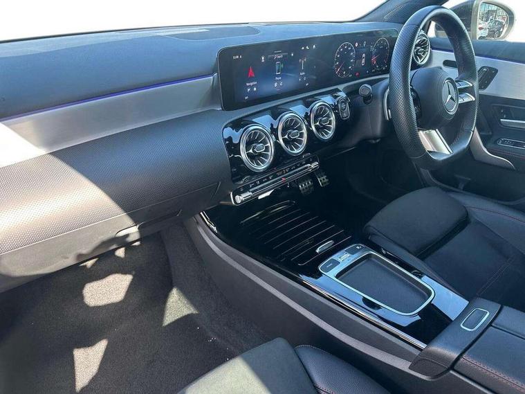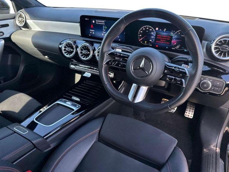 10.25 inch touchscreen central media display, 10.25" Digital instrument cluster display screen, Attention assist, Brake pad wear indicator warning light, Car wash mode, Direct steering, Direction indicators with lane change function, Dual bluetooth interfaces, DYNAMIC SELECT with a choice of driving modes (ECO, Comfort, Sport and Individual), ECO start/stop function, Engine start/stop button, Fluid level warning indicator for fuel, oil, coolant and washer fluid, Fluorescent jacket for driver, Hard-disk navigation, Head up Display, Hey Mercedes Voice activation, Lamp failure indicator, MBUX augmented reality for navigation, MBUX Interior assistant, Mercedes me connect including emergency call system, accident recovery, breakdown and maintenance management, Mercedes me remote services, Outside temperature gauge, Owners manual in English, Pre-installation of private car share, Preinstallation for Mercedes Benz link, Remote boot closing, Service indicator (ASSYST), Smartphone integration with Apple CarPlay and Android auto, Speed sensitive power steering, Traffic sign assist, Trip computer in multifunction display with current consumption indicator, Wireless charging, Lowered comfort suspension, DAB Digital radio, MBUX multimedia system, Mercedes Benz advanced sound system (225 W) with 10 speakers, 1 central speaker, speakers on doors, a tweeter on door, one sub woofer + boost amplifier, 4 Electric Front and Rear windows, Adaptive brake lights, AMG body styling - AMG front apron with front splitter and AMG rear apron and visible exhaust tailpipe trim elements, Body colour bumpers, Body colour door handles with chrome inserts, Body colour side skirt, Body coloured door mirrors, Chrome beltline strips, Diamond radiator grille with pins in fine star pattern, Electric adjustable and heated door mirrors with integrated LED side indicators, Exhaust system with 2 visible tailpipe trim elements and rear apron, Headlamp assist automatic headlamp activation, Heat insulating dark tinted rear and rear side windows, Heated glass rear windscreen + timer control, LED daytime running lights, LED tail lamp, Multibeam LED headlamps with adaptive highbeam assist and cornering function, Panoramic sliding sunroof, Privacy glass, Radio aerial, Rain sensing windscreen wipers with two sensitivity settings, Rear boot, Rear fog lights, Rear side wing doors, Surround lighting with logo projection, Third brake light featuring LED technology, Window line trim strip in chrome, 3 seat bench in 2nd row, 3 Spoke flat bottom leather multi function steering wheel with perforated leather in grip area, 40:20:40 split folding rear seats, Air conditioning - Two zone thermotronic luxury automatic climate control with display, Automatic child seat recognition sensor, Black air vents with surround in silver chrome, Black roof lining, Brushed stainless steel sports pedals with rubber studs, Electrically adjustable front memory seats including lumbar support and backrest inclination, Floor mats with AMG lettering, Front centre armrest with stowage, Front seat backs luggage nets, Galvanished gear shift paddles on steering wheel, Heated front seats, Height/reach adjustable steering column, Illuminated Mercedes Benz lettering front door sills with changeable cover, Interior lighting - 64 colour Ambient lighting, Interior mirror with reading lamps in black and frameless, Rear armrest with 2 cupholders, Seat occupancy sensor for front passenger seat, Single front passenger seat, Sports seats with adjustable head restraints, Stowage compartment in centre console with retractable cover, Sunvisors with illuminated vanity mirrors, Twin front cupholders, Keyless go comfort pack - A Class, Light and sight pack - A Class, Mirror package - A Class, Parking pack with 360 degree camera - A Class, Seat comfort pack - A Class, USB pack plus - A Class, 3 rear 3 point seatbelts, ABS with Brake Assist, Active bonnet, Adaptive brake assist with hold function and hill start assist, Black seatbelts, Bonnet with power domes, Childproof locks manually operated for rear doors and electrically operated for rear power windows, Crash responsive emergency lighting, Driver and passenger head and side airbags, Drivers knee airbag, Dual stage driver/passenger airbags, Electronic parking brake, ESP curve dynamic assist, ESP with ASR, Exit warning, Front and rear seatbelt reminder, ISOFIX and top tether child seat fixing points in two outer rear seats, Tyre pressure monitoring system, Warning triangle and first aid kit, Window airbags, Alarm system/interior protection/immobiliser, Guard 360 degree vehicle protection, Remote central locking and crash sensor with emergency opening function, Light longitudinal grain aluminium trim, 19" AMG multi-spoke light alloy wheels, aerodynamically optimised, painted in titanium grey with high sheen finish, Summer tyres, Tirefit sealant kit,