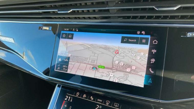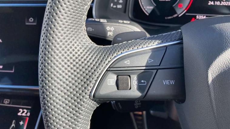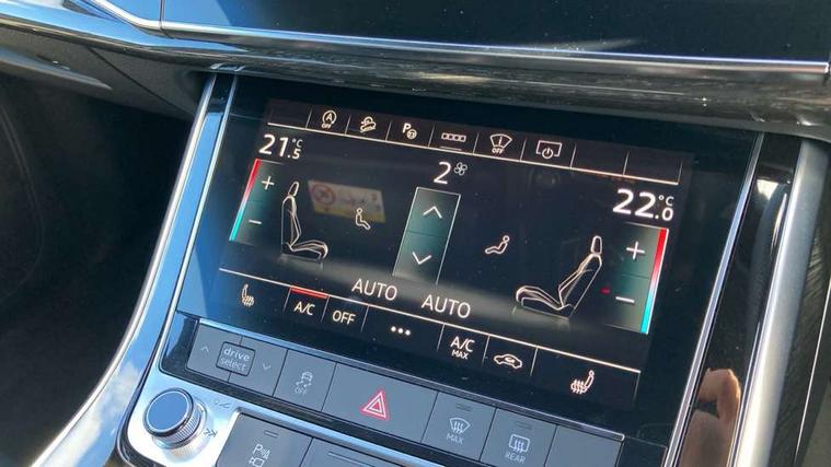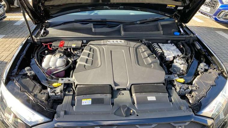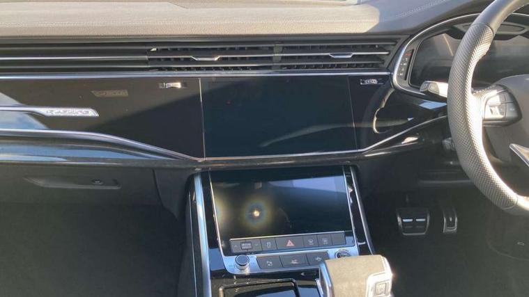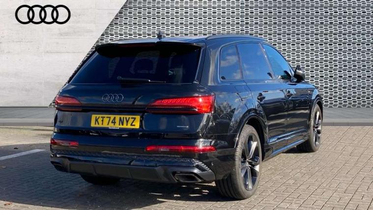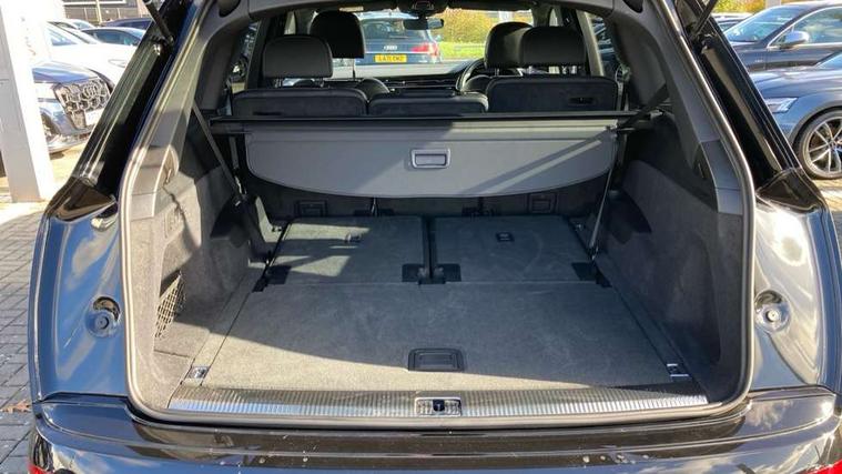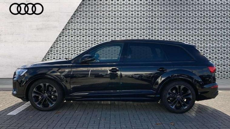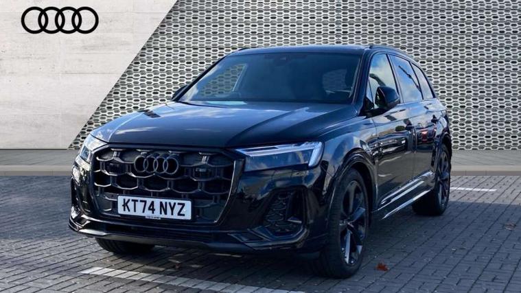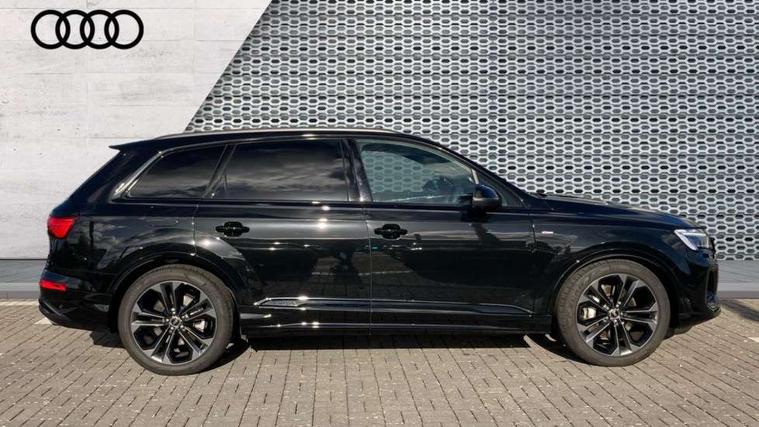 Audi connect safety and service (e-call), Audi connect with Amazon Alexa Integration, Audi drive select (Auto, Comfort, Dynamic, Efficiency, Individual, Off-road and All road), Audi phone box light with wireless charging, Audi virtual cockpit - 12.3" high-resolution LCD display with fully customisable instrument cluster, Bluetooth interface, Camera based traffic sign recognition, Electromechanical power steering, MMI navigation plus with MMI touch screens includes 10.1" and 8.6" screens with haptic feedback, Natural voice recognition, Operating buttons in Matte black, Parking system plus with 360 degree display (front, rear and side sensors) - acoustic and visual park assist system, Power operated tailgate, Rear view camera, Smartphone interface includes wireless Apple carplay/Android Auto, Start/stop system, 48V Mild hybrid technology, Adaptive air sports suspension, Quattro all wheel drive with self locking centre differential, Audi music interface - front 2 USB-C ports with charger and data functions, Audi sound system with 6 channel amplifier, 180 watt amplifying capacity and 10 loudspeakers including subwoofer, DAB digital radio module, Audi Beam uses LEDs to project S emblem with red rhombus onto the ground when opening the side doors (front/rear), Auto dimming frameless rear view mirror, Black exhausts, Black roof rails, Electrically adj heated/folding + automatically dimming exterior mirrors with memory + automatic kerb side function for passenger side exterior mirror, Heat insulating glass in windshield, Integrated LED indications in door mirrors, LED 3rd brake light, LED daytime running lights, LED rear tail lights, Loading edge protection in stainless steel, Matrix LED headlights with dynamic front and rear indicators, Privacy glass - dark tinted rear and rear side windows from B-pillar backwards, Rear side wing doors, Rear wiper, 2 seat bench in 3rd row, 2 zone automatic climate control, 3 seat bench in 2nd row, 7 seat layout with ISOFIX points for the front passenger seat and rear passenger seat, Black cloth headlining, Comfort front centre armrest, Electric adjustable front seat with 4 way lumbar support, driver memory functionality, Folding rear seats, Front head restraints, Front/rear floor mats, Heated front seats, Illuminated door sill trims with S logo, ISOFIX child seat mounting for front passenger seat and 2 outer rear seats with top tether child seat mounting for all 3 rear seats, LED interior ambient lighting, Luggage compartment cover, Luggage compartment sill protection in stainless steel, Rear head restraints, Single front passenger seat, Stainless steel pedals, Sunvisors with illuminated vanity mirrors, Black styling pack plus - Q7, 3 point seatbelts on all rear seats, Audi pre sense front, Child locks on rear doors, Convenience key with safelock and gesture tailgate, Driver and front passenger, front side and curtain airbags, Electromechanical parking brake, Electronic Stabilisation Control (ESC) including ABS, ASR and EDL, Extended pedestrian protection measures, Hill hold assist, Seatbelt reminder, Tyre pressure loss indicator, Warning triangle and first aid kit, Anti theft alarm with tow away protection, Anti-theft wheel bolts and wheel loosening detection, Keyless Go, Remote central locking, Polished oak trim with grey finish inlay, Tool kit, Tyre repair kit,