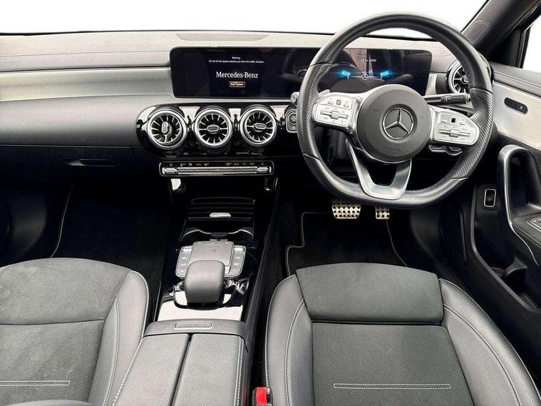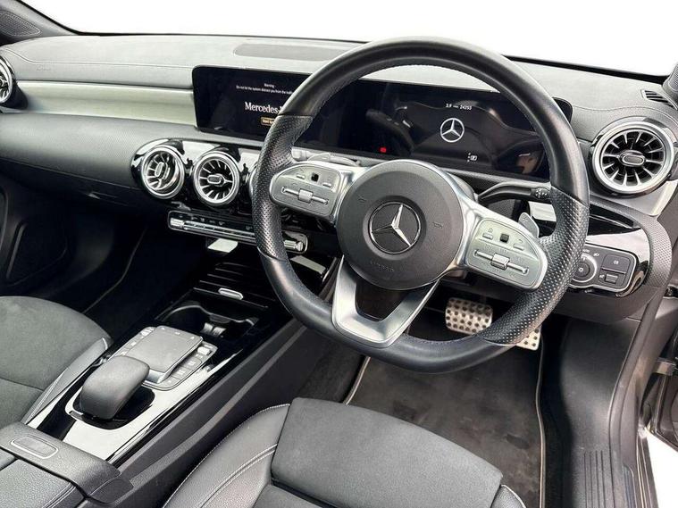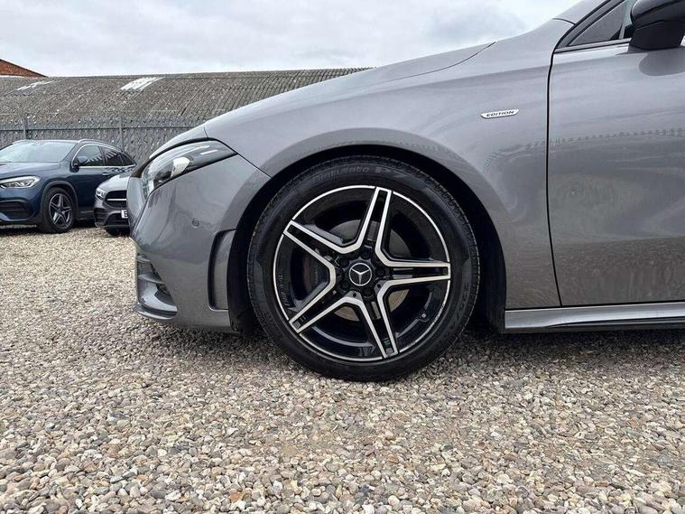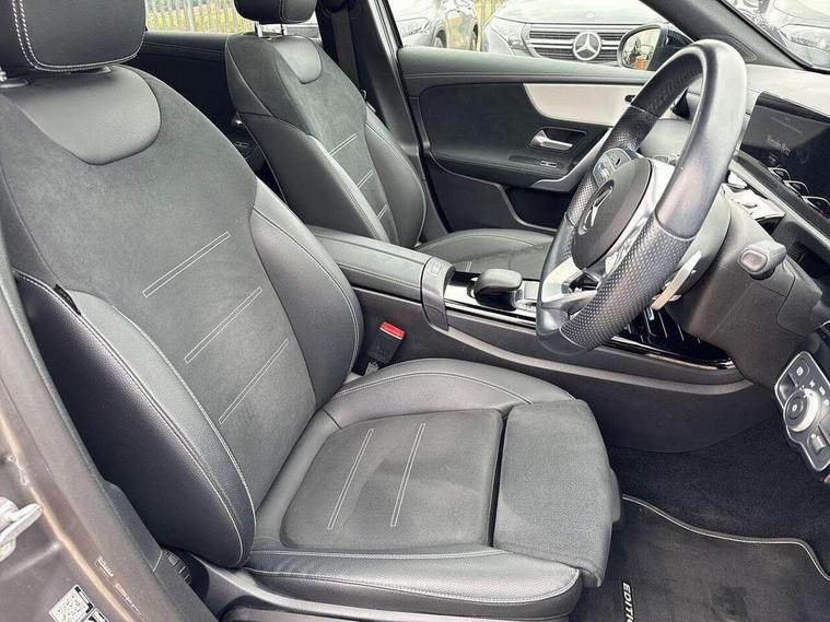 10.25" Digital instrument cluster display screen, 10.25" media display, 180 degree rear view camera with parking guidelines, Active parking assist with visual and audible warning of detected obstacles, Attention assist, Brake pad wear indicator warning light, Car wash mode, Direct steering, Dual bluetooth interfaces, DYNAMIC SELECT with a choice of driving modes (ECO, Comfort, Sport and Individual), ECO start/stop function, Fluid level warning indicator for fuel, oil, coolant and washer fluid, Hard-disk navigation, Hey Mercedes Voice activation, Lamp failure indicator, Lane keeping system, Mercedes me connect including emergency call system, accident recovery, breakdown and maintenance management, Mercedes me remote services, Outside temperature gauge, Owners manual in English, Pre-installation for private car sharing, Preinstallation for Mercedes Benz link, Service indicator (ASSYST), Smartphone integration with Apple CarPlay and Android auto, Traffic sign assist, Trip computer, Ultrasonic sensors positioned in the front and rear bumpers, Lowered comfort suspension, Rear axle torsion beam, 10 speakers, 2 USB ports (type C) in rear stowage compartment and one in front of center console, DAB Digital radio, MBUX multimedia system with DAB digital radio and touchpad including satellite navigation, Mercedes-Benz sound system - 100W, 4 Electric Front and Rear windows, Adaptive brake lights, AMG bodystyling - Front apron with splitter in chrome, rear apron with chrome trim and chrome visible trim elements in tailpipe, Automatic headlights, Black weather strip, Body colour bumpers, Body colour door handles, Body colour side skirt, Body coloured door mirrors, Electric adjustable and heated door mirrors with integrated LED side indicators, Exclusive diamond radiator grille, Exhaust system - Twin visible tailpipes in polished stainless steel, Headlamp assist automatic headlamp activation, Heated glass rear windscreen + timer control, High gloss black beltline, LED daytime running lights, LED tail lamp, Multibeam LED headlights with adaptive highbeam assist plus, Panoramic sliding sunroof, Privacy glass, Radio aerial, Rain sensing windscreen wipers with two sensitivity settings, Rear boot, Rear fog lights, Rear side wing doors, Third brake light featuring LED technology, Window line trim strip in high gloss black, 3 seat bench in 2nd row, 3 Spoke flat bottom leather multi function steering wheel with perforated leather in grip area, 40:20:40 split folding rear seats, Artico man-made leather/Microfibre Dinamica upholstery with contrast stitching in light grey, Auto Mercedes-Benz child seat recognition sensor, Black air vents with surround in silver chrome, Black roof lining, Brushed stainless steel sports pedals with rubber studs, Controller on centre console with chrome surround, Floor mats with black top stitching and embroidered edition logo and piping in light grey, Front centre armrest with storage compartment, Front seat backs luggage nets, Front seat cushion length adjustment, Galvanished gear shift paddles on steering wheel, Heated front seats, Height/reach adjustable steering column, Illuminated front door sills with changeable cover, Interior lighting - 64 colour Ambient lighting, Interior mirror with reading lamps in black and frameless, Rear armrest with 2 cupholders, Rear head restraints, Seat occupancy sensor for front passenger seat, Single front passenger seat, Sports seats with adjustable head restraints, Stowage compartment in centre console with retractable cover, Sunvisors with illuminated vanity mirrors, Touchpad on center console, Twin front cupholders, Two zone thermotronic luxury automatic climate control, Light and sight pack - A Class, Mirror package - A Class, Night pack - A Class Saloon/Hatchback, Seat comfort pack - A Class, 3 rear 3 point seatbelts, ABS with Brake Assist, Active bonnet, Adaptive brake assist with hold function and hill start assist, Black seatbelts, Childproof locks manually operated for rear doors and electrically operated for rear power windows, Crash responsive emergency lighting, Driver and passenger head and side airbags, Drivers knee airbag, Dual stage driver/passenger airbags, Electronic parking brake, ESP curve dynamic assist, ESP with ASR, Front and rear seatbelt reminder, Front brake callipers with Mercedes Benz lettering, ISOFIX and top tether child seat fixing points in two outer rear seats, Tyre pressure monitoring system, Warning triangle and first aid kit, Window airbags, Alarm system/interior protection/immobiliser, Keyless entry lock/unlock, Keyless Go, Remote central locking and crash sensor with emergency opening function, Urban guard vehicle protection system with immobiliser and interior protection, Matrix look light longitudinal grain aluminium trim element, 18" AMG 5 twin spoke light alloy wheels aerodynamically optimised painted in black with highsheen finish, Summer tyres, Tirefit sealant kit,