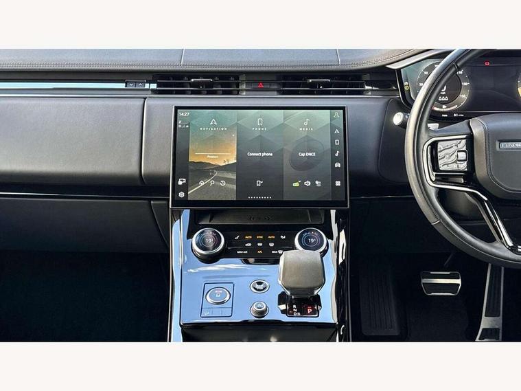 13.1" Touchscreen, 3D 360 degree surround camera with wade sensing, Adaptive cruise control with steering assist, Android Auto, Apple car play, Blind spot assist, Bluetooth connectivity streaming, Driver condition response, Eco mode, Electric power assisted steering (EPAS), Interactive Driver display instrument cluster, Lane departure warning system, Lane keep assist, Push button start, Rear collision monitor, Rear traffic monitor, Remote, Traffic sign recognition with adaptive speed limiter, Trip computer, Wireless device charging with phone signal booster, 8 speed automatic transmission, Adaptive dynamics, All wheel drive system, Automatic access height, Terrain Response 2, DAB Radio (Digital Audio Broadcasting), Incontrol protect - SOS emergency call with automatic collision detection, optimised assistance call and Incontrol remote app essential, Pivi pro connected, USB/aux input socket, Adaptive brake lights, Automatic headlight levelling, Automatic headlights, Centre high mounted stop light, Electric heated/power fold memory door mirrors with approach lights and auto dimming driver side, Electric windows with one touch open/close and anti trap, Flush deployable exterior door handles, Follow me home lighting, Front and rear recovery eyes, Headlight power wash, Heated rear window, Heated washer jets, Heated windscreen, LED tail lights, No badges, Rain sensing windscreen wipers, Rear animated directional indicators, Rear fog lights, Rear side wing doors, Rear wash/wipe, Remote window closing, Side repeater indicators in mirror, Trailer stability assist, Winter wiper park position, 3 seat bench in 2nd row, 60:40 seats with power recline and loadthrough, Air quality sensor, Auto air recirculation, Bright metal foot pedals, Centre console with armrest, Customer configurable single point entry, Driver's footrest, Easy boot loading, Ebony console door armrests and seatbelts, Electric adjustable steering column, Front and rear cupholders, Front door storage space, Front head restraints, Front map lights, Front seat back map pockets, Front stowage pocket, Front/rear passenger grab handles, Gearshift paddles, Heated steering wheel, Isofix child seat preparation, Loadspace cover, Loadspace Hook, Loadspace light, Loadspace mounting provisions, Lockable glovebox, Luggage tie-downs in loadspace, Multifunction steering wheel, Pollen filter, Power socket, Rear centre armrest, Rear head restraints, Rear ISOFIX, Single front passenger seat, Three 12V accessory power outlets, Upper secondary glovebox, Online pack with data plan - Range Rover Sport, 3 point seatbelts on all seats, Anti-lock braking system (ABS), Brake pre-fill technology, Configurable autolock, Cornering brake control (CBC), DSC - Dynamic Stability Control, EBD - Electronic brakeforce distribution, Electric parking brake, Electronic traction control, Emergency braking, Front seatbelt pretensioners, Front side airbags, Height adjustable front seatbelts, Hill descent control, Hill launch assist, Low traction launch, Occupant protection assist, Passenger seat occupant detector with front airbags, Power operated child locks, Roll stability control, Seatbelt warning, TPMS (Tyre pressure monitoring system), Immobiliser, Intrusion sensor, Keyless entry, Locking wheel nuts, Perimetric and volumetric anti theft alarm, Remote locking, Moonlight noble chrome interior finishers,