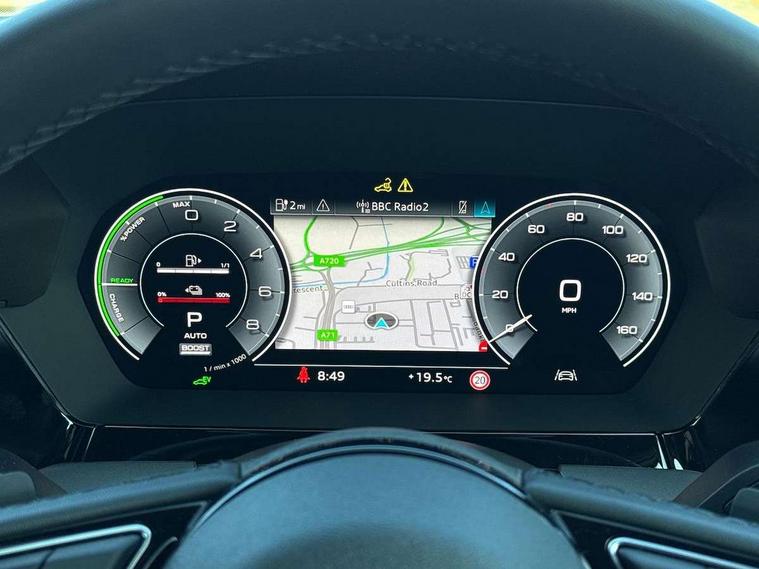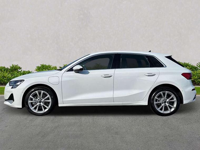 Adjustable speed limiter, Audi drive select, Audi smartphone interface with app store includes wireless Apple carplay, Android auto and Amazon alexa integration, Audi virtual cockpit plus - 12.3" full HD resolution dynamic digital instrument cluster, Automatic start/stop system with recuperation, Bluetooth interface, Camera based traffic sign recognition, Collision avoidance assistant, Cruise control, Distraction and Fatigue warning, e-Call (emergency call), Electromechanical power speed sensitive steering, Emergency assist, Lane departure warning system, MMI Navigation Plus with high resolution 10.1" colour touch screen display, Park Assist with parking system Plus, Service indicator, Trip computer, Voice control system with natural language interaction, 3 pin 10 amp domestic charging cable, CCS socket for DC charging, Charging cable for public charging, mode 3 (type 2), 32 A, Compact charging system, Industrial connector CEE 32 A, 230 V, length 1.6 m, Standard suspension, Type 2 socket for AC charging, Audi Phonebox light with wireless charging, Audi sound system - 10 loudspeakers including centre loudspeaker and subwoofer, DAB Digital radio, USB ports with charging function in the rear, 3rd brake light, Acoustic glass windscreen, Aluminium window trim, Auto dimming frameless rear view mirror, Body colour exterior mirrors, Body colour roof spoiler, Dipped beam, main beam, position light and turning light, Electrically adjustable/heated/folding/auto dimming door mirrors with integrated LED indications + kerb view function for passenger side, Exterior model badging, Front electric windows, Front radiator grill in high gloss dark chrome, Front side air inlets in grained matt black with silver frame, Heat insulating glass windscreen, LED daytime running lights, LED headlights and halogen rear lights, Light and rain sensors, Rear diffuser and grill in grained matt black with silver frame, Rear electric windows, Rear side wing doors, Rear window, rear door windows and rear side windows in clear glass, Rear wiper, 12V socket and storage compartment in front centre console, 3 seat bench in 2nd row, 3 spoke leather multifunction steering wheel with gear shift paddles, 3-zone deluxe automatic air conditioning, 4 way electrically adjustable lumbar support for driver and front passenger, 60/40 split folding rear seat bench, Black front and rear floor mats, Convenience auxiliary air conditioning, Front and rear headrests, Front centre armrest, Front door sill trims with aluminium inlay, Heated front seats, Height and reach adjustable steering wheel, Manual boot compartment lid, Manually adjustable front seats, Routine cloth upholstery with front sports seats, Seat side bolsters, Single front passenger seat, Steel grey cloth headlining, Aluminium interior elements pack - A3, LED interior lighting pack -A3, 3x3 point rear seat belts, Acoustic vehicle alerting system, Driver and front passenger airbag with passenger airbag deactivation, Electronic Stabilisation Control (ESC) including ABS, ASR and EDL, First aid kit with warning triangle and 2 safety vests, Front side airbags with head airbags and interaction airbag, Hill hold assist, Pre-sense front with pedestrian and cyclist detection, Seatbelt monitoring, Tyre pressure loss indicator, Anti theft alarm, Anti-theft wheel bolts, Electronically operated child locks, Immobiliser, Remote central locking with safelock, Black dashboard, Inlays in volcano grey fine paint finish, Tyre repair kit,
