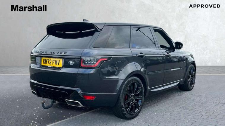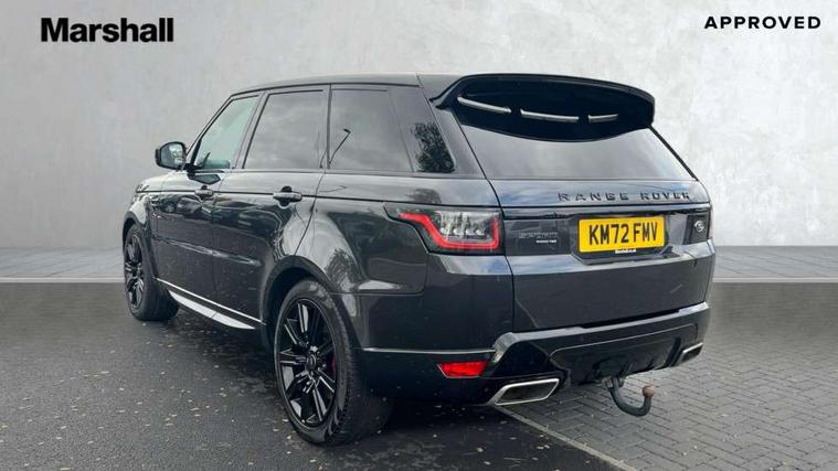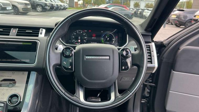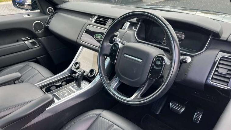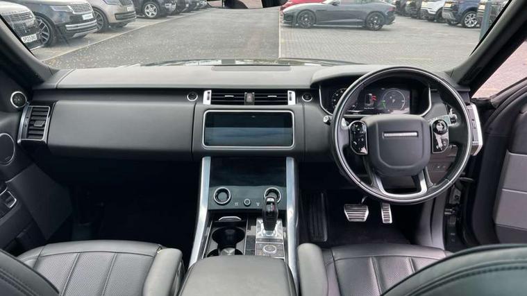 All Terrain Info Centre, Android Auto, Apple car play, Bluetooth connectivity, Electric power assisted steering (EPAS), Incontrol apps in vehicle touchscreen, Interactive Driver display instrument cluster, Mist sensor, Navigation pro system with 10" touch screen, app interface and media storage, Pro services and wifi hotspot, Push button start, Remote premium - Upgraded Incontrol remote app including remote climate control (engine dependent), remote lock + Unlock and remote beep + flash, TFT Virtual Instrument Panel, Touch pro duo system, Trip computer, 7 kW onboard charger, Adaptive dynamics, Electronic active differential with brake torque vectoring, Electronic air suspension, Engine cover, Gradient release control (GRC), Public charging cable, Terrain Response 2 with dynamic program, Twin speed transfer box, Bluetooth audio streaming, DAB Radio (Digital Audio Broadcasting), Incontrol protect - SOS emergency call with automatic collision detection, optimised assistance call and Incontrol remote app essential, USB/aux input socket, Acoustic front and toughened rear side glass, Acoustic laminated front windows, Adaptive brake lights, Auto dimming interior rear view mirror, Automatic headlights, Body coloured side sills and bumpers corners, Centre high mounted stop light, Electric windows with one touch open/close and anti trap, Electrical towing preparation, Follow me home lighting, Front and rear recovery eyes, Front fog lights, Headlight power wash, Heated rear window, Heated windscreen includes heated washer jets, Illuminated metal tread plates with brand name script, LED rear lamps, Privacy glass (Tinted glass rear of B pillar), Rain sensing windscreen wipers, Rear fog lights, Rear side wing doors, Rear wash/wipe, Remote window closing, Side repeater indicators in mirror, Sport Badge in black, Standard bonnet, Trailer stability assist, Twin bright tailpipes, 2 way active front head restraints, 2 way rear head restraints, 3 seat bench in 2nd row, Auto air recirculation, Bright metal foot pedals, Centre console with armrest, Climate control memory, Customer configurable single point entry, Driver's footrest, Extended leather upgrade includes door top rolls and leather instrument panel mid section, Front and rear cupholders, Front door storage space, Front map lights, Front seat back map pockets, Front stowage pocket, Front/rear passenger grab handles, Heated steering wheel, Isofix child seat preparation, Leather steering wheel with Atlas inserts, Loadspace light, Loadspace mounting provisions, Lockable glovebox, Multifunction steering wheel, Perforated Windsor leather upholstery, Pollen filter, Power socket, Reach/rake electric adjustable steering column + entry/exit tilt away, Rear centre armrest, Rear ISOFIX, Roller blind loadspace cover, Satin chrome gearshift paddles, Single front passenger seat, Sports pedals, Three 12V accessory power outlets, Black Exterior pack - Range Rover Sport, Smartphone pack - Range Rover Sport, 3 point seatbelts on all seats, Anti-lock braking system (ABS), Brake pre-fill technology, Cornering brake control (CBC), Curtain airbags, Customer configurable autolock, DSC - Dynamic Stability Control, Dual stage driver/passenger airbags, EBD - Electronic brakeforce distribution, Electric parking brake, Electronic traction control, Emergency braking includes city, urban AEB and pedestrian, Front seatbelt pretensioners, Gradient acceleration control, Height adjustable front seatbelts, Hill descent control, Hill launch assist, Low traction launch, Passenger seat occupant detector with front airbags, Power operated child locks, Roll stability control, Seatbelt warning, TPMS (Tyre pressure monitoring system), Immobiliser, Intrusion sensor, Keyless entry, Locking wheel nuts, Perimetric and volumetric anti theft alarm, Remote locking, Grand black veneer, 21" 9 spoke gloss black alloy wheels - style 9001, Tyre repair system,