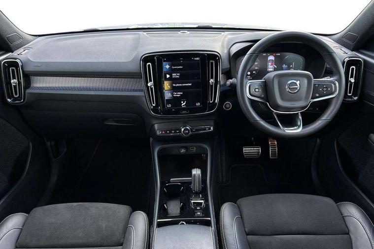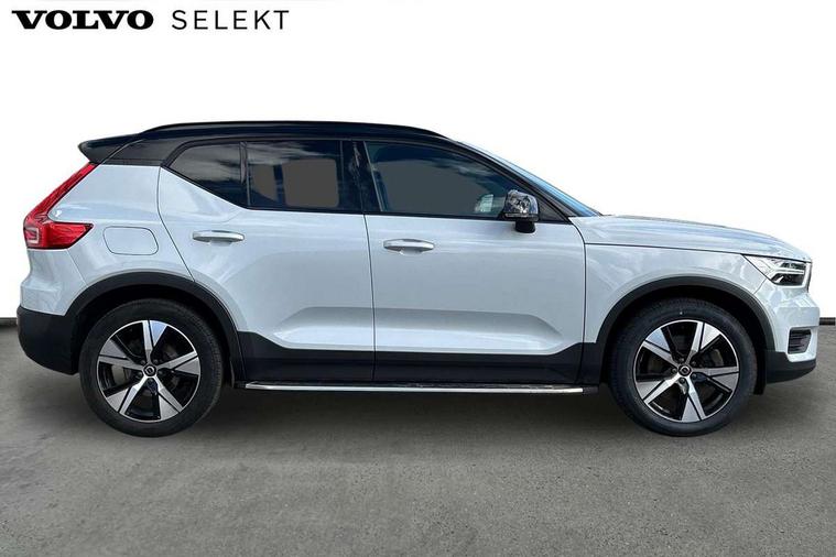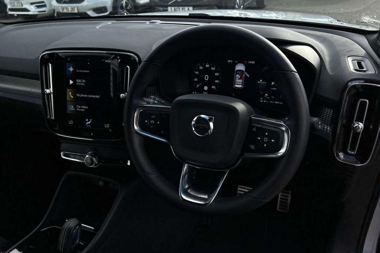 Cutting edge aluminium inlay, Lower dashboard, tunnel console and door panel in charcoal, Anti-theft alarm including immobiliser/volume sensor + level sensor, Care key with user defined top speed, Key integrated remote control central locking + fuel flap with deadlocking system and auto open/close power windows, Locking wheel nuts, Private locking for tailgate, DAB Digital radio, Steering wheel mounted remote controls, 3x3 point rear seatbelts, City safety includes pedestrian, cyclist and large animal detection and front collision warning with full auto brake, Drivers knee airbag, Dual stage driver/passenger airbags, Electronic parking brake with auto hold, First aid kit, Front and outer rear seatbelt reminder and pretensioners, Front seats SIPS airbags, Hill descent control, Hill start assist, Inflatable curtain, Passenger airbag cut-off device, Road sign information display, Run off Road Mitigation, Run off Road Protection, SIPS (Side Impact Protection System), Slippery road and hazard light alert, Stability and Traction Control with Spin control, Engine Drag Control and Corner Traction Control, Tyre pressure monitoring system, Vehicle deceleration control with Anti-lock Brake System, Electronic Brake Distribution and Emergency Brake Assist, Warning triangle, WHIPS whiplash protection system - front, Adaptive brake lights with high level LED brake lights, Auto dimming interior mirror, Automatic headlamp levelling, Automatic LED Headlights + Active high beam incorporating daytime running lights, Dark tinted windows for rear door side windows and cargo compartment, Electric adjustable/heated/auto folding door mirrors, Front aluminium tread plates, Front and rear electric windows, High gloss black front and rear skid plate, High gloss black lower front bumper, High gloss black mesh front grille with high gloss black surround, High gloss black sensus surround deco, High gloss black window trim, Home safe and approach lighting, Integrated roof rails in high gloss black, Rain sensor with automatic windscreen wiper activation, Rear side wing doors, Rear wiper, Recharging port located in nearside front wing, Roof antenna, Roof spoiler, Visible VIN plate, 12V socket in front tunnel console and cargo compartment, 2 zone electronic climate control and rear air vent, 3 seat bench in 2nd row, 60/40 versatile split folding rear seat, A-pillar parking ticket holder, Centre console cupholders and storage, Charcoal headlining, Front footwell illumination, Front headrests, Front reading light and theatre lighting, Front seat cushion extensions, Glovebox bag hook, Height adjustable passenger seat, Height/reach adjustable steering column, Height/tilt adjustable driver's seat, High gloss centre tunnel deco, Illuminated glovebox, Illuminated luggage compartment, Illuminated vanity mirrors, Isofix attachments on rear seats, Key integrated remote, Leather gearknob, Load protection net, Multi directional lumbar support, Rear armrest / integral cup holders / storage tray, Rear coat hook, Rear headrests, Single front passenger seat, Sports floor mats, Sports pedals, Sports tailored steering wheel, Underfloor cargo storage, Vanity mirror with ticket holder, 12.3" Active TFT crystal driver's instrument display, 9" centre console portrait touch screen, Adjustable steering wheel force, Bluetooth hands free telephone kit, Drive mode selector, E-call, Lane keep assist with driver alert control, Low speed exterior sound speaker, Oncoming Lane Mitigation, Power operated tailgate, Sensus navigation with European mapping and traffic information, Speed limiter, Speed sensitive steering, Voice activated control for key functions, Volvo on call, 7m 10amp charge cable with 3 pin plug and 7m 1 phase 16amp type 2/mode 3 charge cable, Electric front axle drive, Sports chassis,