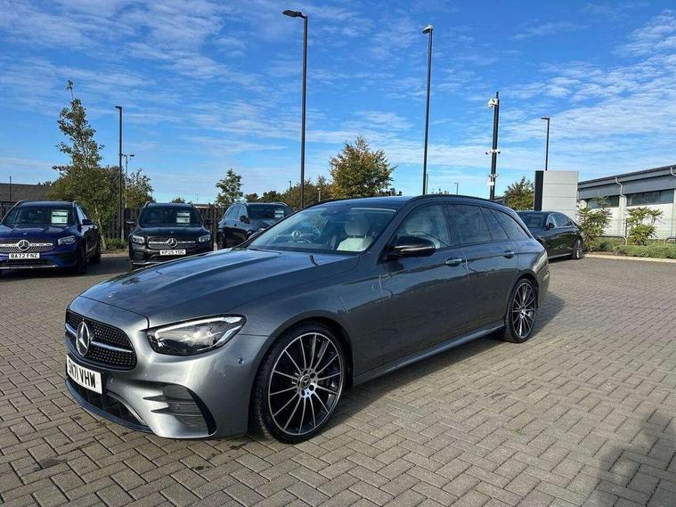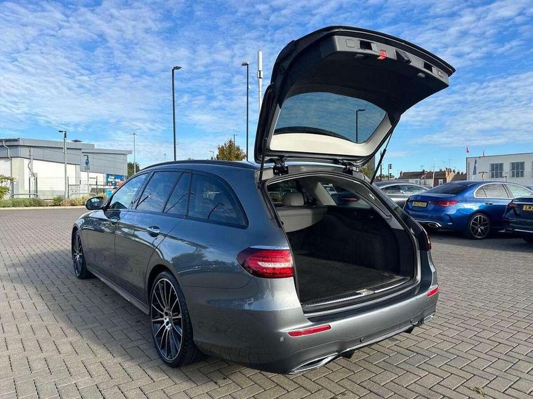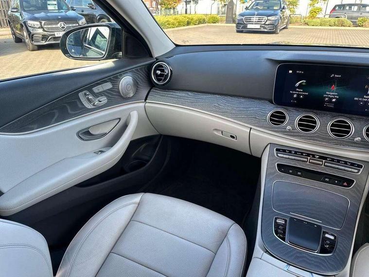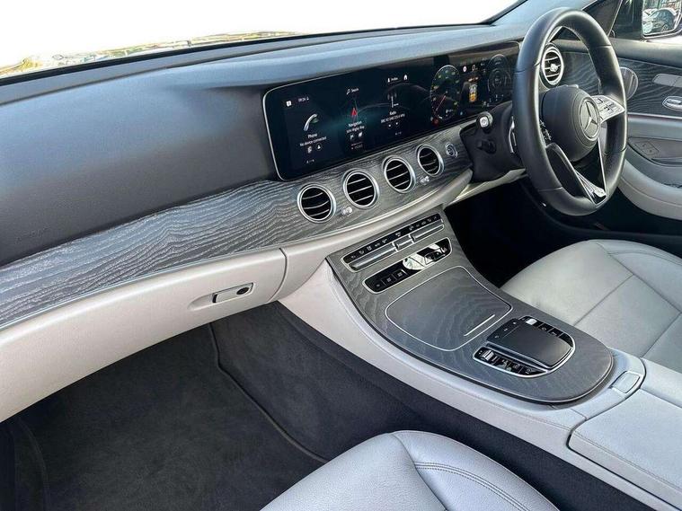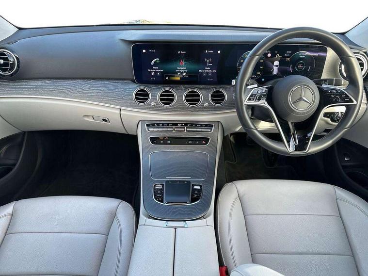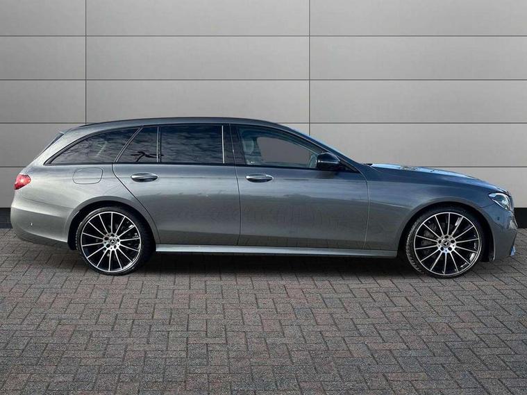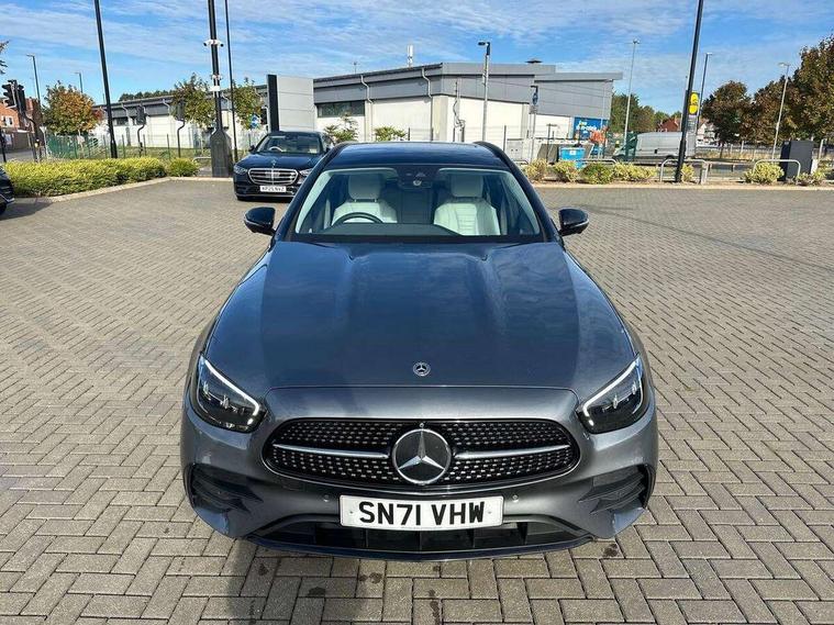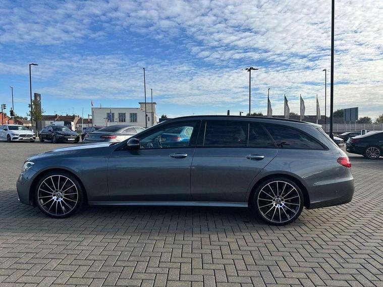 Attention assist, Brake wear warning display, Cockpit display 10.25" widescreen digital instrument cluster, Direct steer speed sensitive steering, DYNAMIC SELECT with a choice of driving modes (ECO, Comfort, Sport, Sport+ and Individual), Easy-pack tailgate - Powered opening/closing automatically, ECO start/stop function, Emergency call service, High resolution 10.25" multimedia colour display, MBUX voice control activated by keywords "Hey Mercedes", Mercedes connect me, Outside temperature display, Remote boot release, Service indicator (ASSYST), Smartphone integration via Android Auto/Apple CarPlay, Media Interface, USB and Bluetooth interface, Status display for rear seat belts in instrument cluster, Touchpad with controller, Traffic sign assist, Trip computer in multifunction display showing current fuel consumption, Wireless charging, 25 litre AdBlue tank, 66 litre fuel tank, 9G TRONIC 9 speed automatic transmission, Agility control sports suspension with selective damping system and lowered by 15mm, Diesel particulate filter, Incorrect fuelling protection, Rear air suspension with level control, 2 USB ports in centre console, 2 USB ports in the rear, Burmester surround sound system with 13 speakers and a 9 channel amplifier with total output of 590 watts, MBUX multimedia system with DAB digital radio and touchpad including satellite navigation, 3rd brake light, Adaptive brake lights, Aerial integrated in rear window, AMG bodystyling front and rear aprons and side sill panels, Chrome roof rails, Daytime running lights, Electric windows with one touch opening/closing and obstruction sensors, Electrically adjustable and heated door mirrors, Front apron in high gloss black, High gloss black exterior mirror housing, High gloss black rear bumper with chrome trim, Illuminated front door sill panels with Mercedes-Benz lettering, LED High performance headlamps with adaptive highbeam assist, LED rear lights, Panoramic electric glass sunroof, Privacy glass Includes rear side windows and rear windscreen, Radiator grille with integral star and 2 louvres in high gloss black, Rain sensing windscreen wipers, Rain sensor with automatic headlight activation, Rear side wing doors, Rear wiper, Tail lights, Top surround of side windows in polished aluminium, Visible twin pipe exhaust system integrated into bumper, Waistline trim strip in high gloss black, 3 seat bench in 2nd row, 3 spoke multifunction flat bottom AMG steering wheel with chrome inserts and touch control buttons, trimmed in black nappa leather, 40:20:40 split folding rear bench seat, Artico man-made leather upper dashboard and beltlines with contrast stitching, Automatic child seat recognition sensor, Black door pins, Black roof lining, Central stowage compartment with 12 V socket in centre console, USB socket for use with Android Auto and Apple CarPlay, Courtesy lights in rear grab handles with reading light functionality, Floor mats with AMG lettering, Front centre armrest with stowage compartment, Glasses compartment in overhead control panel, Glove compartment - lockable, air conditioned and illuminated, Head restraints for driver and front passenger (four-way adjustability) and in rear (two-way), Heated front seats, Interior lighting - 64 colour Ambient lighting, Leather upholstery, Seat occupancy sensor for front passenger seat, Single front passenger seat, Sports pedals in brushed stainless steel with black rubber studs, Steering column electrically adjustable for height and reach, Steering wheel multifunction with gearshift paddles, Steering wheel touch control buttons for audio and onboard settings, Sunvisors with illuminated vanity mirrors, THERMOTRONIC automatic climate control system with 3 climate zones, Memory pack - E Class, Mirror pack - E Class, Parking package including 360 degree camera - E Class, Stowage pack - E Class Estate, 3x3 point rear seatbelts, Active bonnet pedestrian safety measure which detects an impact and raises bonnet, Adaptive brake system with HOLD function and brake drying in the wet, Airbags - sidebag for driver and front passenger with combined thorax/pelvis bag, Anti-lock braking system (ABS), Childproof locks manually operated for rear doors and electrically operated for rear power windows, Driver and adaptive front passenger airbags, Drivers knee airbag, Electronic parking brake, Hill start assist, ISOFIX child seat attachment points two outer rear seats, Perforated brake discs with Mercedes Benz lettering, Pre-Safe anticipatory safety system, Tyre pressure monitoring system, Warning triangle and first aid kit, Window airbags, Alarm system/interior protection/immobiliser, Central locking with interior switch, automatic locking and crash sensor with emergency opening function, Chrome surround electric key, Keyless entry go starting function, Grey open pore ash wood trim and centre console in grey open pored ash wood, 20" AMG multi spoke light alloy wheels painted in high gloss black with high sheen finsih, Summer tyres, TIREFIT with tyre inflation compressor,
