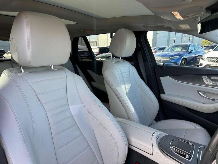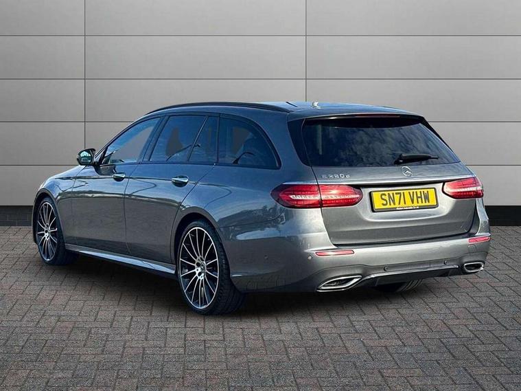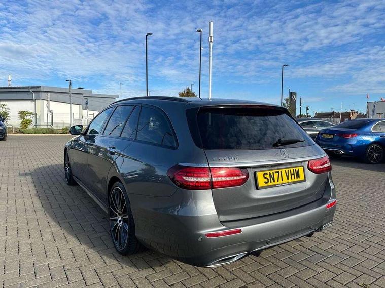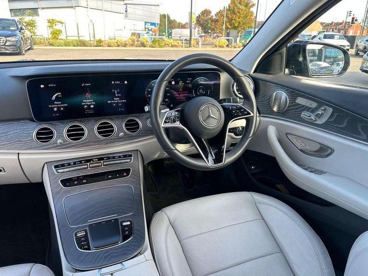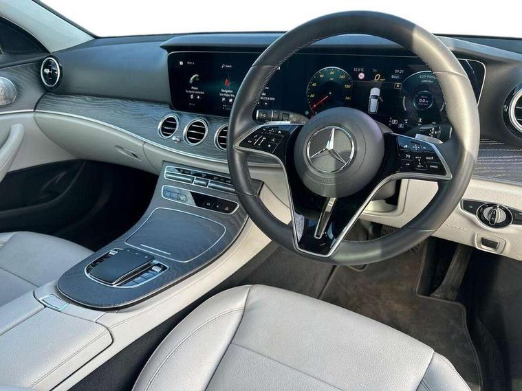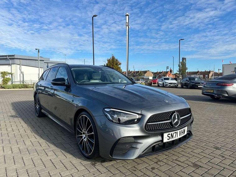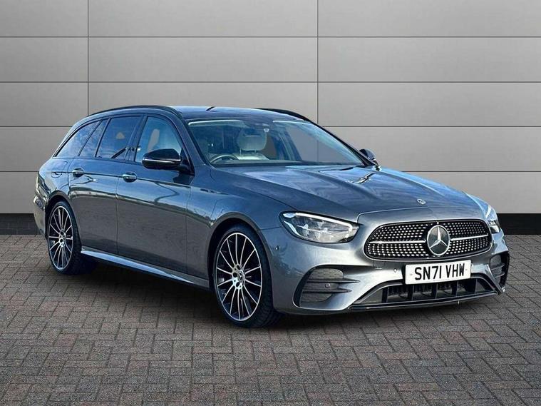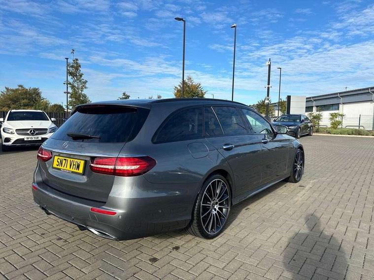 Attention assist, Brake wear warning display, Cockpit display 10.25" widescreen digital instrument cluster, Direct steer speed sensitive steering, DYNAMIC SELECT with a choice of driving modes (ECO, Comfort, Sport, Sport+ and Individual), Easy-pack tailgate - Powered opening/closing automatically, ECO start/stop function, Emergency call service, High resolution 10.25" multimedia colour display, MBUX voice control activated by keywords "Hey Mercedes", Mercedes connect me, Outside temperature display, Remote boot release, Service indicator (ASSYST), Smartphone integration via Android Auto/Apple CarPlay, Media Interface, USB and Bluetooth interface, Status display for rear seat belts in instrument cluster, Touchpad with controller, Traffic sign assist, Trip computer in multifunction display showing current fuel consumption, Wireless charging, 25 litre AdBlue tank, 66 litre fuel tank, 9G TRONIC 9 speed automatic transmission, Agility control sports suspension with selective damping system and lowered by 15mm, Diesel particulate filter, Incorrect fuelling protection, Rear air suspension with level control, 2 USB ports in centre console, 2 USB ports in the rear, Burmester surround sound system with 13 speakers and a 9 channel amplifier with total output of 590 watts, MBUX multimedia system with DAB digital radio and touchpad including satellite navigation, 3rd brake light, Adaptive brake lights, Aerial integrated in rear window, AMG bodystyling front and rear aprons and side sill panels, Chrome roof rails, Daytime running lights, Electric windows with one touch opening/closing and obstruction sensors, Electrically adjustable and heated door mirrors, Front apron in high gloss black, High gloss black exterior mirror housing, High gloss black rear bumper with chrome trim, Illuminated front door sill panels with Mercedes-Benz lettering, LED High performance headlamps with adaptive highbeam assist, LED rear lights, Panoramic electric glass sunroof, Privacy glass Includes rear side windows and rear windscreen, Radiator grille with integral star and 2 louvres in high gloss black, Rain sensing windscreen wipers, Rain sensor with automatic headlight activation, Rear side wing doors, Rear wiper, Tail lights, Top surround of side windows in polished aluminium, Visible twin pipe exhaust system integrated into bumper, Waistline trim strip in high gloss black, 3 seat bench in 2nd row, 3 spoke multifunction flat bottom AMG steering wheel with chrome inserts and touch control buttons, trimmed in black nappa leather, 40:20:40 split folding rear bench seat, Artico man-made leather upper dashboard and beltlines with contrast stitching, Automatic child seat recognition sensor, Black door pins, Black roof lining, Central stowage compartment with 12 V socket in centre console, USB socket for use with Android Auto and Apple CarPlay, Courtesy lights in rear grab handles with reading light functionality, Floor mats with AMG lettering, Front centre armrest with stowage compartment, Glasses compartment in overhead control panel, Glove compartment - lockable, air conditioned and illuminated, Head restraints for driver and front passenger (four-way adjustability) and in rear (two-way), Heated front seats, Interior lighting - 64 colour Ambient lighting, Leather upholstery, Seat occupancy sensor for front passenger seat, Single front passenger seat, Sports pedals in brushed stainless steel with black rubber studs, Steering column electrically adjustable for height and reach, Steering wheel multifunction with gearshift paddles, Steering wheel touch control buttons for audio and onboard settings, Sunvisors with illuminated vanity mirrors, THERMOTRONIC automatic climate control system with 3 climate zones, Memory pack - E Class, Mirror pack - E Class, Parking package including 360 degree camera - E Class, Stowage pack - E Class Estate, 3x3 point rear seatbelts, Active bonnet pedestrian safety measure which detects an impact and raises bonnet, Adaptive brake system with HOLD function and brake drying in the wet, Airbags - sidebag for driver and front passenger with combined thorax/pelvis bag, Anti-lock braking system (ABS), Childproof locks manually operated for rear doors and electrically operated for rear power windows, Driver and adaptive front passenger airbags, Drivers knee airbag, Electronic parking brake, Hill start assist, ISOFIX child seat attachment points two outer rear seats, Perforated brake discs with Mercedes Benz lettering, Pre-Safe anticipatory safety system, Tyre pressure monitoring system, Warning triangle and first aid kit, Window airbags, Alarm system/interior protection/immobiliser, Central locking with interior switch, automatic locking and crash sensor with emergency opening function, Chrome surround electric key, Keyless entry go starting function, Grey open pore ash wood trim and centre console in grey open pored ash wood, 20" AMG multi spoke light alloy wheels painted in high gloss black with high sheen finsih, Summer tyres, TIREFIT with tyre inflation compressor,