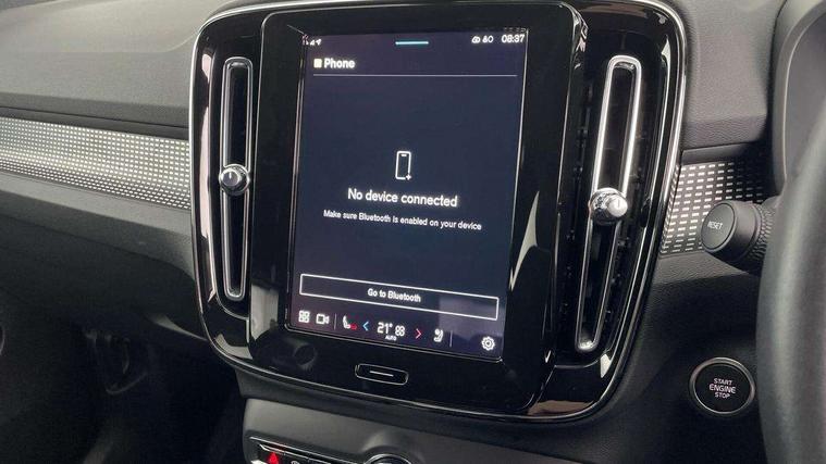 12.3" Progressive Driver Display, 9" centre console portrait touch screen, Adjustable steering wheel force, Android auto (Wired), Apple carplay (wired), Bluetooth handsfree system, Driver alert control, Driver assistance (pilot assist and adaptive cruise control), Driver awareness - Blind spot information system with steer assist, cross traffic alert with autobrake and rear collision warning and mitigation, E-call, Front park assist, Google automotive services - Enabled entertainment apps, navigation with google maps, voice recognition with google assistant, Hands free power tailgate, Intelligent speed assistance, Lane keeping aid, Oncoming Lane Mitigation, Rear park assist, Speed sensitive steering, Volvo cars services with app - Driving journal, emergency and breakdown call, engine remote start, remote door locking/unlocking and vehicle dashboard, Wireless/Inductive Mobile Phone Charging, Automatic transmission with start/stop and manual change functions, Dynamic chassis, DAB Digital radio, Steering wheel mounted remote controls, Adaptive brake lights with high level LED brake lights, Auto dimming feature for exterior door mirrors, Auto dimming interior mirror, Automatic headlamp levelling, Automatic LED Headlights + Active high beam incorporating daytime running lights, Colour coordinated auto folding and heated power door mirrors, Dark tinted windows - rear side windows and rear screen, Front aluminium tread plates, Front and rear electric windows, High gloss black front and rear skid plate, High gloss black front bumper deco, High gloss black front grille strikethrough and ironmark, High gloss black rear model, engine and volvo logo badges, High gloss black window trim, Home safe and approach lighting, Integrated roof rails in high gloss black, LED front fog lights, Puddle lights, Rain sensor with automatic windscreen wiper activation, Rear side wing doors, Rear wiper, Roof antenna, Roof spoiler, Visible VIN plate, 12V socket in front tunnel console and luggage compartment, 2-Zone electronic climate control with CleanZone air quality system and pollen filter, 3 seat bench in 2nd row, 3 Spoke tailored steering wheel with chrome trim, 60/40 versatile split folding rear seat, Centre console cupholders and storage, Charcoal headlining, Connect textile/microtech upholstery, Flexible load floor and grocery bag holder, Floor mats, Front cabin courtesy lights, Front door pocket, front cupholder, ambient front door, rear reading, rear courtesy, instrument panel and tailgate lighting, Front footwell illumination, Front headrests, Front reading lights, Front seat cushion extensions, Front side step illumination (under door), Glovebox bag hook, Heated front seats, Height adjustable passenger seat, Height/reach adjustable steering column, High gloss centre tunnel deco, Illuminated glovebox, Illuminated luggage compartment, Illuminated vanity mirrors + ticket holder, Integrated waste bin, Isofix attachments on outer rear seats, Load cover, Load protection net, Multi directional lumbar support for driver and passenger seat, Power driver seat with memory + exterior mirrors memory, Rear armrest with cupholders, Rear headrests, Single front passenger seat, Underfloor cargo storage, Climate pack without heated front seats - XC40, 3x3 point rear seatbelts, City safety with steering support with Pedestrian + cyclist + front collision warning with full auto brake and rear auto brake, Driver and passenger airbags, Drivers knee airbag, Electronic parking brake with auto hold, First aid kit, Front and outer rear seatbelt reminder and pretensioners, Front seats SIPS airbags, Hill descent control, Hill start assist, Inflatable curtain, Passenger airbag cut-off device, Power child locks on rear doors, Road sign information display, Run off Road Protection, SIPS (Side Impact Protection System), Slippery road and hazard light alert, Stability and Traction Control with Spin control, Engine Drag Control and Corner Traction Control, Tyre pressure monitoring system, Vehicle deceleration control with Anti-lock Brake System, Electronic Brake Distribution and Emergency Brake Assist, Warning triangle, WHIPS whiplash protection system - front, 2 x Key integrated remote control central locking including with deadlocking system and auto open/close windows, Anti-theft alarm including immobiliser/volume sensor + level sensor, Keyless drive includes keyless entry and keyless start, Locking wheel nuts, 20" 5 spoke high gloss black alloy wheels,