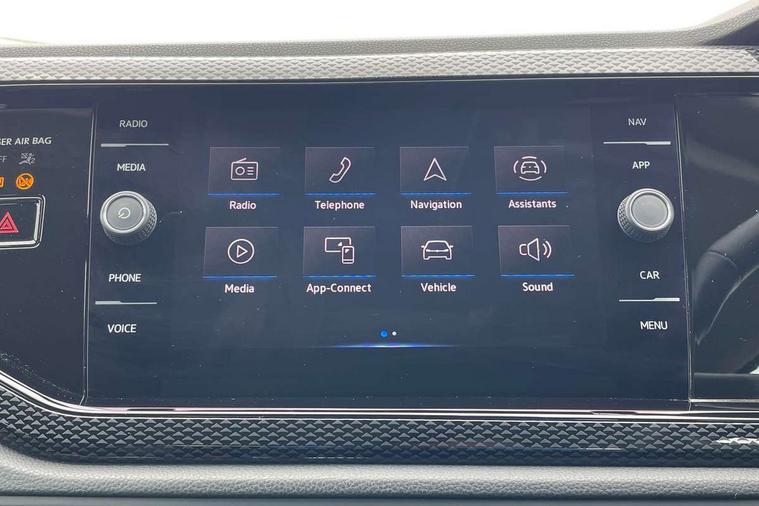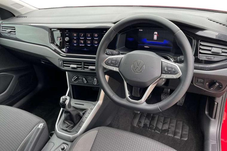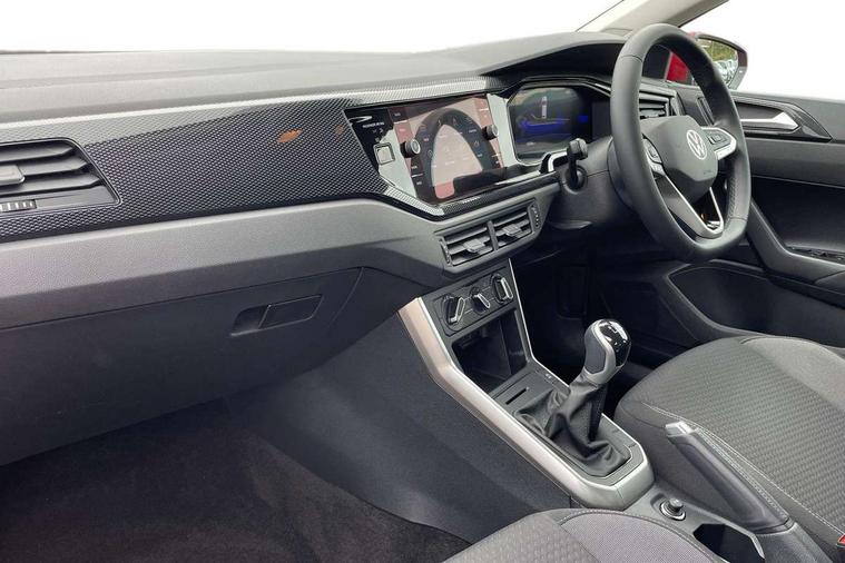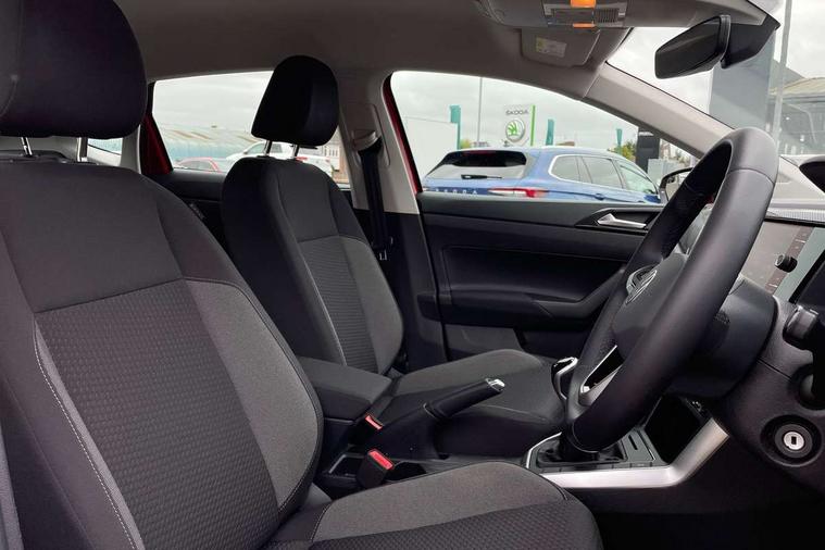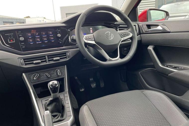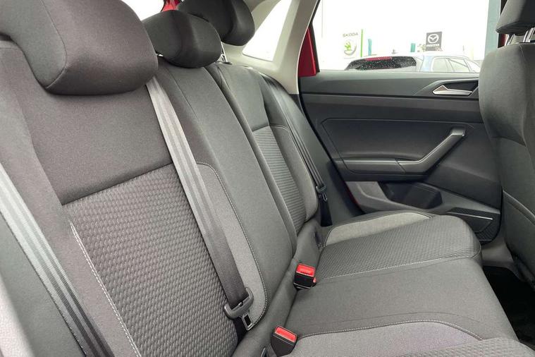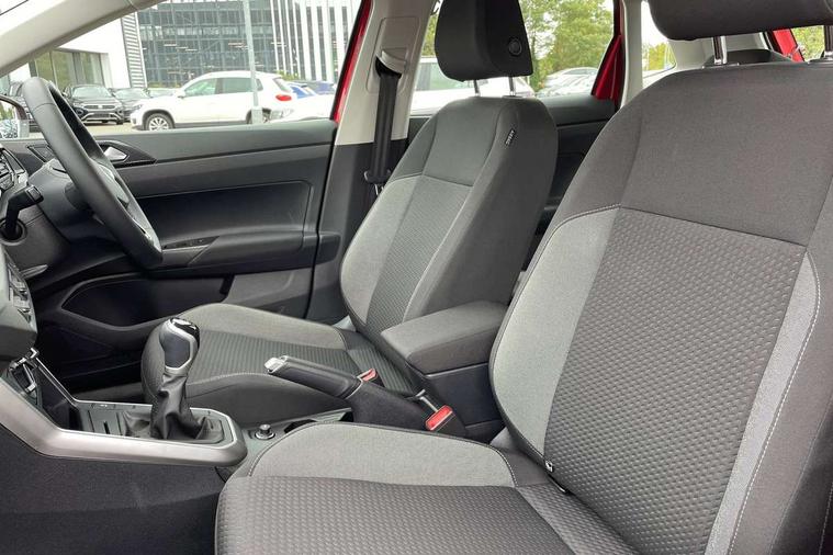 Adaptive cruise control without follow-to-stop and speed limiter, Bluetooth mobile phone interface, Driver alert system, Emergency call service, Front assist system, Power assisted speed sensitive steering, Preparation for We connect and We connect plus, Speedo and rev counter, electronic odometer, trip, service interval display and fuel gauge, Standard rear axle, Travel Assist - Lane keeping system and traffic jam assist, Travel assist including emergency assist, Trip computer, Warning signal and warning light for front and rear seatbelts not fastened, Washer fluid level indicator, Wireless app connect, Front wheel drive, Rear shock absorpion, Start-stop system with battery regeneration (recuperation - energy recovery during braking), DAB Digital radio, Diversity antenna for FM reception, Front and rear 6 speakers, Automatic dimming interior rear view mirror, Body colour bumpers, Body colour door handles, Body colour door mirrors, Electric front windows, Heat insulating darkened glass in side and rear windows, Heat insulating glass windscreen, Power folding adjustable/heated exterior mirrors and front passenger exterior mirror lowering function, Rain sensor, Rear electric windows, Rear fog light, Rear side wing doors, Rear windscreen washer and wiper with interval delay, Third brake light, 12V power socket in centre console, 2 front and 2 rear reading lights, 2 USB-C ports in the front, 2 USB-C charging sockets on the center console in the rear, 3 rear head restraints, 60/40 split folding rear seat and rear seat bench not split, Ceramique headliner, Chrome plated radiator grille inserts, air vent surrounds and light switch surrounds, Door and side trim panel, Driver and front passenger seat height adjustment, Driver/passenger sunvisors with illuminated vanity mirrors, Front centre armrest, Front seat backrest storage pockets, Front standard seats, Handbrake lever handle in leather, Hartley/Thomas cloth upholstery, Isofix child seat preparation easy-fit (for two outer rear seats, and front passenger seat) compatible with I-size, Leather trimmed gear knob, Luggage compartment cover, Luggage compartment floor, Luggage compartment lighting, Multifunction steering wheel, Single front passenger seat, Standard pedal cluster, Light and vision pack - Polo, 3 point height adj front seatbelts + pretensioners, 3x3 point rear seatbelts, ABS, Driver and front passenger airbag with front passenger airbag deactivation, Drivers and front passengers safety optimised head restraints, ESC (Electronic stability control) + EDL (Electronic Differntial lock) and ASR (Traction control), Extended and predictive pedestrian/ cyclist protection, Front curtain and side airbags with center airbag, Front disc brakes, Hill hold control, Manual child lock in rear doors, Rear drum brakes, Single tone horn, Tyre pressure loss indicator, Alarm with interior protection, Anti-theft alarm system with interior monitoring, backup horn, and towing protection, Anti-theft wheel bolts, Electronic engine immobiliser, Lava stone black gloss/matt decorative inserts in dash and front door panels, Low rolling resistance tyres,