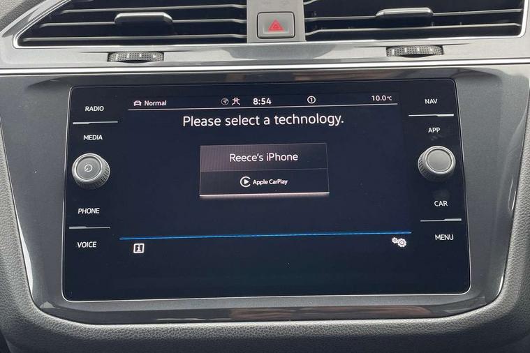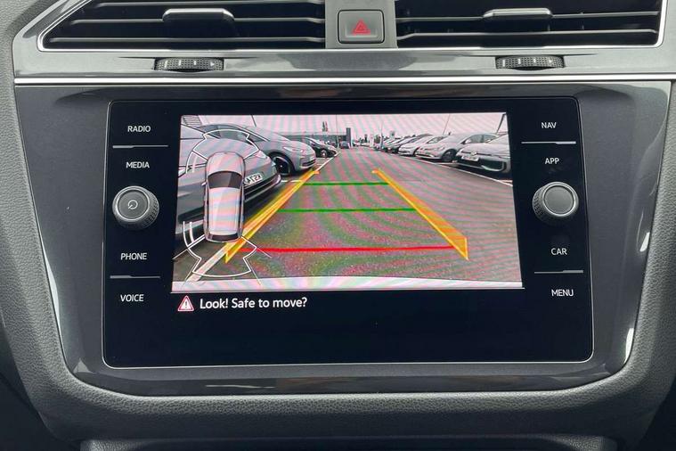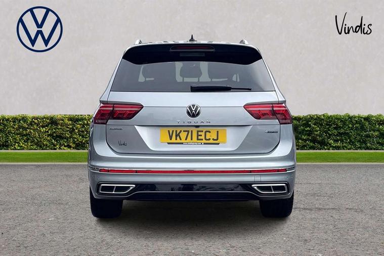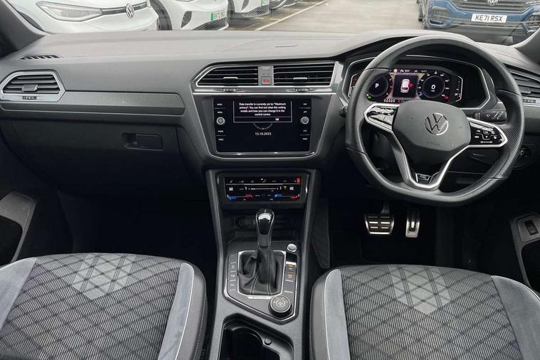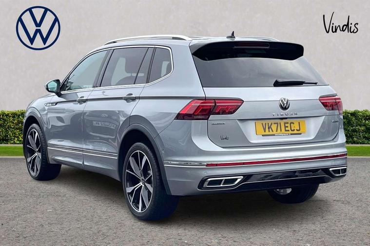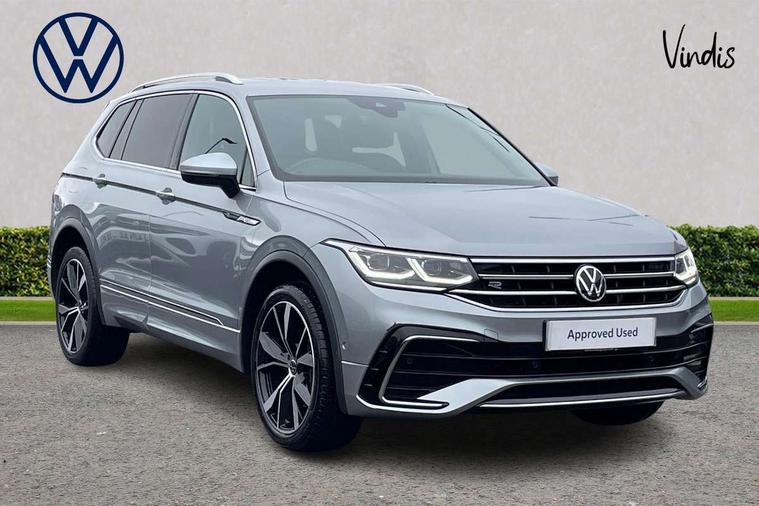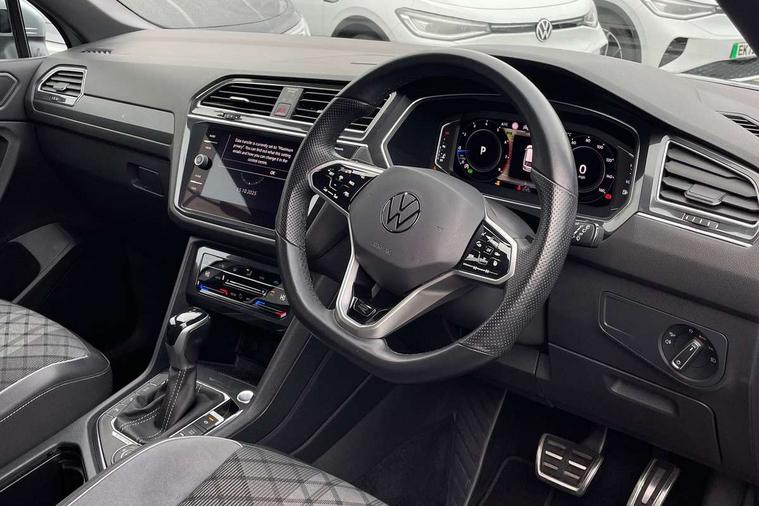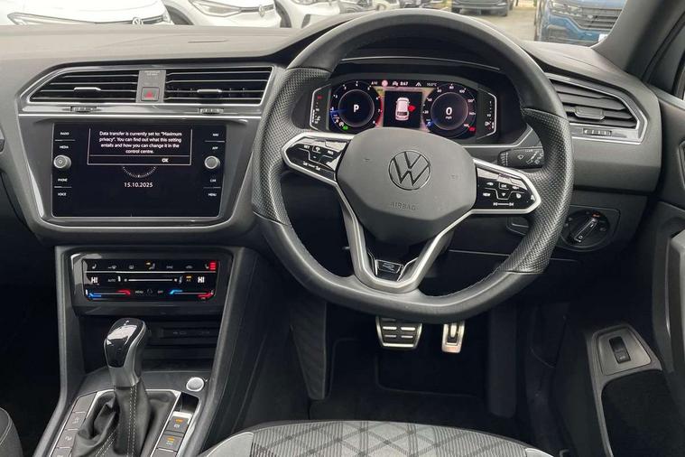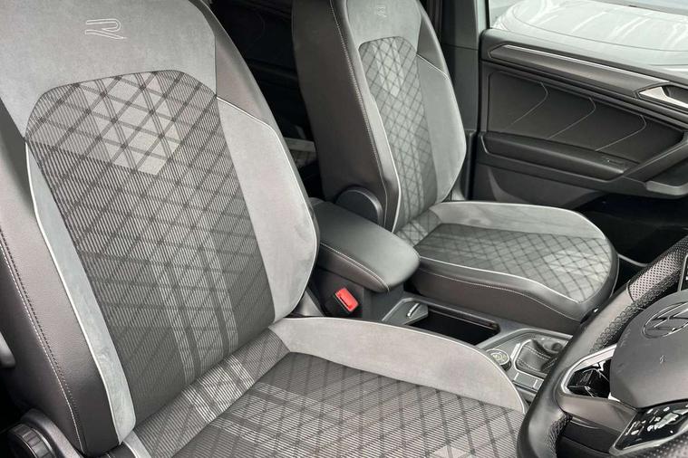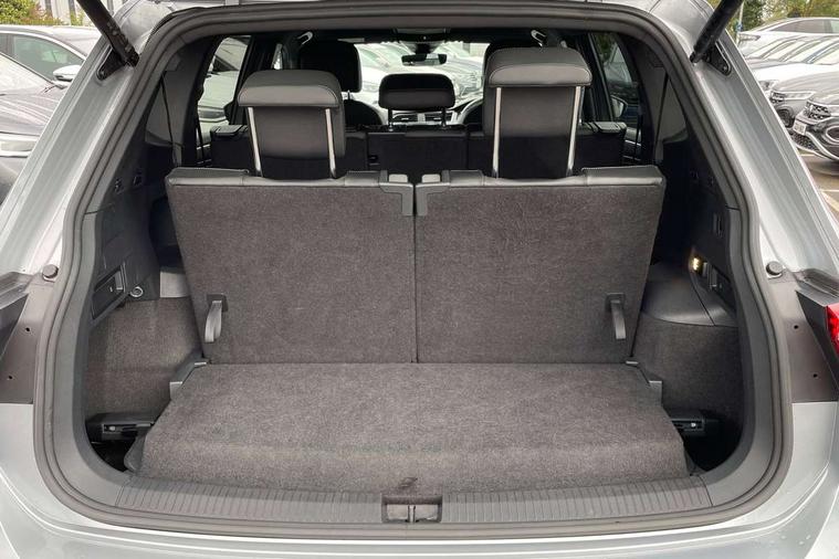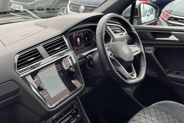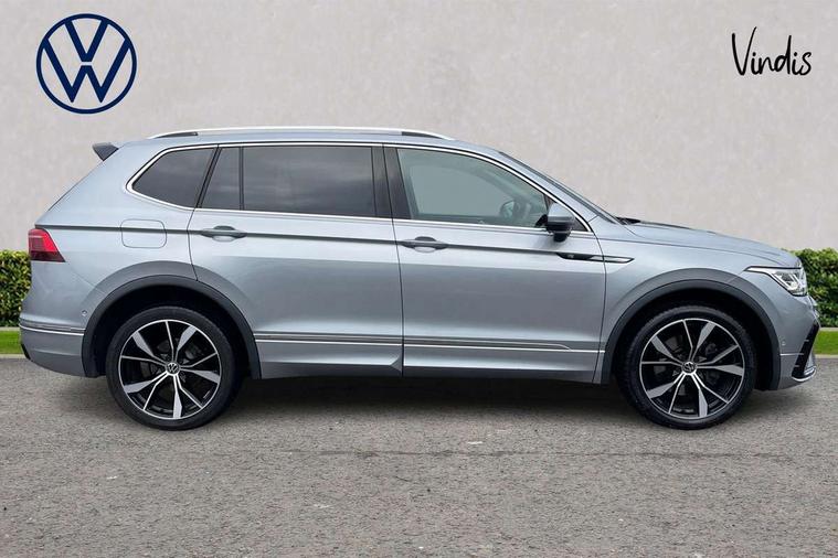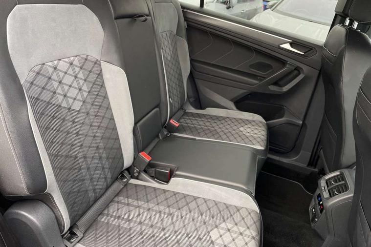 App-Connect, Adaptive cruise control, Digital cockpit pro, Driver alert system, Driver profile selection, Dynamic road sign display, eCall emergency call service, Electric boot lid, Lane change system side assist and rear traffic alert, Lane keeping system Lane Assist, Mobile phone interface comfort with inductive charging feature, Multifunction front facing camera, Progressive steering, Speedo and rev counter, electronic odometer, trip, service interval display and exterior temperature gauge, Start-stop system with battery regeneration (recuperation - energy recovery during braking), 2 USB-C ports in the front, 1 USB-C charging socket on the center console in the rear, DAB Digital radio, Diversity antenna for FM reception, Radio, Auto dimming interior rear view mirror, Automatic headlight control system, Body coloured bumpers in R Line style, Chrome mouldings on side window, Coming/leaving home lighting function, Exterior badge deletion, Exterior mirror housings painted in silver, Heated windscreen washer jets, Privacy glass, Rear fog light, Rear spoiler in R style, Silver roof rails, Third brake light, 12-volt outlet in centre console rear and luggage compartment, 12V socket in centre console, 3 head restraints in rear, 3rd row seats, Air Care Climatronic 3 zone automatic climate control with enhanced air filter and controls in the rear, Black roof lining, Door and side trim panel with leatherette insert, Drawers under front seats, Driver and front passenger seat height adjustment, Foldable front passenger seat backrest, Front + rear carpet mats, Front centre armrest, Front footwell illumination, Heated front seats, Illuminated scuff plates, ISOFIX anchorage points for mounting 2 child seats on rear seats and i-Size child seats, Leather gearshift handle, Leather wrapped multi function sports steering wheel, heated, with touch control and shifting paddles, LED interior light with switch off delay/dimmer and 2 front/rear LED reading lights, Stainless steel pedals, Sun visors with illuminated vanity mirrors, Ambience pack - Tiguan Allspace R Line, Driver assistance plus package - Tiguan Allspace, Park assist pack - Tiguan Allspace, 3 point seat belt for centre rear seat, 3 rear three point seatbelts, ABS+EBD+Brake assist, Driver and front passenger safety-optimised head restraints, Driver's and front passenger's airbag with front passenger's airbag deactivation switch, Electronic parking brake, Electronic Stability Control (ESC) inc EDL (Electronic Differential Lock) and ASR (Traction Control), Height adjustable front 3 point seatbelts + pretensioners, Pedestrian monitoring, PreCrash preventive occupant protection Front and rear, Rear disc brakes, Side airbag in front and rear with curtain airbag, Two tone horn, Warning buzzer for seatbelts if unfastened, Anti theft alarm system with interior monitoring, backup horn and towing protection, Anti-theft wheel bolts, Electronic steering lock, Remote central locking with 2 remote folding keys, 20" Misano black with diamond turned surface alloy wheels with Airstop tyres,