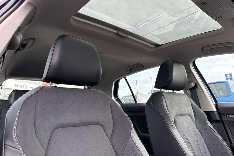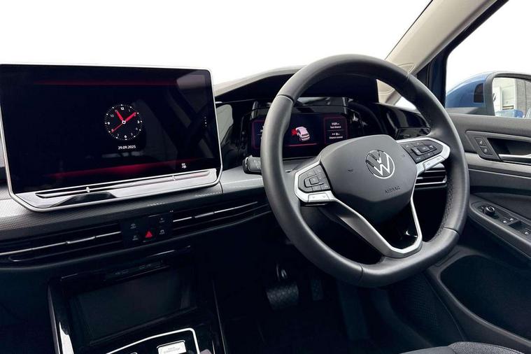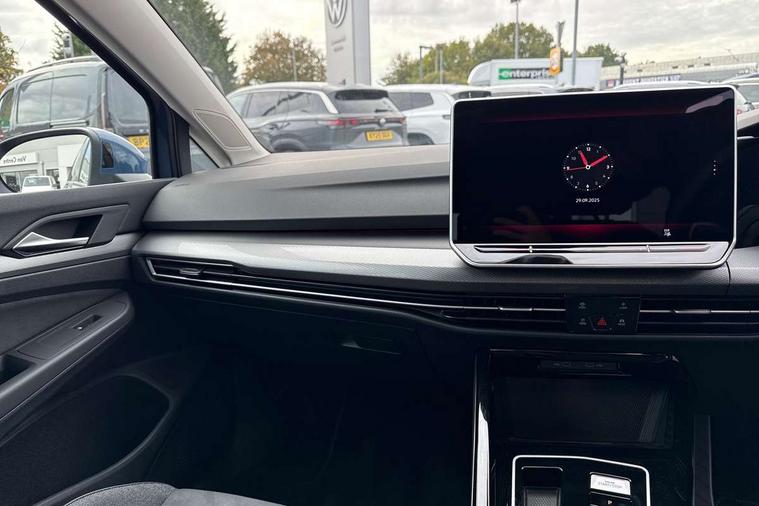 Activated carbon canister, Adaptive cruise control (ACC), Advanced driver attention and drowsiness monitor, Dynamic road sign display, E-Sim card for online connectivity, eCall emergency call system, Multi-color Digital cockpit pro, selection of different info profile possible, Multifunction front facing camera for distance control, Navigation system, Oncoming vehicle braking when turning including swerve support, Side assist blind spot lane change system, rear traffic alert and exit warning system, Speed limiter, Speedo, rev counter, electronic odometer, trip, service interval display, exterior temperature and fuel gauge, Traffic jam assist, Voice enhancer and voice control, Warning signal and warning light for front and rear seatbelts not fastened, We connect plus preparation, We connect preparation, Wireless app connect, Charging cable Mode 2 Type 2 (10A), Charging cable mode 3, type 2 32 A, Hybrid propulsion system, Start-stop system with battery regeneration (recuperation - energy recovery during braking), XDS electronic differential lock for improved traction and handling, 2 USB C ports in front, 2 USB charging sockets on the centre console in the rear charging capacity upto 45W, 6 Speakers - 4 in front and 2 in rear with central speaker, Digital radio reception (DAB), Diversity antenna for FM reception, Gaming platform via car app, Infotainment system with 12.9" display, Mobile phone interface with inductive charging feature, 3rd brake light, Automatic headlamp activation with Coming home and Leaving home feature, Body colour bumpers, Body colour door handles, Body colour door mirrors, Chrome trimmed front air intake surrounds, Chrome trims on the side window bottom, Exterior mirrors convex on the left and aspherical on the right, Front and rear electric windows, Heat insulating windshield made of laminated glass, LED separate daytime running light, Rear exhaust tailpipe, Rear fog light on one side and reversing lights on both sides, Rear side wing doors, Rear windscreen washer and wiper with interval delay, Remote electrically foldable door mirrors, puddle lights and reverse activated passenger's door mirror, Welcome light with surround lighting, 12V socket in front centre console, 12V socket in luggage compartment, 3 rear head restraints, 3 seat bench in 2nd row, Air care climatronic 3 Zone automatic climate control with rear air conditioning control panel, Ambient lighting with 30 colour including LED light unit in front footwell with selectable light colour, Chrome plated radiator grille inserts, air vent surrounds and light switch surrounds, Front + rear black carpet mats, Front centre armrest, ISOFIX anchors for child seats on outer rear bench seats and on front passanger seat compatible for i-Size, Luggage compartment lighting, Plastic gear knob, Rear cupholder and loadthough, Single front passenger seat, Soul black instrument panel, Split folding backrest with centre armrest and unsplit rear seat bench, Standard pedal cluster, Storm grey roof lining, Sun visors with illuminated vanity mirrors, Driver assistance pack - Golf Estate/Hatchback Auto, 3 point height adj front seatbelts + pretensioners, 3 rear three point seatbelts, ABS, Autonomous emergency braking front assist with pedestrian and cyclist monitoring, Child locks on rear doors, Driver and front passenger airbag with front passenger airbag deactivation, Electronic parking brake with auto hold, ESC (Electronic Stability Control), Extended pedestrian protection measures, Hill start assist, Rear disc brakes, Two tone horn, Tyre pressure loss indicator, Volkswagen roadside assistance, Anti theft wheel bolts, Preparation for alcohol interlock, New brushed dark metal decorative inserts for dashboard and front door panels, Tool kit for tyre mobility set, Tyre mobility kit Includes 12V compressor and tyre sealant,