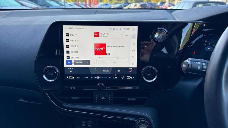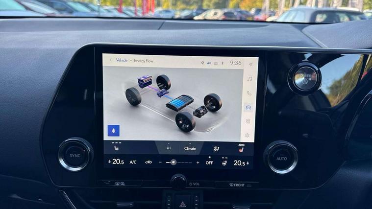 4 driving modes EV/Eco/Normal/Sport, 7" display in instrument binnacle, Bluetooth telephone connectivity, eCall emergency system, Electric speed sensitive power steering, Intelligent parking sensors - 4 front and 4 rear, Lane change flasher function, Lexus link connect - Cloud based navigation, cloud based voice assistant, always online and 9.8" VGA touchscreen, Push button starter, Reversing camera with back guidelines, Service interval indicator, Tailgate, Wireless Apple CarPlay and wired Android Auto, All Wheel Drive (AWD), Hybrid automatic transmission, Vehicle Dynamics Integrated Management (VDIM), Vehicle Stability Control (VSC), 10 speakers, 4 USB ports - 2 front, one USB C, 2 rear USB C, DAB Digital radio, Auto dimming interior rear view mirror, Automatic headlights, Bi LED headlights, Double hidden exhaust pipes, Front and rear one touch power windows, with anti-jam protection, Heated, auto-folding, auto-dimming outside mirrors with reverse tilt function and turn indicators, LED brake lights and rear lights with emergency brake signal, LED daytime running lights, LED Indicators, Light green UV acoustic rear doors & rear glass, Power back door system, Rain sensor windscreen wipers, Rear side wing doors, Rear wiper, Roof rails, 12V accessory port centre console and luggage compartment, 2 cupholders in front centre console, 2 x fixed shopping bag hooks in boot, 2 x sun visors with vanity mirror and lamp, 3 seat bench in 2nd row, 4 x tie down hooks in the boot, 6 tie down hooks in boot, 6 way manually adjustable front seats, 60/40 split folding rear seat, Adjustable rear seat backrest, Card holder installed in driver and passengers sun visors, Centre armrest with storage box, Dual climate control air conditioning system, Front and rear head restraints, Front and rear textile carpet mats, Front passenger seat, Heated front seats, Leather gear lever, LED interior illumination, Power adjustable leather steering wheel with paddle shifts, Rear centre armrest with 2 cupholders, Tahara leather upholstery, Whiplash Injury Lessening (WIL) feature (active headrest) for seats, 2 x Isofix child rear seat restraints, 3 point ELR front seatbelts with pretensioners, 3x3 point rear seat belts, ABS, Adjustable seat belt anchor points, Driver and front passenger 2 stage airbag, Driver/front passenger side airbags, Drivers knee airbag, E-Latch electric door release, EBD + Brake Assist, ECB (Electronically Controlled Brake System), Electronic parking brake, Front and rear curtain shield airbags, Front center airbag, Front passenger seat cushion airbag, Hill assist control, Lexus safety system - dynamic radar cruise control, pre collision system day and night, lane tracing assist, road sign, automatic high beam, OTA, Manual rear child locks, Passenger airbag cut-off device, Traction control, Tyre pressure warning, Anti-theft system with alarm, intrusion sensor, glass breakage sensor, tilt sensor and engine immobiliser, Locking wheel nuts, Speed sensitive auto door locking, Ultra Wide Band (UWB) Anti-theft system, VIN Window etching, Black microdot inlay, Tyre repair kit,
