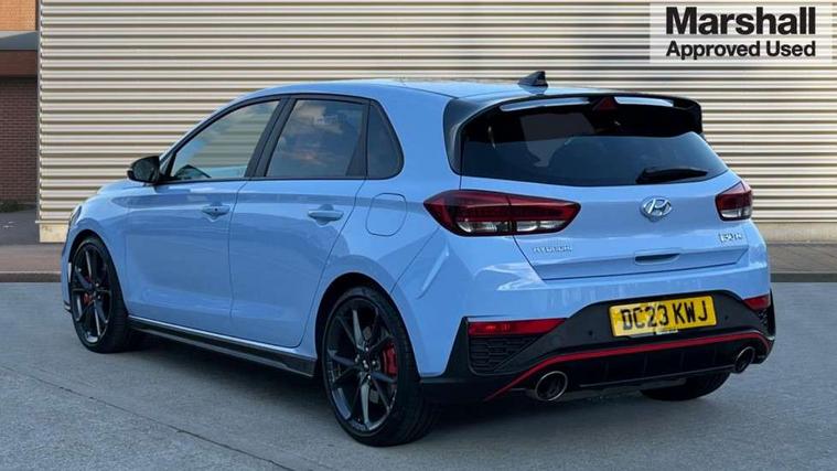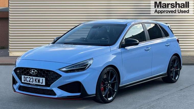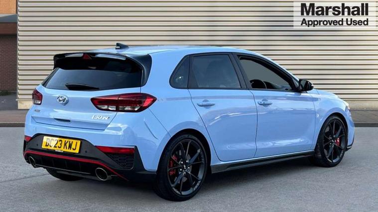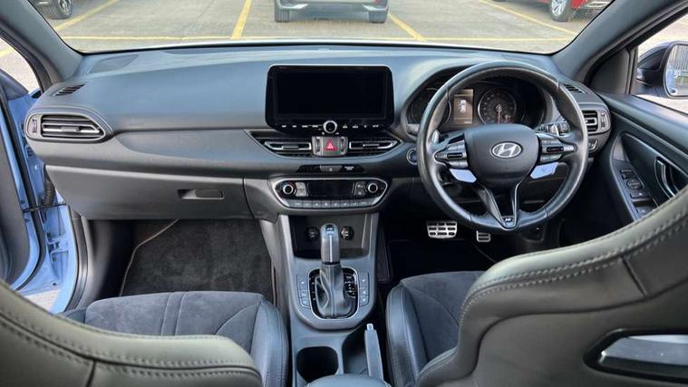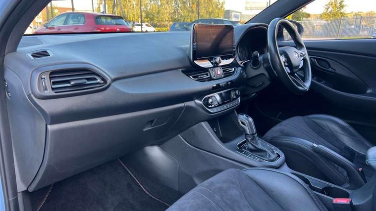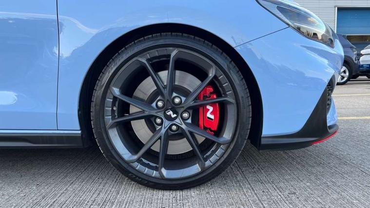 10.25" touchscreen centre console display satellite navigation including traffic messaging channel, map care and live services, Android Auto, Apple car play, Audio control with voice recognition, Blind spot Collision Warning (BCW), Bluetooth connectivity with voice recognition, Cruise control, Drive mode buttons, Driver attention alert system, Driver's supervision instrument cluster with 4.2" LCD display, e-Call (Emergency button system), Emergency stop signalling system, Forward collision avoidance assist, Front and rear parking sensors, Intelligent speed limit warning, Lane follow assist, Lane keep assist, N exclusive sport cluster, N grin shift, N mode button, N track sense shift, Parking system with rear camera and guidance system, Performance information display, Rack motor driven power steering, Rear collision assist, Rev matching system, Shift timing indicator, Trip computer, Windscreen washer fluid sensor and warning indicator, Wireless phone charging pad, Electric active sound design, Electronic limited slip differential, Electronically controlled suspension, Intelligent Stop and Go, Launch control, 2 front and 2 rear speakers with 2 tweeters, DAB Digital radio, USB ports in centre console, 1 speed non intermittent rear windscreen wiper, Active variable exhaust system, Adjustable intermittent front windscreen wipers with aero wiper blade, Automatic defog system for front windscreen, Automatic dimming rear view mirror, Automatic headlight with follow me home function, Automatic windscreen wipers with rain sensor, Black finish window surrounds, Black glossy door mirrors with integrated indicators, Body coloured door handles, Door mirror puddle lights, Dual LED Headlamps with Low/High Projection & Static Cornering, Dusk sensor, Electric adjustable heated door mirrors, Electric folding door mirrors, Electric windows - front and rear with anti-trap mechanism and one touch control (driver window), LED daytime running lights, LED tail lights, N exclusive front and rear bumpers, N exclusive radiator grille, N exclusive rear diffuser, Rear brake light in signature N triangular design, Rear LED lights, Rear roof spoiler with integrated LED brake light, Rear side wing doors, Rear stiffness bar, Rear windows and tailgate privacy glass, Shark fin antenna, Static Cornering lights, Tinted glass with windscreen shade band, 12V power outlets in front console and luggage compartment, 3 seat bench in 2nd row, 60/40 split folding rear seat, Active head restraints, Aluminium pedals, Black roof liner, Centre console storage, Chrome effect interior door handles, Driver's seat electric height adjustment, Driver's seat manual extendable seat cushion, Driver/passenger sunvisors and illuminated vanity mirrors, Dual zone climate control air conditioning, Electric adjust driver's seat, Floor mats, Front and rear door pockets, Front armrest with storage box, Front cupholders, Front head restraints with vertical and horizontal adjustment, Front passenger's seat electric adjustments, Front passenger's seat electric height adjustment, Front passenger's seat electric lumbar support, Front passenger's seat manual extendable seat cushion, Front, rear and luggage compartment interior lights, Glove compartment, Heated front seats, Heated function steering wheel, Interior front map reading light and sunglasses holder, ISOFIX child seat anchorage points attached on outer rear seats, Leather gearstick gaiter with light blue stitching, Leather wrapped steering wheel and gear knob, Luggage board, N branded aluminium door sill trims, N drive mode steering wheel button in blue, Reach + rake adjustable steering column, Rear armrest with cupholder, Rear head restraints, Single front passenger seat, Steering wheel audio, phone and cruise control buttons, 3x3 point rear seatbelts, Airbags - front, front side and curtain airbags, Anti-lock braking system (ABS), Childproof rear door locks, Curtain airbag roll over sensor, Electronic stability control, Front passenger airbag deactivation switch, Front seatbelt reminder, Height adjustable seatbelts, Hill start assist control (HAC), Manual parking brake, N power shift, Red brake calipers with N logo, Reinforced brakes, Seatbelt reminder for rear passenger seats, Torque vectoring brake, Tyre pressure monitoring system (TPMS), Deadlocks, Immobiliser, Locking wheel nuts, Remote control central locking, Smart key with keyless entry and engine start/stop button, Speed sensitive automatic door locking, Thatcham category 1 alarm, 19" Gloss black alloy wheels, 19" Pirelli P zero performance tyres, Temporary mobility kit (TMK),