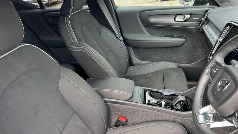 12.3" Progressive Driver Display, 360 degree surround view parking camera with side proximity sensors, 9" centre console portrait touch screen, Adjustable steering wheel force, Android auto (Wired), Apple carplay (wired), Bluetooth handsfree system, Driver alert control, Driver assistance (pilot assist and adaptive cruise control), Driver awareness - Blind spot information system with steer assist, cross traffic alert with autobrake and rear collision warning and mitigation, E-call, Front park assist, Google automotive services - Enabled entertainment apps, navigation with google maps, voice recognition with google assistant, Hands free power tailgate, Intelligent speed assistance, Lane keeping aid, Oncoming Lane Mitigation, Rear park assist, Speed sensitive steering, Volvo cars services with app - Driving journal, emergency and breakdown call, engine remote start, remote door locking/unlocking and vehicle dashboard, Wireless/Inductive Mobile Phone Charging, Automatic transmission with start/stop and manual change functions, Dynamic chassis, DAB Digital radio, Premium Sound by Harman Kardon, Dolby Pro Logic II Surround Sound, Dirac Unison, 12 speakers/600W and subwoofer, Steering wheel mounted remote controls, Active bending pixel LED headlights with adaptive shadow technology, Active high beam incorporating daytime running lights, Adaptive brake lights with high level LED brake lights, Auto dimming feature for exterior door mirrors, Auto dimming interior mirror, Automatic headlamp levelling, Dark tinted windows - rear side windows and rear screen, Front aluminium tread plates, Front and rear electric windows, Headlight cleaning system, High gloss black front and rear skid plate, High gloss black front bumper deco, High gloss black mesh front grille with high gloss black surround, High gloss black window trim, Home safe and approach lighting, Integrated roof rails in high gloss black, LED front fog lights with cornering function, Power glass tilt and slide panoramic sunroof with sun curtain, Puddle lights, Rain sensor with automatic windscreen wiper activation, Rear side wing doors, Rear wiper, Roof antenna, Roof spoiler, Visible VIN plate, 12V socket in front tunnel console and luggage compartment, 2-Zone electronic climate control with CleanZone air quality system and pollen filter, 3 seat bench in 2nd row, 3 Spoke tailored steering wheel with chrome trim, 60/40 versatile split folding rear seat, Centre console cupholders and storage, Flexible load floor and grocery bag holder, Floor mats, Front cabin courtesy lights, Front door pocket, front cupholder, ambient front door, rear reading, rear courtesy, instrument panel and tailgate lighting, Front footwell illumination, Front headrests, Front reading lights, Front seat cushion extensions, Front side step illumination (under door), Glovebox bag hook, Heated front seats, Height/reach adjustable steering column, High gloss centre tunnel deco, Illuminated glovebox, Illuminated luggage compartment, Illuminated vanity mirrors + ticket holder, Integrated waste bin, Isofix attachments on outer rear seats, Load cover, Load protection net, Multi directional lumbar support for driver and passenger seat, Power driver seat with memory + exterior mirrors memory, Power folding rear headrests, Power passenger seat, Rear armrest with cupholders, Single front passenger seat, Underfloor cargo storage, Climate pack without heated front seats - XC40, 3x3 point rear seatbelts, City safety with steering support with Pedestrian + cyclist + front collision warning with full auto brake and rear auto brake, Driver and passenger airbags, Drivers knee airbag, Electronic parking brake with auto hold, First aid kit, Front and outer rear seatbelt reminder and pretensioners, Front seats SIPS airbags, Hill descent control, Hill start assist, Inflatable curtain, Passenger airbag cut-off device, Power child locks on rear doors, Road sign information display, Run off Road Protection, SIPS (Side Impact Protection System), Slippery road and hazard light alert, Stability and Traction Control with Spin control, Engine Drag Control and Corner Traction Control, Tyre pressure monitoring system, Vehicle deceleration control with Anti-lock Brake System, Electronic Brake Distribution and Emergency Brake Assist, Warning triangle, WHIPS whiplash protection system - front, 2 x Key integrated remote control central locking including with deadlocking system and auto open/close windows and sunroof, Anti-theft alarm including immobiliser/volume sensor + level sensor, Keyless drive includes keyless entry and keyless start, Locking wheel nuts,