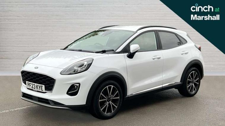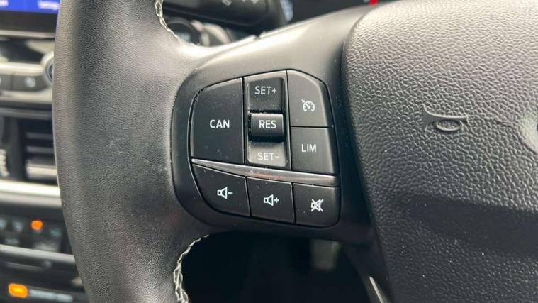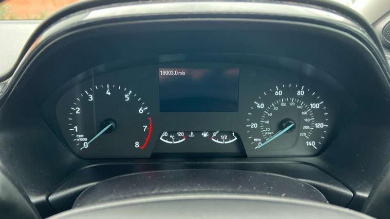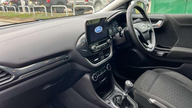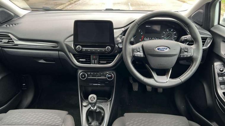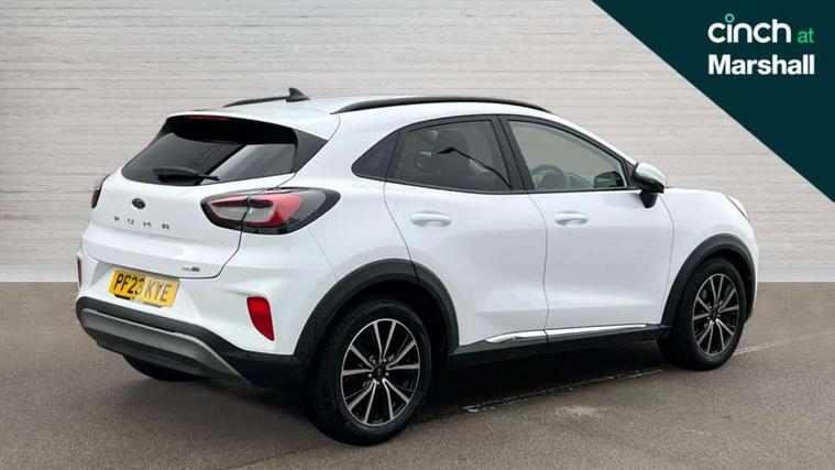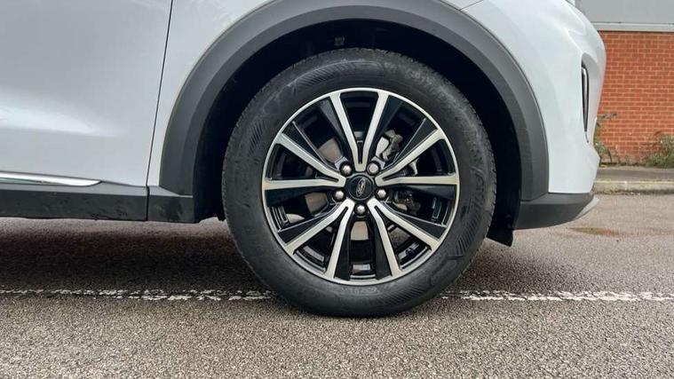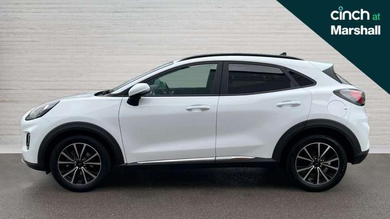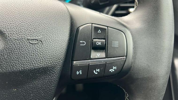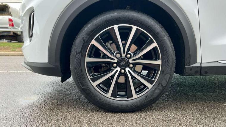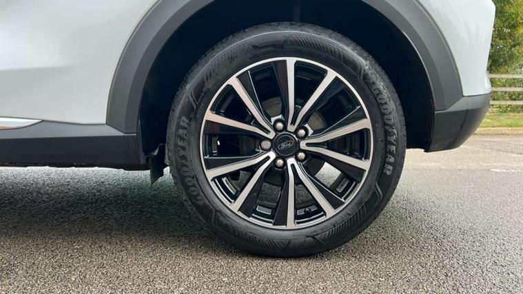 Driver impairment monitor, Emergency call service, Ford easy fuel, Lane keeping aid with lane departure warning, Power assist steering, Power start button, Rear parking sensor, Selectable drive modes(Normal, sport, Eco, trail, slippery), Speed sign recognition, Standard suspension, Automatic headlights with auto high beam, Automatic rain sensing wipers, Body colour rear spoiler, LED rear lamps, Power foldable heated door mirrors with puddle lamps, Projector headlamps with LED day time running lights and front fog lamps, Quickclear heated windscreen, Rear side wing doors, Rear wiper, Third brake light, 3 seat bench in 2nd row, Centre console with armrest and stowage, Electronic automatic temperature control (EATC), Ford megabox extended bootspace, Front and rear head restraints, Front floor mats, Manual 2 way passenger seat adjustment, Manual 4 way driver seat adjust with lumbar adjustment, Sensico leather steering wheel/gear knob/handbrake, Single front passenger seat, Titanium cloth upholstery, Ford SYNC 3 navigation pack - Puma, 3 rear seatbelts, Child safety lock, Electronic stability control (ESC) and hill start assist, Pedestrian/cyclist detection & post-collision braking, Pre collision assist system, Tyre pressure monitoring system (TPMS), Thatcham alarm, 17" 10 spoke absolute black machined finish alloy wheel,
