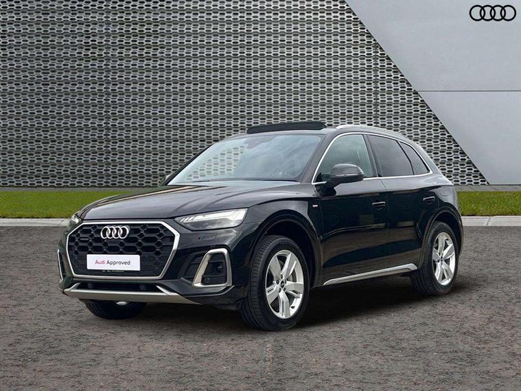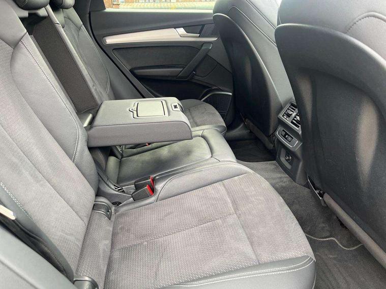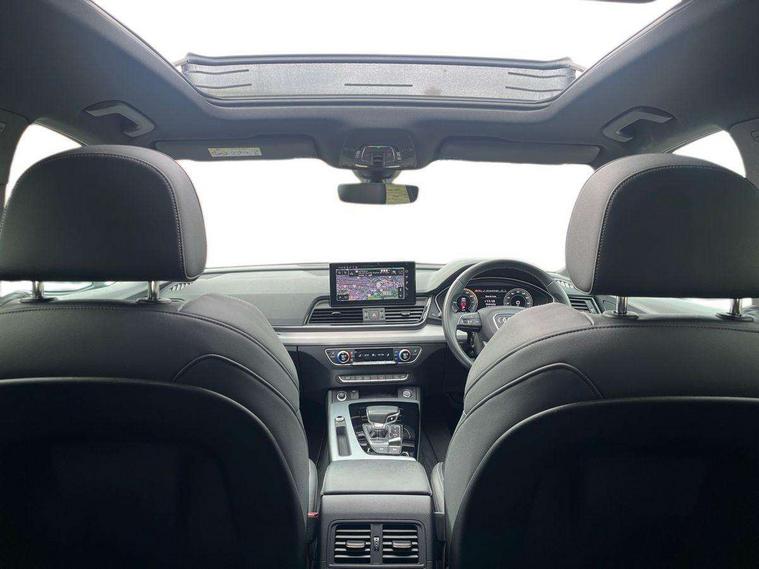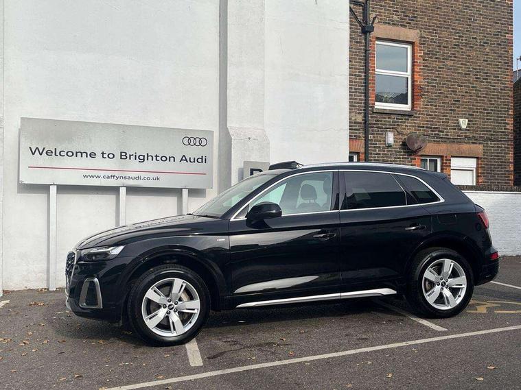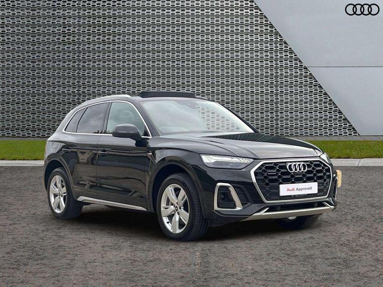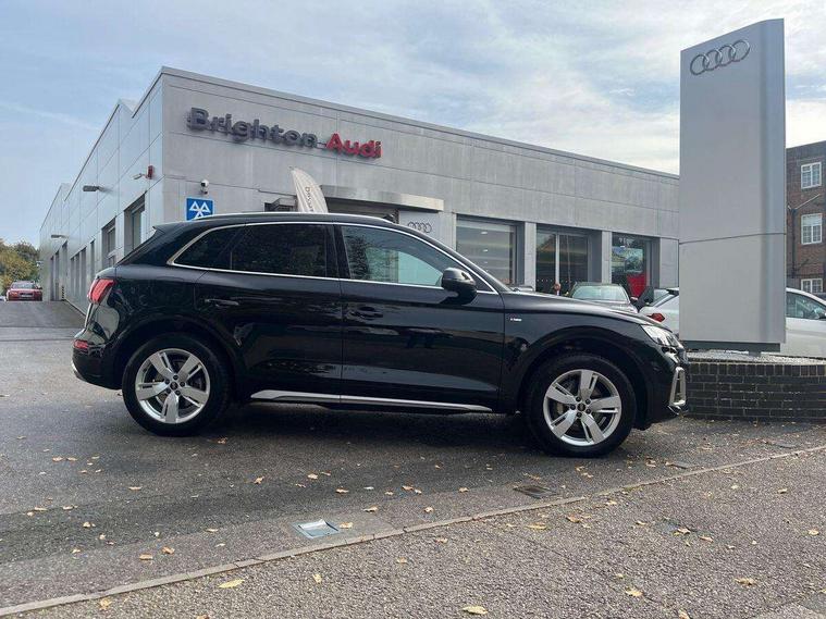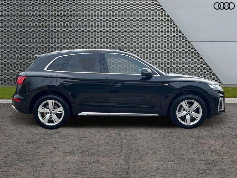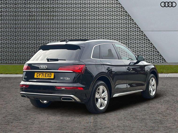 Audi connect safety and service (e-call), Audi connect with Amazon Alexa Integration, Audi drive select, Audi virtual cockpit plus with 12.3" screen and three different layout designs, Audi wireless smartphone interface, Automatic start-stop system with coasting functionality and efficiency programme, Bluetooth interface, Electro - mechanical power assisted steering, MMI navigation plus with 10.1" touch screen, Power tailgate, Reversing camera, Service interval indicator, Voice control system with Audi hotword activation "Hey Audi", 3 pin 10 amp domestic charging cable, Dynamic suspension, Quattro on demand, Type 2 mode 3 22kW 32 amp charging cable, Type 2 socket for AC charging, 2 x USB charging port with aux input socket, DAB Digital radio, Acoustic windscreen, Aluminium roof rails, Audi matrix LED headlights with dynamic front and rear indicators, Auto dimming rear view mirror, Automatic headlights and windscreen wipers, Body colour bumpers, Body colour door mirrors, Body colour rear diffuser with matt aluminium silver surrounds, Body colour underbody protection, Chrome plated exhaust trims, Door sills in Selenite silver, Electric adjustable/heated/folding door mirrors, Front air inlet surrounds in aluminium, Front and rear electric windows, Front radiator grille in honeycomb design, Headlight washers, Lower bumpers painted in contrast Manhattan grey, Rear chrome trim strip below lights, Rear privacy glass and rear side windows, Rear spoiler, Rear wiper, Roof bars, S Line badges on the front wings, S Line front and rear bumpers, S Line side skirts, 3 rear headrests, 40:20:40 split folding rear seat with rear centre armrest, Black cloth headlining, Comfort front centre armrest, Contrast stitching on seats, steering wheel and gear lever gaiter, Deluxe 3 zone electronic climate control, Front/rear floor mats, Gear lever in black leather, Heated front seats, Height adjustable front head restraints, Height/reach adjustable steering column, Illuminated door sill trims with S logo, ISOFIX child seat mounting and top tether, Manual seat adjustment with 4-way electric lumbar support, Rear seat bench plus, Sunvisors with vanity mirrors, Trunk roller cover, High gloss pack - Q5, LED interior light pack - Q5, 3 point seatbelts on all seats, 6 airbags - Driver, front passenger, curtain and side airbags, Electrically operated child locks on rear doors, Electromechanical parking brake, Electronic stabilisation control including ABS, ASR and EDL, Front passenger airbag deactivation, Hill descent control, Hill hold assist, Multi collision brake assist, Pop-up bonnet for pedestrian protection, Pre sense city, Seat belt force limiter, Seatbelt monitoring, Tyre pressure warning, Warning triangle and first aid kit, Anti theft alarm, Anti-theft wheel bolts, Keyless Go access/ignition system, Matt brushed aluminium inlays, Tool kit, Tyre repair kit,