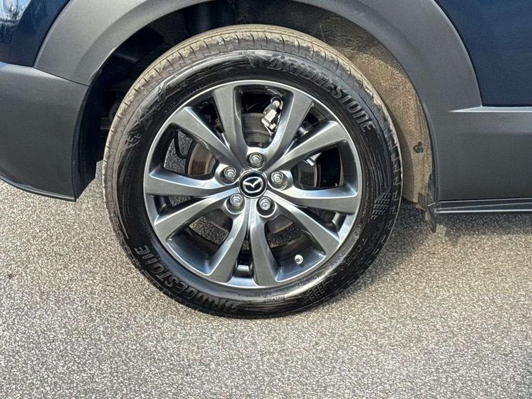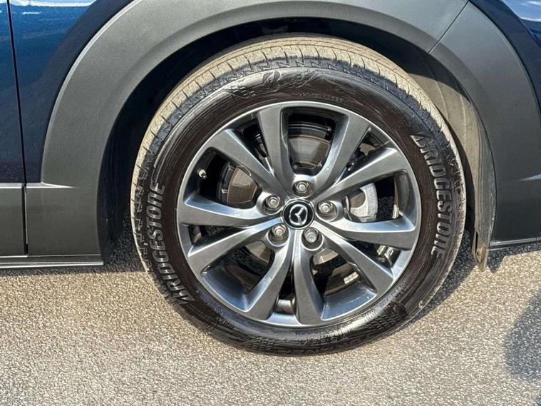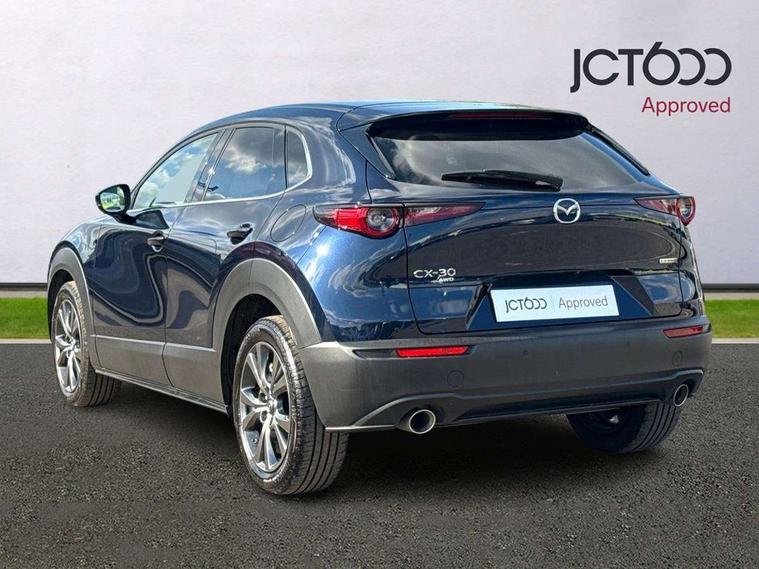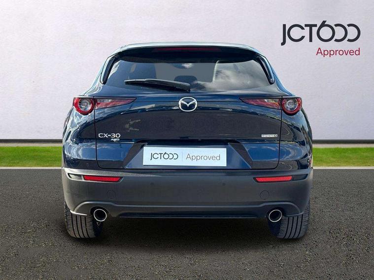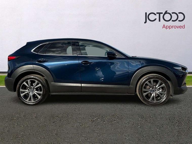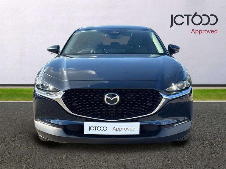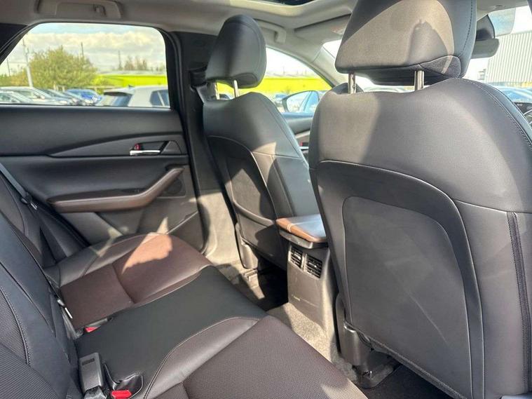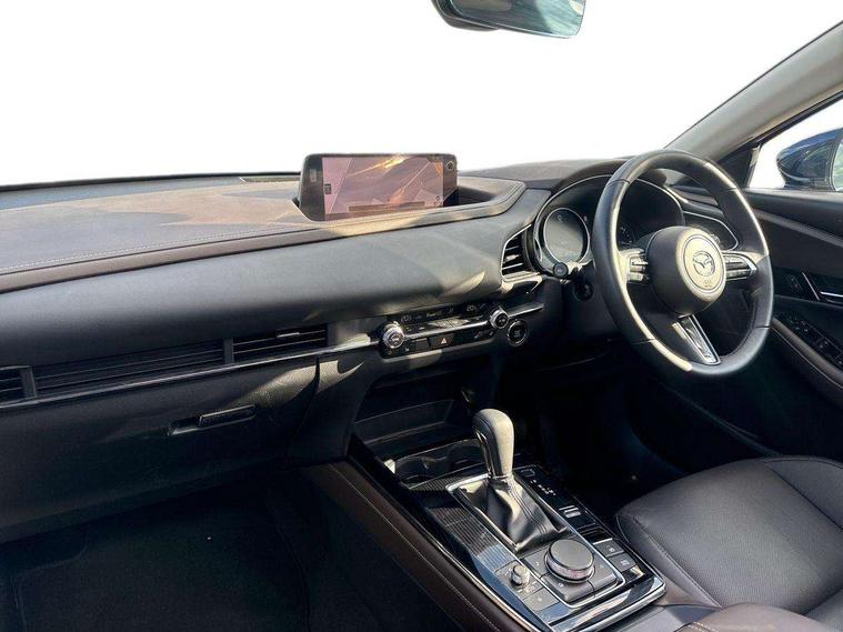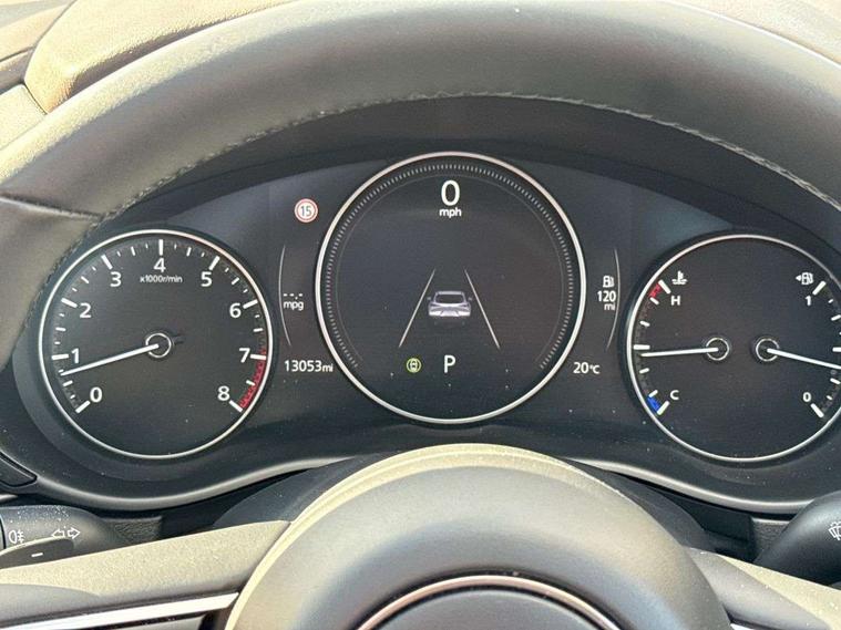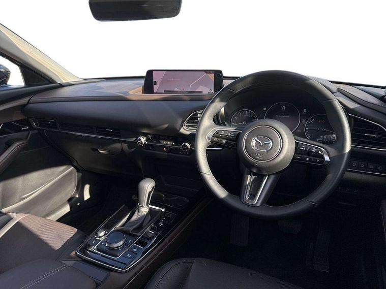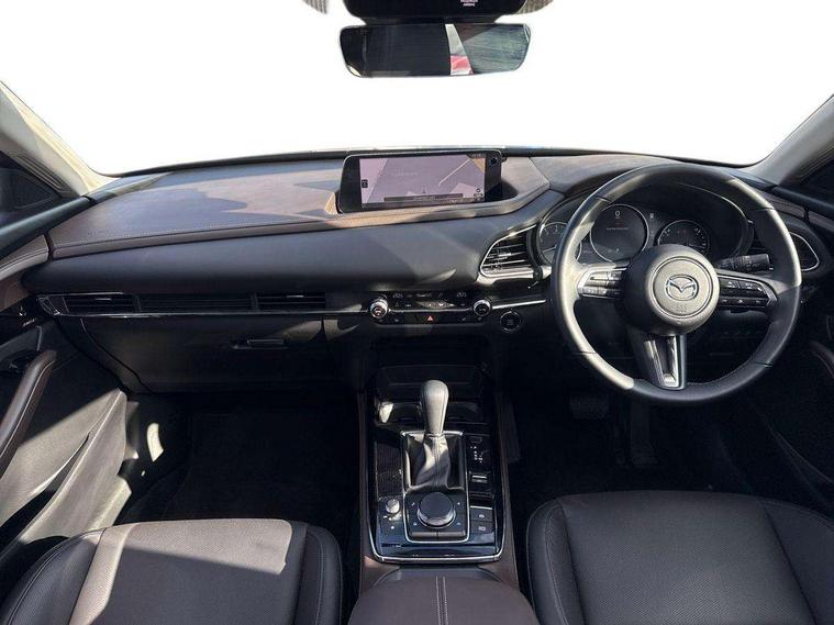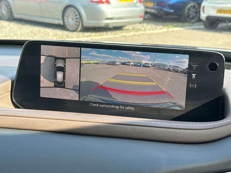 10.25" display with Mazda Connect infotainment, 360 View Monitor, 7" TFT Colour driver instrument panel display, Adaptive cruise control (Mazda radar cruise control) features stop and go, Blind spot monitoring with rear cross traffic alert, Cruising Traffic Support, Drive mode selector, Driver attention alert system, Driver monitoring system, E-call with GPS, Emergency stop signalling system, Engine start/stop button, Front and rear parking sensors, Front Cross Traffic Alert, Integrated bluetooth, Integrated Mazda navigation system, Intelligent speed assist, Lane keep assist system (LAS) with Lane departure warning system (LDWS), Mazda connected services, PAS, Power lift gate, Qi wireless charging, Service indicator, Tailgate, Traffic sign recognition, Trip computer, Windscreen projected colour active driving display (HUD), Wireless Apple CarPlay/Android Auto, i-stop, 2 USB charging ports in front inner central armrest, AM/FM and DAB radio, Bose surround sound system with 12 Speaker, Bose center point, Bass match and audio pilot technology, Multimedia Commander including separate volume dial, Steering wheel mounted audio/bluetooth controls, Adaptive LED Headlights, Auto dimming driver's door mirror, Auto headlight levelling, B-pillar and C-pillar garnishes in piano black finish, Body coloured, electrically adjustable, heated auto power folding door mirrors with integrated indicators, Chrome finish signature wing in front grille, Coming/leaving home lighting function, Door mirrors with adjustable memory and tilt-down function when reversing, Dual chrome exhaust, Dusk sensing headlights, Electric front/rear windows with one touch auto up/down, Frameless auto dimming interior rear view mirror, Front kodo turn signal, Front wiper de-icer, Gloss black front grille, Gloss black rear roof spoiler, High beam assist, LED signature daytime running lights, Power tilt/slide sunroof, Privacy glass (rear side windows and rear screen), Rain sensing front wipers with adjustable speed and intermittent wipe, Rear fog lights, Rear side wing doors, Rear wiper, Signature LED rear combination lights, Third brake light, 12V power outlet in centre console, 3 seat bench in 2nd row, 60/40 split fold down rear seats, Chrome interior trim accents with steering wheel centre bezel, surround of engine start / stop button and glove box handle, Dashboard, door cards and front centre armrest in rich brown leather, Driver and front passenger visors with covered vanity mirror and driver ticket holder, Driver's seat, power tilt, slide, recline, height and lumbar adjustment, Driver, front passenger and two rear door storage, Driver, Front passenger and two rear grab handles with coathooks, Dual zone climate control air conditioning with rear air vents, Folding rear centre armrest with two cup holders, Front and rear (x3) head restraints, Front and rear LED lighting, Front armrest, Front centre storage with two cupholders with lid, Front passenger seatback pockets, Front passengers seat manual slide, recline and height adjustment, Gear shift indicator, Glovebox illumination, Heated front seats with 3 stage setting, Heated steering wheel, ISOFIX child seat anchorage points attached on outer rear seats, Leather upholstery with interior accents, Leather wrapped gear shift knob, Leather wrapped steering wheel with telescopic and tilt adjustment, LED luggage compartment lighting, Light roof headlining and pillars, Paddle shift controls, Roof mounted sunglasses holder, Single front passenger seat, 3 point ELR front seat belts x2 with pretensioners, 3 point ELR rear seat belts, Anti-lock braking system (ABS), Drivers knee airbag, DSC - Dynamic Stability Control, Electronic parking brake with auto disengage function and auto hold function, Front and rear curtain airbags, Front and rear smart city brake support, Front dual stage driver and single stage front passenger airbags, Front passenger airbag cut-off switch, Front side airbags, G-Vectoring control plus, Hill launch assist, Manual child lock in rear doors, Mild Hybrid system with regenerative braking, Rear cross traffic braking, Seatbelt reminder for driver/front passenger and rear seats, Traction control system (TCS), Tyre pressure monitoring system (TPMS), Remote central locking with deadlocking and automatic door lock when driving, Smart keyless entry, Thatcham accredited alarm and immobiliser, Dark vinyl door panel inserts, 18" Bright silver metallic alloy wheels, Emergency tyre repair kit,