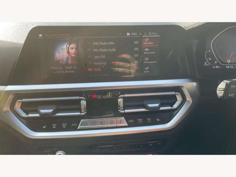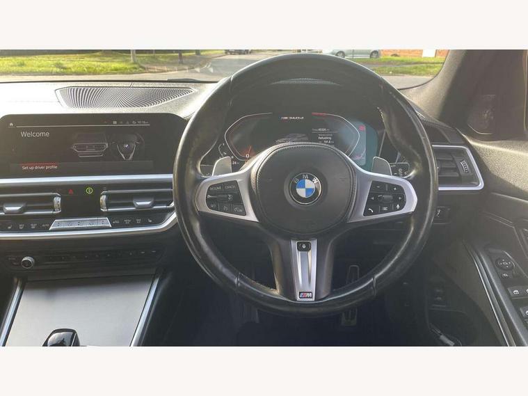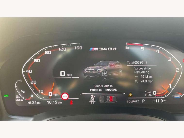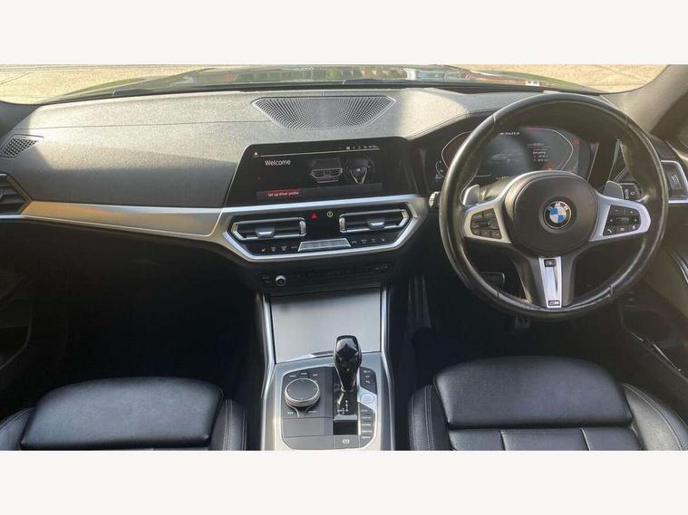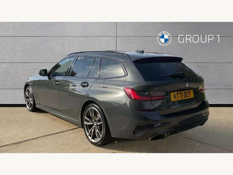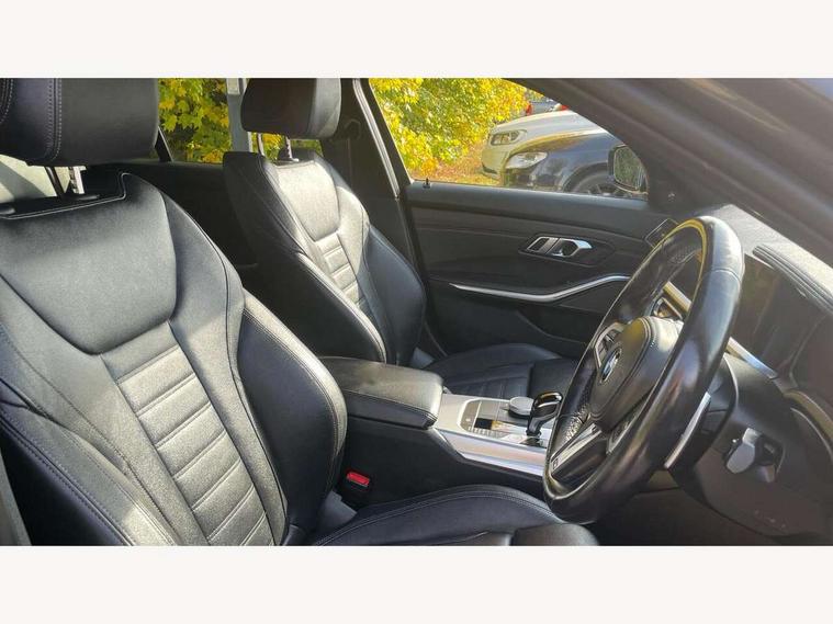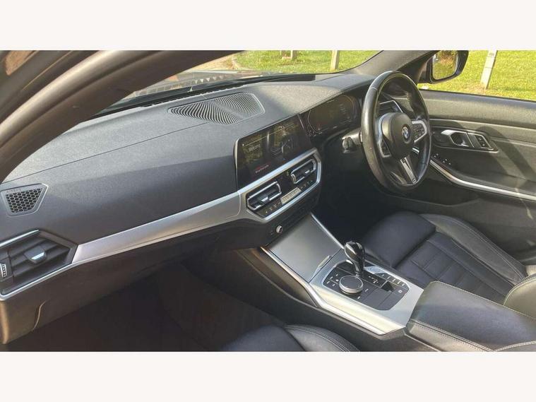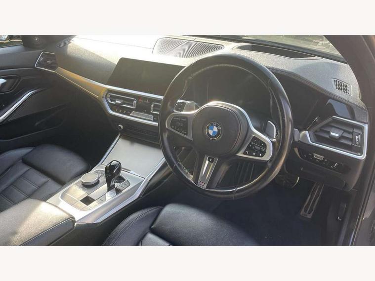 Active guard plus, Attentiveness assist, BMW ConnectedDrive oline services with BMW apps, BMW Live Cockpit Professional Nav with 12.3" instrument display + 10.25" display, Intelligent Voice Assist, BMW OS 7, HDD, 2USB, 4G LTE connect, BMW service history, BMW Teleservices, Brake pad wear indicator in front and rear, Check Control warning system for monitoring of lights and door/luggage compartment open warning, Condition based service, Electric power steering with Servotronic steering optimised at all speed ranges, Gearshift time display in manual mode, iDrive controller on centre console, Instrument cluster with speedometer with mph readout, tachometer, fuel gauge and oil temperature gauge, Integrated owners handbook, Oil sensor for level and grade, warning by check control system, On board computer - average speed+fuel consumption, service interval, clock/date, odometer/trip meter, outside temperature display and ice warning, Optimum shift indicator, Personal Profile - automatic lock when driving away selectable, Recovery braking system, Variable sport steering, 48V Mild hybrid technology, Adaptive M suspension, Balanced 50/50 weight distribution, Battery cut-out switch, Common rail technology, Diesel particulate filter, Drive performance control - ECO PRO, comfort and sport modes, EU6 emissions management, Incorrect fuelling protection, Larger capacity fuel tank, M Sport differential, Oxidation catalytic converter, Selective catalytic reduction (SCR) with AdBlue, Stroke dependent dampers, Twin scroll turbocharger, DAB tuner, Electronic service booklet, 2 x square exhaust tailpipes, Acoustic glazing, Automatic headlight activation/adjustment, Automatic headlight beam throw control with load dependent regulating reaction, dynamic compensation of braking dive and acceleration squat, Black roof mouldings, Body colour door handles, Body colour fuel filler flap, Dynamic brake lights, Electric windows - front and rear, with open/close fingertip control, anti-trap facility and comfort closing, Exterior mirrors - electrically folding with anti-dazzle, Fading support, Front and rear bumper system with replaceable deformation elements, Front black door sill finishers with BMW designation, Green tinted heat protection glazing, High gloss black exterior B pillar, High gloss shadow line exterior trim, High gloss shadow line roof rails, Interior rear view electrochromatic mirror with automatic anti dazzle function, LED daytime running lights, LED front fog lights, LED third brake light, Lightweight engineering, M designation on front side panels, left and right, Rain sensor, Rear side wing doors, Rear wiper, Shark fin antenna, Sun protection glass, Two part LED tailights in L-shape with components in smoked glass, brake light, LED turn indicator and rear fog light, Visible VIN plate, Welcome lights in interior and door handle area, Windscreen wipers with integrated washing jets, xDrive designation on left tailgate, 12V power socket in front storage compartment, 2 front cupholder in centre console with clamping elements and matt black inlay, 3 seat bench in 2nd row, 3 zone automatic air conditioning, 4 pieces lashing eyelets in luggage compartment, 40:20:40 split folding rear seat with loading system, Ambient lighting with welcome carpet light, Anthracite headlining, Armrest integrated in front and rear door trim + front centre console armrest, Backrest width adjustment, Centred top Luggage compartment lights, Four grab handles integrated in roof lining, Front and rear door exit lighting (left / right), Front and rear door pockets, Front and rear reading lights, Front and rear velour floor mats, Front head restraints, Heated front seats, Height adjustable mechanically and infinitely variable steering column, Illuminated armrest storage compartment, Illuminated glove compartment with separate small compartment, Interior lighting - front centre over interior mirror with soft light, rear centre and front and rear footwell lighting, Make-up mirror lights, Rear centre armrest with 2 cupholders, Rear centre console with storage compartment and ventilation grille, Single front passenger seat, Sunvisors with vanity mirrors and ticket pocket, Three spoke multifunction M sport leather steering wheel, Toolkit located in luggage compartment, Connected pack professional - 3 Series Saloon/Touring, M sport exterior styling pack - 3 Series Saloon/Touring, 2 tone horn, 3 rear seats with non folding headrests, Airbags activation controlled with intensity and scope, BMW emergency call, Brake energy regeneration, Braking pre-tensioning, Child proof locking system in rear door, Child seat ISOFIX attachment rear outer seats, Coasting in idle in ECO PRO mode, Crash sensor activating of airbags, Unlocking doors, hazard warning lights, fuel cut off, interior lighting+activation of safety battery terminal clamp, Deactivation of fuel pump in the event of a crash, Driver and front passenger side airbags, integrated in the door side seat backrest bolsters for all seat variants, Driver/Front Passenger airbags, Dry braking, Dynamic brake control, Dynamic stability control + (DSC+) - Anti-lock Braking System (ABS) with brake assist and cornering brake control + Automatic Stability Control (ASC), Dynamic Traction Control - DTC, Electromechanical parking brake including automatic hold function and automatic release of the parking brake when pulling away, Electronic differential lock control (EDLC), Front passenger manual airbag deactivation, Head airbags for all 4 outer seats, Hill start assist, M sport seatbelt, Seat belt security check for driver and front passenger, Side impact protection, Three 3 point seat belts on all seats including front belt stopper, pyrotechnic belt tensioners and belt force limiters, Tyre pressure monitoring with three level warning strategy, Ventilated front and rear disc brakes, Warning triangle and first aid kit, Alarm system (Thatcham 1) with remote control and electronic engine immobiliser, Central lo