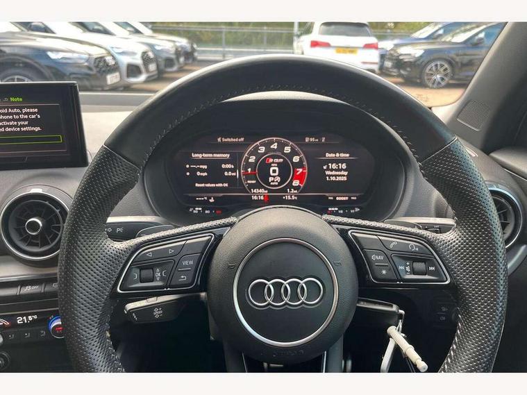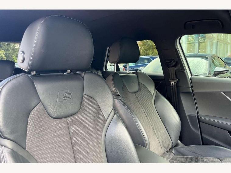 Audi drive select, Audi smartphone interface, Automatic start/stop system with recuperation, Bluetooth interface includes bluetooth audio streaming, Cruise control, Driver's information system - 3.5" colour display, Instrument dials with S logo, MMI SD card integrated nav with 3D map display, dynamic route guidance with TMC, MMI search, natural voice recognition and myAudi special destinations, Power operated tailgate, Progressive steering, Service interval indicator, S sports suspension with lowered by 20mm, 2 x SDXC card reader, Audi music interface - apple iPod, apple iPhone, USB storage media, compatible MP3 players, 2 x USB charging points and 1 x Aux-in, CD Drive, DAB digital radio and AM/FM radio, MMI radio plus with 7" colour MMI screen and MMI controller, Black window trims, Electrically adjustable and heated door mirrors with integrated LED side indicators, Front and rear electric windows, Front windscreen with grey tinted sunband, Headlight washers, Interior mirror, LED headlights with LED rear lights + dynamic rear indicators, LED indicator lights, Manual folding door mirrors, Rain and light sensors, Rear wiper, S design body styling - underbody protection, SQ2 - front bumper with S design inlets, rear diffuser in silver and roof spoiler, S design radiator grille with horizontal struts and SQ2 logo, S specific dual branch tailpipes on left and right in chrome finish, 3 spoke flat bottomed high multi-function leather sport steering wheel with gearshift paddles, 60/40 split folding rear seat bench, Black cloth headlining, Dual zone electronic climate control, Floor mats with contrast stitching, Front centre armrest, Front headrests, Front sport seats with S embossed logo, Height/reach adjust steering wheel, Illuminated door sill trims with S logo, ISOFIX child seat mounting for front passenger with airbag deactivation and outer rear seat including top tether attachment point for outer rear seats, Manual seat adjustment including seat height adjustment for front seats, Stainless steel pedals, Storage compartments - Glovebox, cupholder compartment in centre console, storage compartment in rear centre console, front and rear door pockets, Three rear headrests, Extended interior upholstery pack - Q2, Non smoking pack - Q2, 3x3 point rear seatbelts, 6 airbags - Front, curtain and front side airbags, Electromechanical parking brake, Electronic stabilisation control including ABS, ASR and EDL, Extended and proactive pedestrian protection, Hill hold assist, Multi collision brake assist, Pre-sense front with pedestrian recognition, S model enhanced braking system, Seatbelt monitoring, Tyre pressure warning light, Warning triangle and first aid kit, Anti theft alarm, Anti theft wheel bolts, Central locking system with remote control key, Electronically operated child locks, Aluminium interior element,