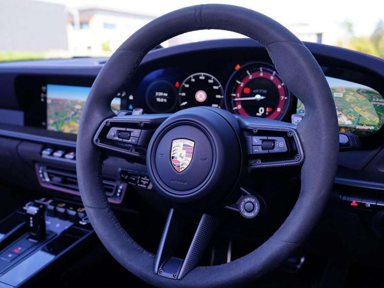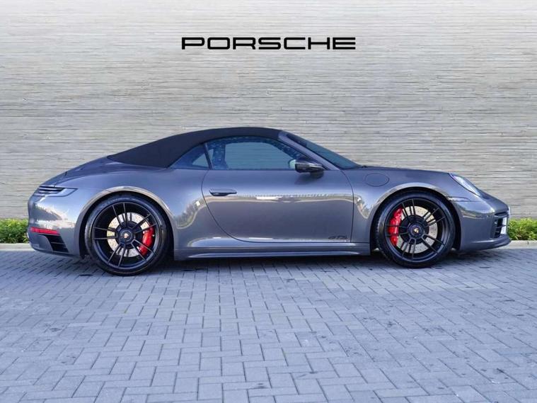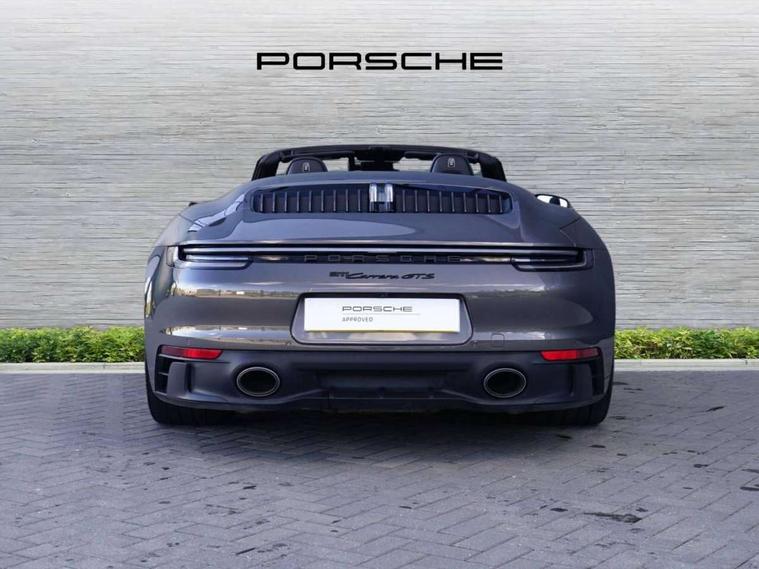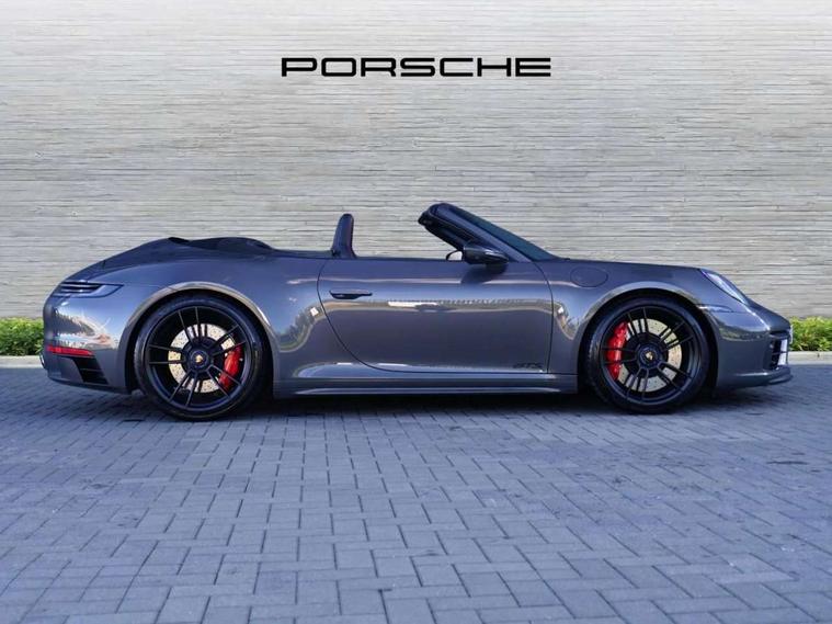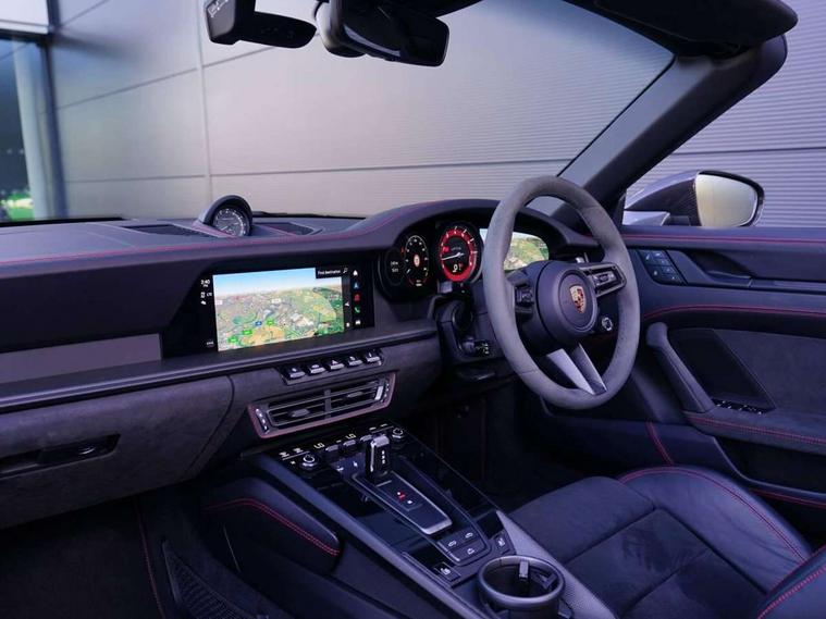 10.9 inch centre display, Automatic start/stop system, eCall emergency system, Gear indicator in rev counter, Instrument cluster with central analogue rev counter and two 7-inch TFT displays, Porsche Communication Management (PCM) including online navigation module, mobile phone preparation, audio interfaces and voice control system, Service indicator, Smartphone integration with Apple CarPlay and Android auto, Stationary management with HOLD function, Trip computer, Warn and brake assist including pedestrian protection, 8 Speed Porsche Doppelkupplung (PDK) with dual mass flywheel, Aluminium block and cylinder heads, Catalytic converters, Direct fuel injection (DFI), Dry sump lubrication, Expansion intake manifold, Four valve per cylinder, McPherson-strut suspension with anti-roll bar at front, Porsche Stability Management (PSM), ABS with extended brake functions, Porsche Torque Vectoring Plus (PTV Plus) inc electronically regulated rear differential lock and fully variable torque distribution, Rear wheel drive, Twin turbocharger intercooled, Two gasoline particulate filter, VarioCam Plus variable valve timing and switchable valve lift, Water-cooled engine with thermal management, 4 valves per cylinder, 2 USB-C connectivity and charge ports in the centre console storage compartment, DAB Digital radio, 3rd brake light, Auto deploying rear spoiler, Automatic headlight activation including welcome home lighting, Automatically dimming interior and exterior mirrors with integrated rain sensor, Body coloured bumpers, Fully automatic fabric hood, electrically operated heatable glass rear screen, operable approx 31mph and convenient operation by key remote, Green tinted heat insulating glass, Heated rear windscreen, Integral electrically powered wind deflector, Intelligent lightweight body in Aluminium/Steel composite construction, LED auxiliary light units in the front end with position lights, direction indicators and side indicators, LED daytime running lights, PORSCHE black lettering integrated in taillight strip, Power rear side windows, Power windows with one touch operation and door seal protection, Rear boot, Rear lid grille with vertical slats in satin black, Side skirts trim in black, Trims on sideskirts in black, Windscreen washer system with aero wiper blades and washer jets, 12V socket in front passenger footwell, 2 individual seats in 2nd row, 2+2 seater with rear engine, Ascending centre console with storage compartment, Black race-tex on steering wheel rim, seat centres, door handles, door panel armrests, gear lever, centre console storage compartment lid partially, Driver and front passenger illuminated vanity mirrors, Front and rear head restraints, Heated front seats, Hood lining in black fabric, ISOFIX child seat mounting points on passenger seat, LED door lights, LED footwell lights, LED glove compartment lighting, LED ignition light, LED luggage compartment lighting, LED orientation light, LED reading lights, Lockable glove compartment, Luggage compartment lid release, Particle/pollen filter with active carbon filter, Single front passenger seat, Split folding rear seats, Storage compartments in each doors, Two individual cupholders 1x as inlet in centre console and 1x passenger side, Two zone auto climate control with separate temperature settings for driver/front passenger, automatic air recirculation mode incl air quality sensor, Sport Design pack - 911 GTS, 6 piston aluminum monobloc fixed front calipers and 4 piston aluminum monobloc fixed rear calipers with cross-drilled, internally vented brake discs, Auto deploying roll over protection system, Electric parking brake, Electromechanical power brake, Full size two stage airbags for driver and front passenger, Pedestrian protection, Porsche side impact protection system (POSIP) includes side impact protection in doors, head/thorax airbags for driver and front passenger, Tyre pressure monitoring system, Dashcam prep, Engine immobiliser with remote central locking and alarm system with ultrasonic sound based interior surveillance, Porsche vehicle tracking system (PVTS Plus), Tyre sealing compound and electric air compressor kit,