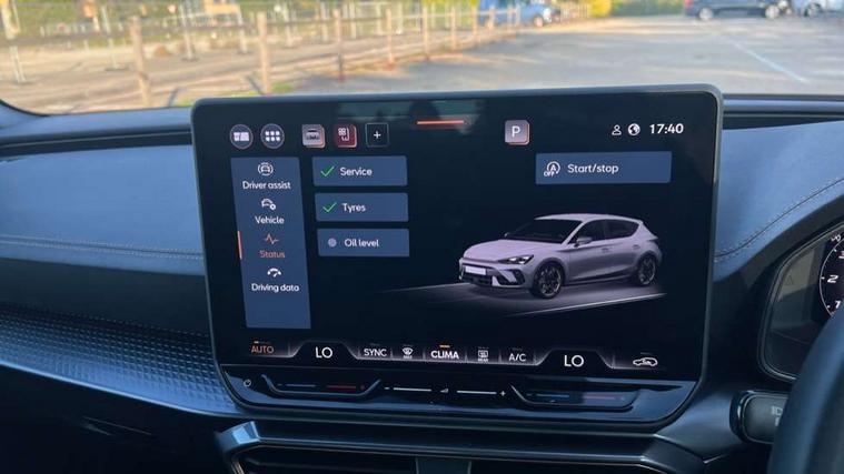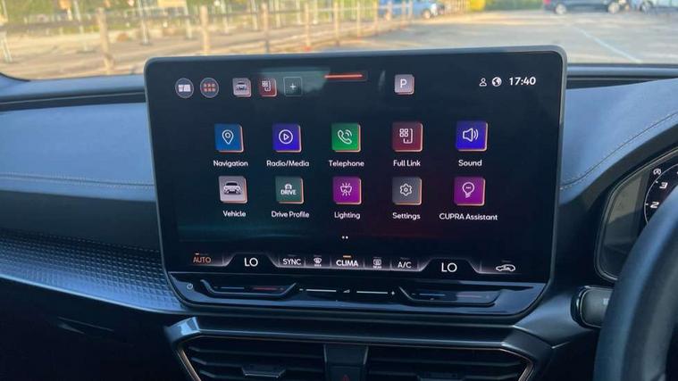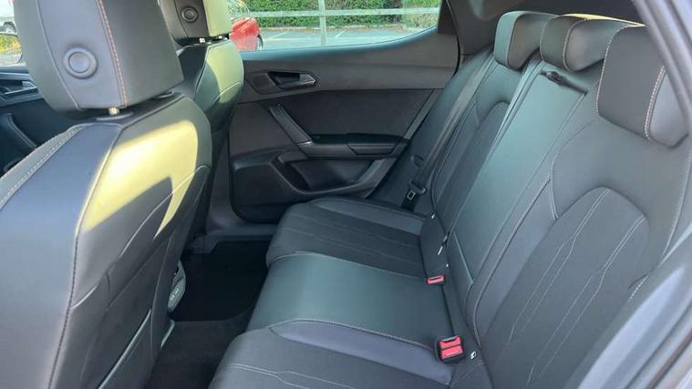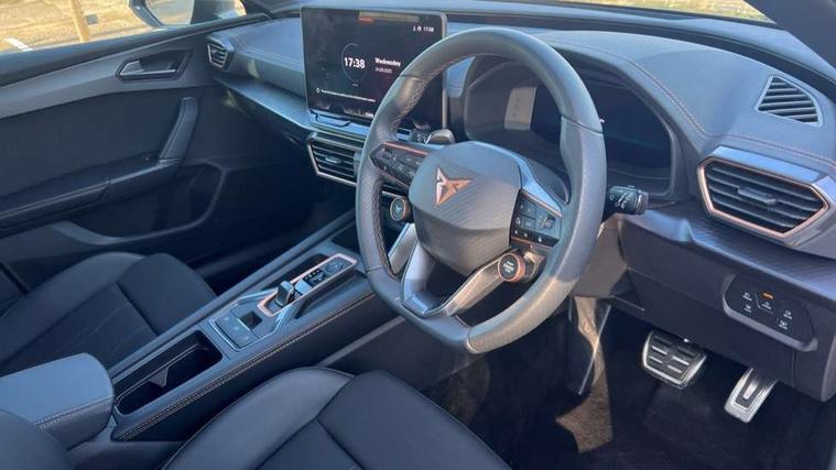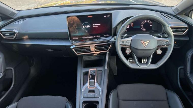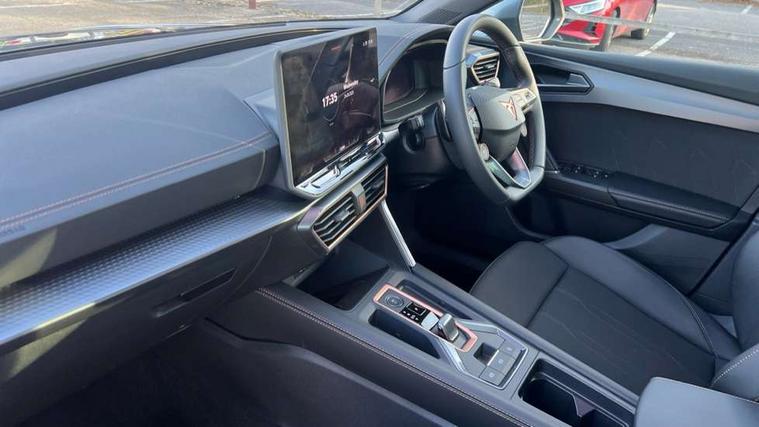 Adaptive cruise control with follow-to-stop and speed limiter, CUPRA drive profile selection with (Comfort/Sport/Individual), throttle response and gearshift mode, Digital cockpit, Dynamic road sign display, E-call, Four x USB Type C ports (2 in front and 2 in rear), Front and rear parking sensors, Front assist with forward collision warning braking reaction to vehicles, pedestrians and cyclists, Full link smartphone integration with Mirror Link, wireless Apple CarPlay and wired Google Android Auto, Lane assist, Lockable tailgate, PAS, RPM, trip computer, outside temp gauge, instrument light brightness, low fuel warning light, lights on reminder, gearshift indicator, Service interval indicator, Start/stop system with regenerative braking, Wireless phone charger, 7 speakers, Auxiliary input socket, Auto dimming rear view mirror, Body colour door handles, Body coloured bumpers, Cupra sports bumpers, Dark tinted rear windows, Electric front/rear windows, Electrically adjustable, heated and folding door mirrors, High beam assist, LED front fog lamps with cornering function, LED headlights with dynamic turn signals, tail lights, rear fog lights with rear coast to coast lighting, LED rear fog lamp, Rain sensing wipers, Rear side wing doors, Rear wash/wipe, Separate daytime running light with automatic headlight control and coming home feature, Third brake light, Welcome light with logo projector in door mirrors, 12v power supply in centre console, 3 seat bench in 2nd row, 5 headrests, 60/40 split rear bench seat with armrest, Ambient lighting with glovebox, footwell and single monocolour, Black headlining, Cloth/PVC upholstery, Cupra sports pedals, CUPRA Supersports, heated steering wheel with satellite buttons, Driver and passenger seat with manual height and lumbar adjustment, Folding boot cover, Front and rear reading lights X 4, Front centre armrest, Height/reach adjust steering wheel, Illuminated interior front door sills, ISOFIX points in outer rear seats with top tether anchorage points, Single front passenger seat, Storage pockets on rear of front seats, Sunvisors with illuminated mirror, Three zone climate control, Media system plus with 12.9" display + navigation pack - Leon Cupra, 3 point seatbelts on all rear seats, ABS, Brake control system - ESC and brake booster, Child proof door locks, Cupra black brake calipers, Driver and front passenger airbags with front passenger airbag de-activation, front side and curtain airbags, Electronic parking brake, Hill hold control, Rear disc brakes, Seat belt reminder for front and rear seats, Tiredness recognition system, Tyre pressure monitoring system, Anti theft alarm system with interior monitoring in cab, backup horn and towing protection, Central locking system Keyless Go, Locking wheel bolts, Chrome and copper interior detailing, 18" Windstorm machined sport black matt and silver alloy wheel with 92Y XL tyres, Tool kit,