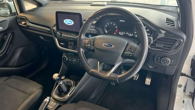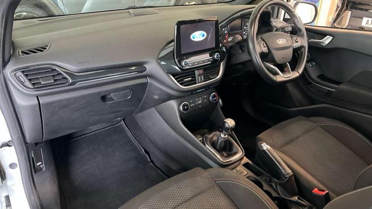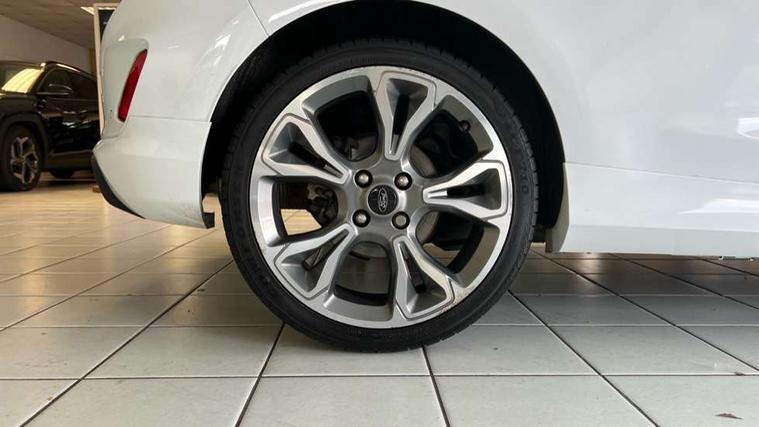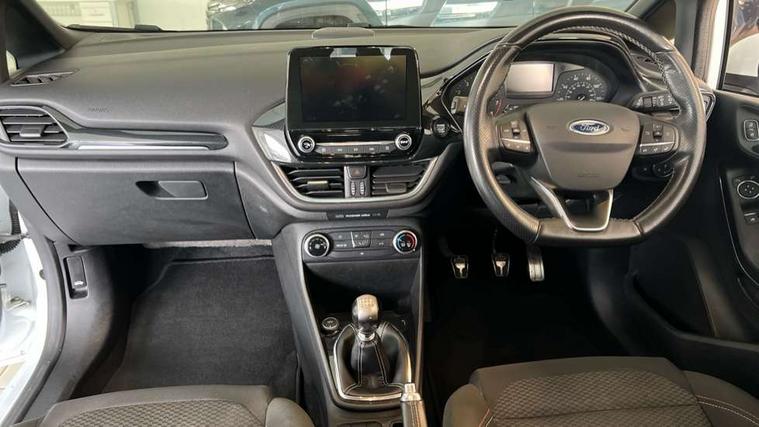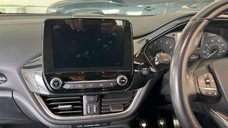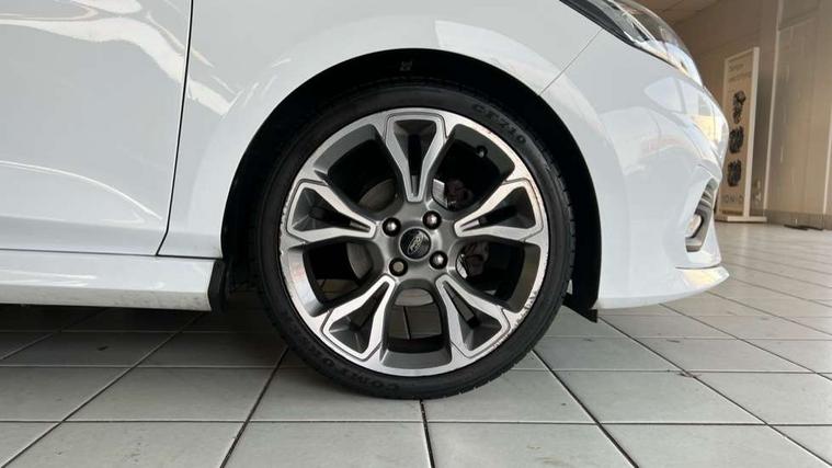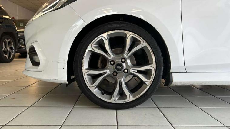 Bluetooth system, Electric power steering, Lane keep assist, Speed limiter, SYNC Emergency Assistance, Trip computer, Sports suspension, 2 USB ports, Auxiliary input socket, Ford SYNC 3 DAB radio, apple car play and android auto with voice control, Steering wheel mounted controls, USB connection, Automatic headlights, Body colour bumpers, Body colour door handles, Body colour electric adjustable heated door mirrors, Body colour large rear spoiler, Body styling kit, Chrome door handles, Cornering front fog lights, Electric front windows/one touch facility, LED daytime running lights, Quickclear heated windscreen, Rear wiper, Tinted glass, Upper front grille chrome surround, 12V Accessory socket in centre console, 3 spoke flat bottomed leather steering wheel, 60/40 split folding rear seat, Adjustable head restraints, Black headlining, Boot carpet, Centre console with armrest, Chrome inner door handles, Cloth upholstery, Footwell illumination, Front and rear velour floor mats, Front map reading lights, Front seat and rear pockets, Height adjustable driver's seat, Illuminated cup holders, Illuminated glovebox, Leather gear knob, Leather trimmed handbrake handle, Load area light, Manual air conditioning, Overhead console with sunglasses holder, Pollen filter, Rake/reach adjustable steering wheel, Rear centre head restraint, Sports front seats, Sports pedals, 3 point seatbelts on all rear seats, ABS+EBA, Curtain airbags, Driver and passenger airbags, Drivers knee airbag, ESP + traction control, Front passenger airbag deactivation, Front side airbags, Hill start assist, Seatbelt warning, Tyre pressure monitoring system, Immobiliser, Keyless start with 'Ford Power' starter button, MyKey system, Remote central locking, Thatcham Cat.1 alarm,