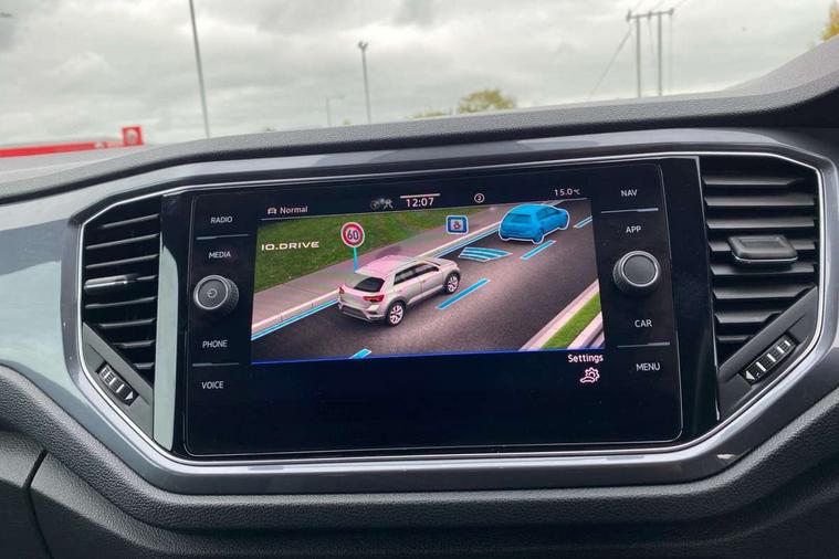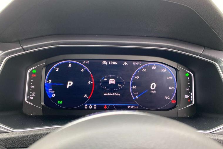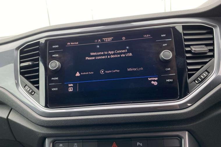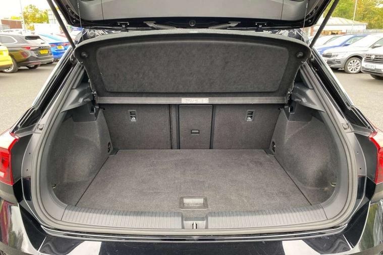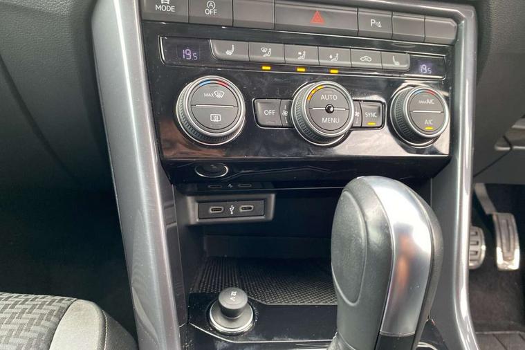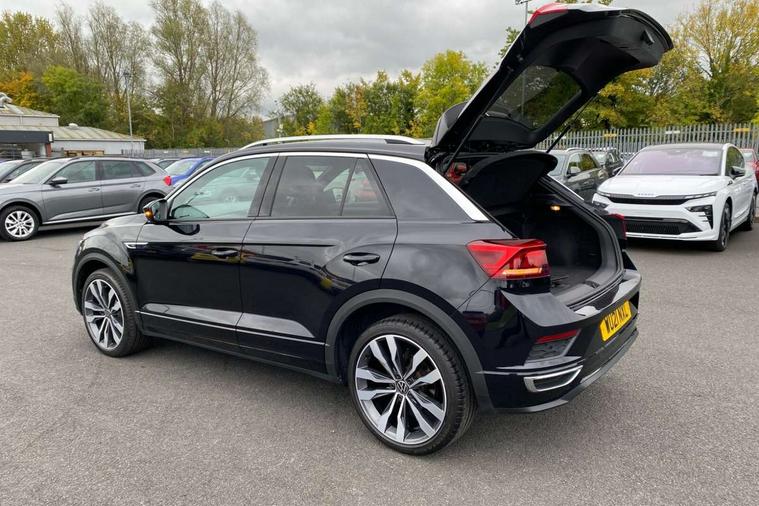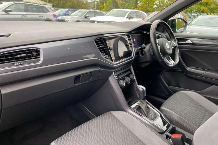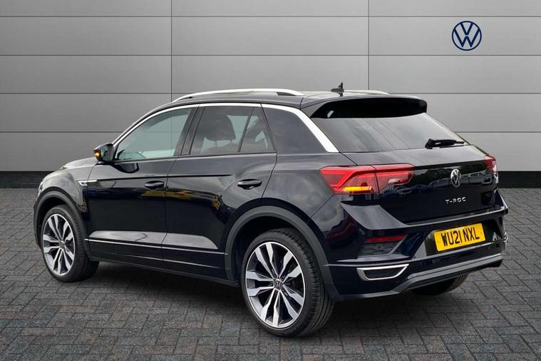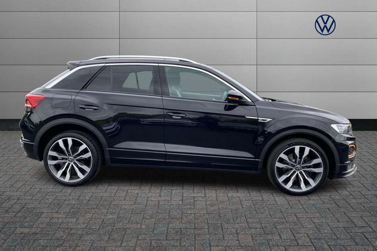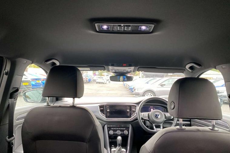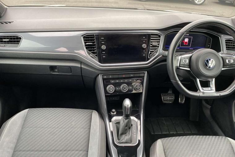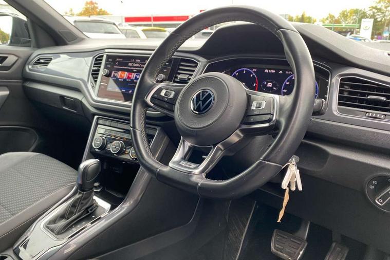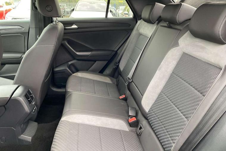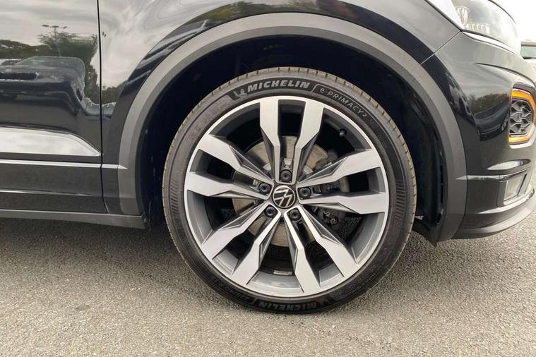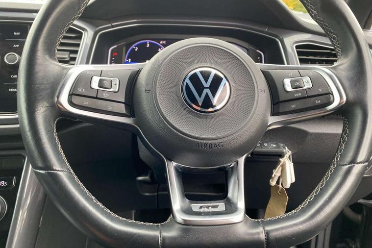 'Lights On' Reminder warning buzzer, Adaptive cruise control with front assist, radar sensor controlled distance monitoring, city emergency braking, Automatic start/stop system, Bluetooth telephone and audio connection for compatible devices, Car information display, Digital Cockpit Pro - Active info display, Discover navigation including 8" touch screen display, streaming and internet, Driver alert system with audible and visual fatigue detection system, Driver tips and journey analysis, Lane assist with warning text instrument cluster, Modified key software - reduce switch off time for key status change to Long no motion, Multifunction computer with visual gear change recommendation for fuel consumption, Service interval indicator, Think blue trainer driver tips and journey analysis, Voice activation, Wireless app connect for apple carPlay, Battery regeneration during braking, Misfuel prevention device for diesel engine, Centre arm rest including USB type C interface and USB charging socket, DAB Digital radio, Diversity antenna for FM reception, Front USB type C Interface 2X and USB charging socket, Music playback - MP3, WMA and AAC files, Premium USB cable in choice of either Apple or Android smartphone compatibility, SD card slot, Simultaneous pairing of 2 compatible mobile devices, SMS functionality - read, compose and send SMS messages using touch-screen display, Storage compartment with longitudinal and height adjustable in armrest and two rear air vents, Three route options - Fast, Short, Eco, Title and cover art display, Auto dimming interior rear view mirror, Automatic hazard lights activation under emergency braking, Black grained lower door protectors, Body colour door handles, Body colour rear roof spoiler, Chrome effect left and right trapezoid exhaust tailpipe fascia surround, Chrome trim on upper and lower radiator grille, Dusk sensor, Electrically foldable, adjustable and heated door mirrors with puddle lights and reverse activated kerb-view adjustment on passenger's door mirror, Front and rear electric windows, Front fog lights with static cornering function, Front windscreen wiper with intermittent wipe and 4 position delay, Fully galvanised body, Heated rear window, High level 3rd brake light, LED darkened rear light clusters, LED dipped and main beam headlights with automatic range adjustment including signature LED daytime running lights, LED rear number plate lights, Manual coming/automatic leaving home lighting function, Rain sensor, Rear tinted glass from B-pillar backwards approx 65% tinted, Rear wash/wipe with intermittent wipe setting, Volkswagen roundel, 2 Front and rear reading lights incorporating LED technology, 3 rear head restraints, 4 load lashing points in luggage compartment, Aluminium pedals, Ambient lighting in front footwell and light strips below trim in front doors, Black roof lining and sun visors, Branded points of interest, Carbon flag cloth upholstery, Climate control - 2 zone electronic air conditioning with automatic air recirculation and allergy filter, Drawer under drivers seat, Front + rear carpet mats, Front cupholders x 2, Front seat back storage pockets, Front sports seats with R-Line logo on seat backrest, Glovebox, Height adjustable front seats, Height/reach adjust steering wheel, Illuminated vanity mirrors, Instrument lighting, white adjustable panel illumination, Interior light delay, Isofix easy fit child seat preparation for 2 outer rear seats, Load through provision with single cup holder when folded down, Luggage compartment cover, removable, Luggage compartment lighting, R Line badge, Split folding rear seat backrests with centre armrest, Storage compartment in left and right luggage area, Storage compartment in rear doors, Storage compartments in driver and front passenger doors, Three spoke multi function leather trimmed steering wheel and gear knob including paddle shift, Unique R Line door sill protectors, R line styling pack - T-Roc, Winter pack - T-Roc, 3 rear three point seatbelts, ABS, Curtain airbags, Driver and front passenger safety-optimised head restraints, Drivers and front passengers airbags with passengers deactivation switch, Drivers seatbelt reminder, Electronic parking brake with auto hold, Electronic stability control (ESC) includes ASR, EDL, EDTC and trailer stabilisation function, Front seat side impact airbags, Predictive pedestrian protection, Rigid safety cell with front and rear crumple zones, Three point height adjust front seatbelts + pretensioners, Tyre pressure loss indicator, Ventilated front and rear disc brakes, Volkswagen roadside assistance, Alarm with remote central locking and interior protection, Electronic engine immobiliser, Remote central locking with 2 remote folding keys, Shadow grey decorative inserts in dash and door panel, 19" Suzuka alloy wheels with low rolling resistance tyres and anti wheel bolts,
