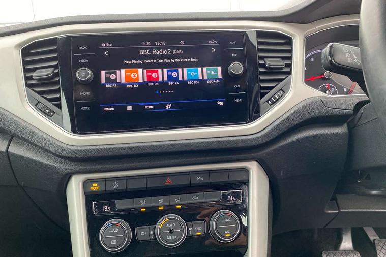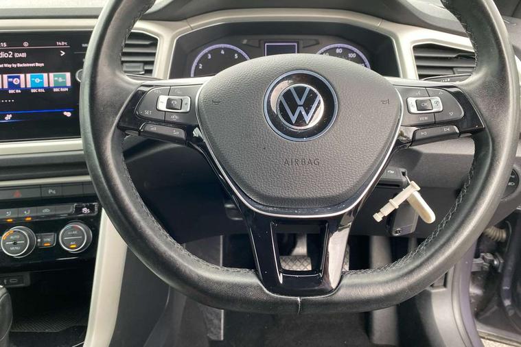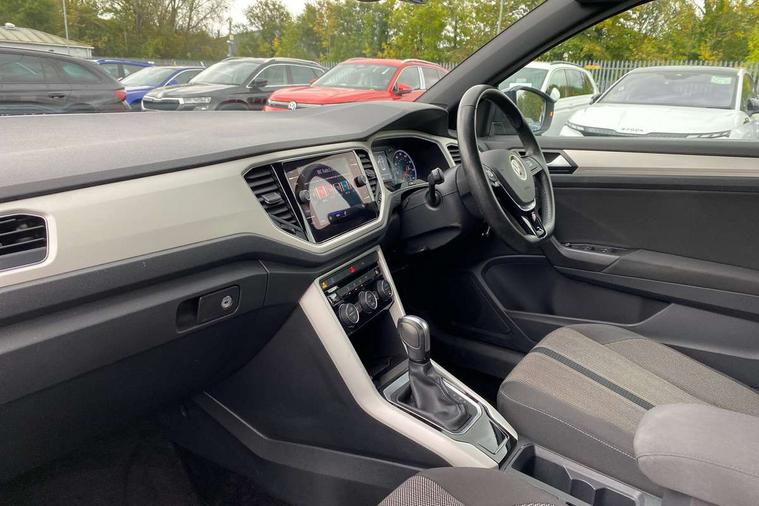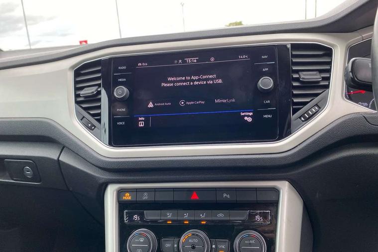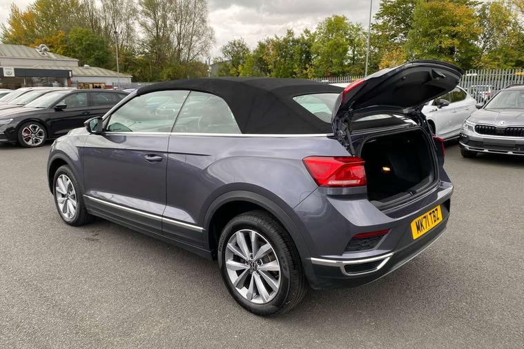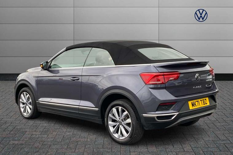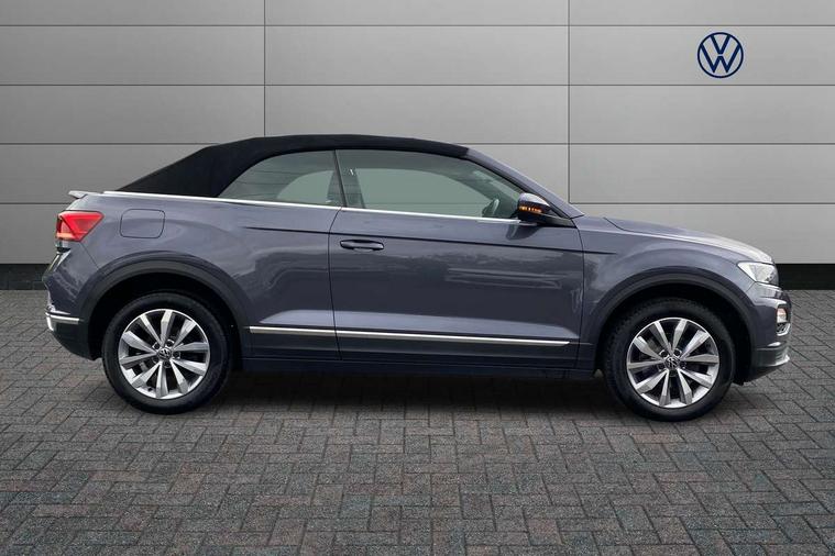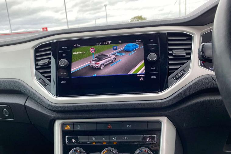 8" colour touch screen, Adaptive cruise control, Bluetooth telephone and audio connection for compatible devices, Brake pad wear indicator, Car information display, Car-Net Security and Service, Driver alert system with fatigue detection, Driver tips and journey analysis, Dynamic road sign display, Emergency call service, Lane assist with warning text instrument cluster, Mobile phone interface, Modified key software - reduce switch off time for key status change to Long no motion, Multifunction computer with visual gear change recommendation for fuel consumption, Navigation system discover media including streaming and internet, Online services, Power assisted speed sensitive steering, Speedo and rev counter, electronic odometer, trip, service interval display, digital clock and fuel gauge, Start/stop system with brake energy recovery, Tailgate/trunk lid release from outside, Warning sound and light for front seatbelts unfastened, Wired and wireless app connect, Bluetooth - Simultaneous pairing of 2 compatible mobile devices, DAB Digital radio, Diversity antenna for FM reception, Music playback - MP3, WMA and AAC files, SMS functionality - read, compose and send SMS messages using touch-screen display, Title and cover art display, USB-C Interface and USB charging socket, WeConnect plus, Auto dimming interior rear view mirror, Automatic coming/leaving home lighting function and daytime running lights, Automatic hazard lights activation under emergency braking, Body colour rear roof spoiler, Body coloured bumpers and radiator grille with chrome trim and front fog lamps with chrome bezel, Body coloured exterior mirror housings and door handles, Chrome effect left and right trapezoid exhaust tailpipe fascia surround, Chrome trim on upper and lower radiator grille, Dusk sensor, Electrically power adjustable, heated, folding, auto dimming, front passenger exterior door mirror lowering function, Front and rear electric windows, Heat insulating glass windscreen, High level 3rd brake light, LED rear number plate lights, LED tail lamp rear comination lamps, Power operated canvas convertible top, Rain sensor, Rear exhaust tailpipe, Rear fog lamp, Volkswagen roundel, Windscreen wiper with intermittent wipe light, 12V socket in centre console storage area, 2 front reading lights, 3 spoke leather wrapped multifunction steering wheel, 50/50 rear seat bench split folding rear seat backrests, Activated charcoal canister for intensified evaporation system, Black door lower parts with chrome trim, Chrome plated surround to light, mirror and window switch, Climate control - 2 zone electronic air conditioning with automatic air recirculation and allergy filter, Entry aid easy entry (Front folding seats), Front + rear carpet mats, Front centre armrest, Front comfort seats with manual height adjustment, Front cupholders x 2, Front seat back storage pockets, Glove Compartment with light, Height/reach adjust steering wheel, Illuminated vanity mirrors in sun visors with air bag label on sun visor and b-pillar, Instrument lighting, white adjustable panel illumination, Interior light delay, Interior light in footwell, Isofix easy fit child seat preparation for 2 outer rear seats, Luggage compartment lighting, Rear head restraints, Standard pedal cluster, Storage compartments in driver and front passenger doors, White ambient lighting, 2 x 3-point rear seatbelts, ABS, Autonomous emergency braking, Driver and front passenger safety-optimised head restraints, Drivers and front passengers airbags with passengers deactivation switch, Drivers seatbelt reminder, Electronic parking brake with auto hold, Electronic stability control (ESC) includes ASR, EDL, EDTC and trailer stabilisation function, Front assist with city emergency braking and pedestrian monitoring, Pedestrian monitoring, Predictive pedestrian protection, Rigid safety cell with front and rear crumple zones, Side airbag/thorax airbag system, for front passengers, Single tone horn, Three point height adjust front seatbelts + pretensioners, Tyre pressure loss indicator, Tyre pressure monitor, Ventilated front and rear disc brakes, Volkswagen roadside assistance, Alarm with interior protection and deactivation via infotainment system, Electronic engine immobiliser, Dashboard unicolour out of hard material including decorative insert 1st line different colours chooseable, Silver silk decorative inserts in dash and front door panels,