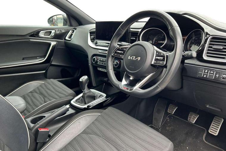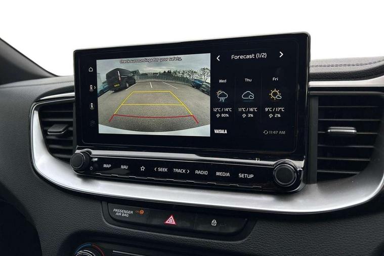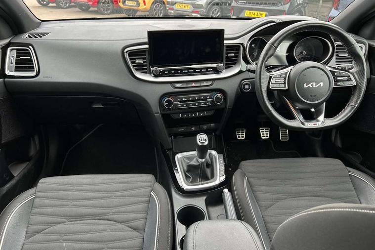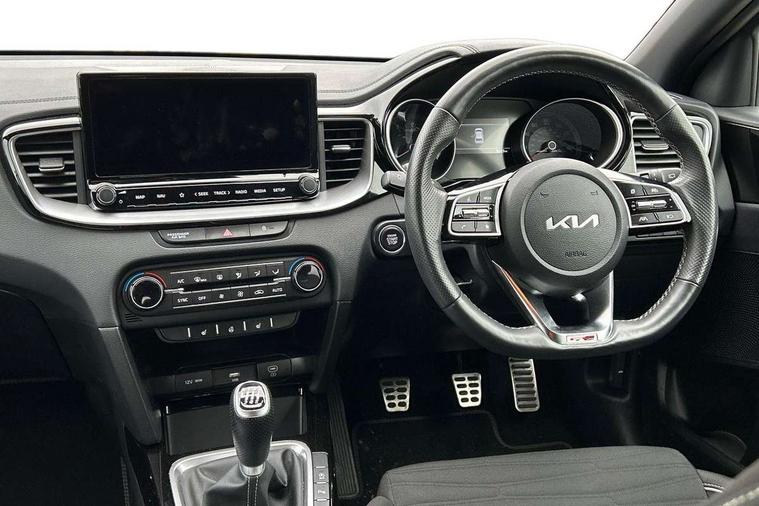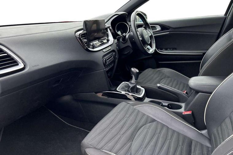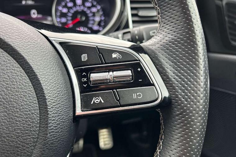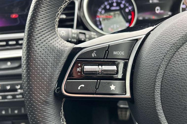 10.25" touchscreen satellite navigation, 4.2" supervision colour cluster display, Apple car play/Android Auto with voice control, Bluetooth with Voice Recognition & Music Streaming, Cruise control + speed limiter, Driver Attention Warning (DAW), Emergency call service, Emergency stop signalling system, Forward Collision-Avoidance Assist (FCA) - City/Pedestrian/Cyclist, Kia connect UVO, Lane Following Assist (LFA), Lane keep assist, Manual speed limit assist, Motor driven power steering, Rear parking sensor, Reversing camera system with dynamic guidelines (Integrated into centre fascia screen), Trip computer, Intelligent Stop and Go, 6 speaker audio system, DAB Radio with MP3, Illuminated USB ports, Steering wheel mounted controls, USB Fast Charger in Front Centre Console, USB port for connection of a media device, All-round Electric Windows with Front Auto Up & Down Function, Auto dimming rear view mirror, Automatic defog system, Automatic headlights control, Body colour bumpers, Body colour exterior door handles, Body coloured and dark chrome rear skid plate, Body coloured side sill mouldings, Dark chrome window surround, Electric adjustable/heated/folding door mirrors with LED Indicators, Heated rear window with timer, High beam assist, High gloss black and dark chrome radiator grille, High gloss black door mirrors, High Gloss Black rear spoiler, LED daytime running lights, LED front fog lights, LED Headlights, LED High-mounted Brake Light, LED honeycomb rear light, LED rear combination lights, LED rear fog light, Privacy glass (rear side windows and tailgate), Rain sensing front wipers, Rear side wing doors, Rear wash/wipe, Satin chrome dual exhaust trim, Tinted glass, Wide view drivers door mirror, Windscreen Washer Level Warning, 1 x Front 12V socket, 12V power socket in luggage compartment, 3 seat bench in 2nd row, 3 x passenger assist grips, 60/40 split folding rear seat, All-round height adjustable headrests, Aluminium pedals, Black headlining, Centre console storage box/armrest, Cloth/faux leather upholstery, Cupholders in centre console, Cupholders in rear armrest, Dash illumination dimmer switch, Door courtesy lamps, Driver & Front Passenger Sunvisors with Vanity Mirror Illumination & Ticket Holder, Driver + front passenger electric lumbar support, Driver's seat height adjuster, Dual Height Luggage Area Floor, Dual zone automatic air conditioning, Faux leather door centre trim, Front and rear door storage, Front cabin map light with sunglasses case, Front Passenger Seat Height Adjuster, Front seat back pockets, Gear shift indicator, Heated front seats, Heated steering wheel, Interior door lock/unlock function, ISOFIX Child seat top tethers and anchor fixings, Leather D-Cut steering wheel, Leather handbrake, Luggage area light, Luggage area parcel shelf, Luggage hooks, Rear centre armrest, Rear coat hooks, Satin chrome interior door handles, Single front passenger seat, Tilt/telescopic adjustable steering wheel, All round 3-point seatbelts, Anti-lock braking system (ABS), Brake assist system, Dual front side airbags, Dual horn, EBD - Electronic brakeforce distribution, Electronic parking brake, Electronic stability control (ESC) and vehicle stability management (VSM), Front passenger airbag cut-off switch, Height adjustable front seatbelts, Hill start assist control (HAC), Impact sensing auto door unlocking, Rear door child safety locks, Seatbelt reminder warning, Twin curtain airbags, Twin front airbags, Tyre pressure monitoring system, Alarm system, Engine Immobiliser & Deadlocks, Locking wheel nuts, Remote central door locking with fold away key, Speed sensitive auto door locking, Black high gloss front console garnish & door trim, Satin Chrome Fascia Trim, 17" GT-Line alloy wheels, Tyre mobility kit,