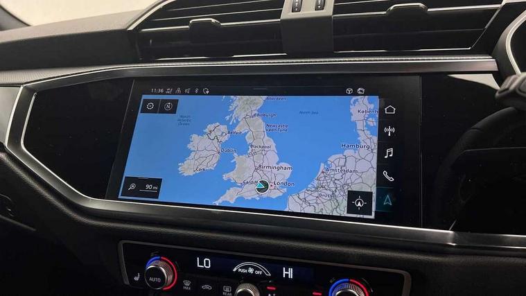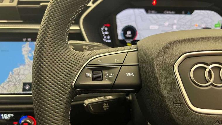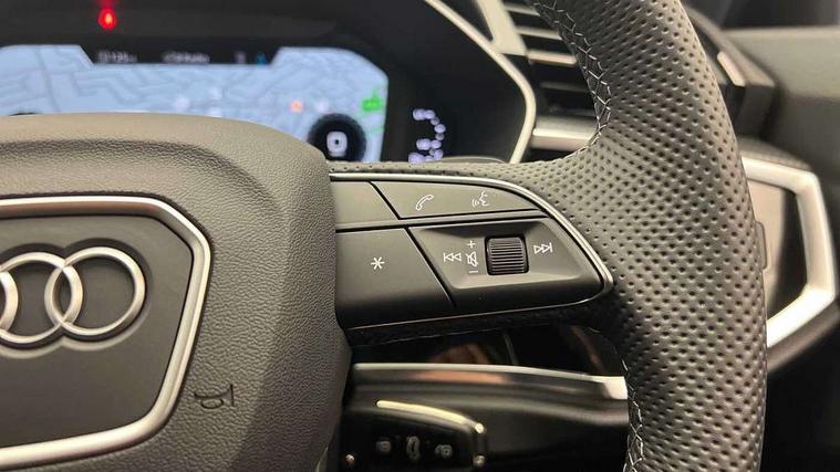 Amazon alexa Integration, Audi connect safety and service, Audi drive select, Audi lane departure warning, Audi Virtual Cockpit - 10.25" display, Bluetooth interface, Camera based traffic sign recognition, Distraction and Fatigue warning, Legal emergency call, MMI Navigation Plus with high resolution 10.1 inch touchscreen colour display, Power operated tailgate, Progressive steering, Service interval indicator, Smartphone interface includes wireless Apple carplay/Android Auto, Start stop system with recuperation, Voice control system with natural language interaction, Diesel particulate filter, Sports suspension, 2 USB-C ports with charge and data functions, 6 passive loudspeakers, DAB digital radio module, Acoustic windscreen, Anthracite black radiator grille, Audi Beam uses LEDs to project the Audi logo onto the ground as you exit your Q3, Auto dimming door mirrors, Auto dimming frameless rear view mirror, Black roof rails, Electrically folding, adjustable and heated door mirrors with integrated LED side indicators and kerb view function for passenger side, Front and rear electric windows, Front fog lights, Grille vertical bars in aluminium silver/Matt, High gloss black finish B and C pillars, LED Dynamic rear indicators, LED headlights with LED daytime running lights, LED rear lights, LED third brake light, Privacy glass dark tinted rear and rear-side windows (from B-pillar backwards), Rain and light sensors, Rear diffuser grille in grained matt black, Rear diffuser strip in matt anthracite black, Rear side wing doors, Rear wiper, S line bumpers in contrasting Manhattan grey, Variable front intermittent wipers, 12V socket in rear centre console, 3 seat bench in 2nd row, 40:20:40 folding with manual adjustment for 60:40 forwards/backwards position and backrest angle, Adjustable rear seat bench/backrest with centre armrest and cupholder, Black carpet mats, Black cloth headlining, Dual zone electronic climate control, Electric lumbar support, Front and rear black floor mats with contrast stitching in rock grey, Front and rear headrests, Front centre armrest, Height and reach adjustable steering wheel, Illuminated door sill trims with S logo, ISOFIX child seat mounting for front passenger with airbag deactivation and outer rear seat including top tether attachment point for outer rear seats, Luggage compartment sill protection in stainless steel, Manual front seats with height adjustment, Perforated leather gearknob, Single front passenger seat, Stainless steel pedals, Twin leather upholstery with front sport seats + S embossing, Black styling pack - Q3, Non smoking pack - Q3, 3x3 point rear seatbelts, 6 airbags - Driver, front passenger, curtain and side windows, Audi pre-sense front with pedestrain and cyclist recognition, Electrically operated child locks on rear doors, Electromechanical parking brake, Electronic stabilisation control including ABS, ASR and EDL, Front seatbelt reminder, Hill descent control, Hill hold assist, Pre sense basic, Seatbelt monitoring, Tyre pressure warning, Warning triangle and first aid kit, Anti theft wheel bolts, Immobiliser, Remote central locking, Thatcham approved category 1 anti theft alarm, Aluminium look interior elements, Detail dashboard around MMI touch colour display in glass look, black with surround in aluminium look, Leatherette door armrest, Piano black inlay,