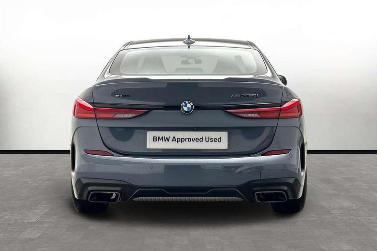 Active guard plus, Attentiveness assist, Auto start-stop, Bluetooth hands free facility with USB audio interface + WiFi interface for wireless connection of mobile terminal devices + audio streaming, BMW Intelligent Personal Assistant, BMW Live Cockpit Professional with 10.25" high resolution instrument and control display, BMW Online services, BMW operating system with 7.0 mid interface, BMW Teleservices, Check Control warning system for monitoring of lights and door/luggage compartment open warning, Electro hydraulically controlled multi plate clutch in rear axle, Energy efficient operating strategy, iDrive controller with touch function and 7 short cut favourite buttons on centre console, Integrated navigation data with map data via USB +features such as 3D landmarks and micro city models, Integrated owners handbook, Intelligent voice assistant, M Sport steering with M235i xDrive M performance specific settings, On board computer - average speed+fuel consumption, service interval, clock/date, odometer/trip meter, outside temperature display and ice warning, Optimum shift indicator, Personal Profile, Pull away assistant, Speed limiting function, 2 balance shafts, 8 speed sport automatic transmission with electronic selector lever, auto P function, coasting idle, race track, sport, gearchange display manual mode, Aluminium lightweight construction, BMW TwinPower twin-scroll Turbo four-cylinder petrol engine, Double VANOS, Drive performance control with ECO PRO comfort + sport mode, Electronic differential lock, Engine cover with M performance designation, High precision injection, Larger fuel tank capacity (50 litres), Launch control, M235i specific heavily de-throttled engine intake air guide, M235i specific high-performance cooling package, M235i specific larger turbocharger with integrated divert-air valve, Performance Control, Petrol Particulate Filter, Power transmission of front wheel drive on the rear axle via angle transmission on the front axle differential and two part cardan shaft, VALVETRONIC engine management, Variable, stepless and infinitely adjustable distribution of drive torque between the front and rear axles, xDrive intelligent all wheel drive with M235i specific reinforced components, 2x USB Type C ports (for charging and data transfer), 4G LTE Connectivity with hard wied 4G network sim card, DAB digital radio, MP3 players and RDS double tuner, Automatically dimming rear view mirror, Body colour door handles, Direction indicator side lights integrated exterior mirrors, Electric windows - front and rear, with open/close fingertip control and trap release, Exterior mirrors - electrically folding with anti-dazzle, Fading support, Follow me home headlights, Front and rear bumper system with replaceable deformation elements, Front door sill finishers in black plastic with M235i designation, Heated, electrically adjustable exterior mirror aspheric on driver side, convex on passenger side, High gloss black B pillar finish, High gloss shadow line exterior trim, High level third brake light, LED daytime running lights, LED front fog lights, Lightweight engineering, M Performance exhaust system with valve control and minimised exhaust back pressure, M rear spoiler, Model designation on right side of tailgate includes xDrive designation onleft handside for M235i xDrive, Preparation for high beam assistant, Rain sensor with automatic headlight activation, Rear fog lights, Reinforced crank drive, new pistons and adapted con rods, Reversing light in rear light cluster, Welcome lighting, 12V power socket in centre console, 2 cupholders in front centre console, 3 rear seat head restraints, 3 spoke M sports design leather steering wheel finished in nappa leather with specific M badge, Additional under floor storage in luggage compartment, Anthracite finished floor mats with contrasting surround, Anthracite headlining, Automatic two zone climate control air conditioning, Child seat ISOFIX attachment for two outer rear seats and front passenger seat with anchorage points, Conditioned based service, Driver and front passenger seat heating, Front and rear door pockets including bottle trays, Front and rear side armrests integrated into door trim, Front armrest foldable with integrated storage compartment, Front centre interior light over interior mirror and rear centre automatic interior light when door is opened/ignition switched off or via remote key, Front head restraints, Front M Sport seats, Glove compartment, Glovebox with light, Luggage compartment lighting, Manually adjustment steering wheel column, Multi-function controls for steering wheel, Shift-by-wire selector shift, Steering wheel paddles, Sun visors with vanity mirrors and insert tab, Through loading system with 40/20/40 split folding rear seat, Two lashing eyes, Additional interior lighting pack - 2 Series Gran Coupe, Connected pack professional - 2 Series Gran Coupe, Extended storage pack - 2 Series Gran Coupe, M Sport exterior styling aerodynamics pack - 2 Series Gran Coupe 235i, 2 tone horn, Airbag - Front driver and passenger, front and rear head, front side, curtain head protection, manual deactivation of front passenger airbag possible, Anti lock braking system (ABS) with cornering brake control, BMW emergency call, Brake drying, Braking readiness, Crash sensor activating of airbags, Unlocking doors, hazard warning lights, fuel cut off, interior lighting+activation of safety battery terminal clamp, Dynamic stability control + (DSC+), Dynamic Traction Control - DTC, Electrically operated hand brake, Integrated torsen mechanical limited slip differential on front axle, M Sport braking system in blue high gloss + blue painted brake calipers with M designation, M sport seatbelt, Rear brake discs, Rear child proof door locks, Seat belt security check for driver and front passenger, Seatbelt warning, Side impact protection, Three point seat belts on all seats including front belt stopper, pyrotechnic belt tensioners and 