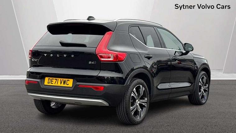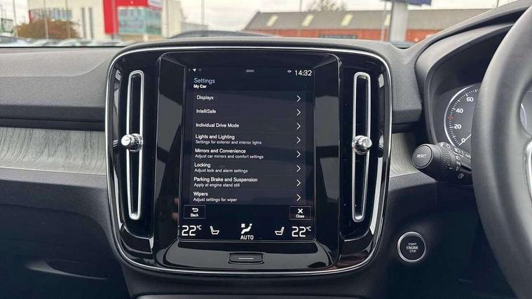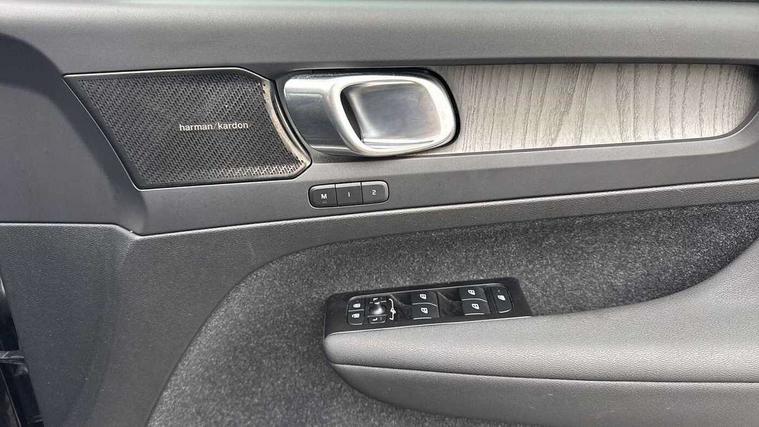 12.3" Active TFT crystal driver's instrument display, 9" centre console portrait touch screen, Adjustable steering wheel force, Bluetooth hands free telephone kit, Drive mode selector, Lane keep assist with driver alert control, Oncoming Lane Mitigation, Power operated tailgate, Sensus navigation with European mapping and traffic information, Speed limiter, Speed sensitive steering, Voice activated control for key functions, Volvo on call, Dynamic chassis, DAB Digital radio, Steering wheel mounted remote controls, Adaptive brake lights with high level LED brake lights, Auto dimming interior mirror, Automatic headlamp levelling, Chrome window surround, Colour coordinated auto folding and heated power door mirrors, Front aluminium tread plates, Front and rear electric windows, High gloss black front grille with chrome inserts, High gloss black sensus surround deco, High Gloss silver front and rear skid plate, Home safe and approach lighting, Integrated roof rails in silver, LED Headlights + Active high beam incorporating daytime running lights, Rain sensor with automatic windscreen wiper activation, Rear side wing doors, Rear wiper, Roof antenna, Roof spoiler, Visible VIN plate, 12V socket in front tunnel console and cargo compartment, 2 zone electronic climate control and rear air vent, 3 seat bench in 2nd row, 3 Spoke tailored steering wheel with chrome trim, 60/40 versatile split folding rear seat, A-pillar parking ticket holder, Bright metal luggage threshold, Centre console cupholders and storage, Floor mats, Front footwell illumination, Front headrests, Front reading light and theatre lighting, Front tunnel net pocket and integrated waste bin, Glovebox bag hook, Height/reach adjustable steering column, Height/tilt adjustable driver's seat, High gloss centre tunnel deco, Illuminated glovebox, Illuminated luggage compartment, Illuminated vanity mirrors, Isofix attachments on rear seats, Leather faced upholstery, Load protection net, Multi directional lumbar support, Orrefors Crystal Gear Lever Knob, Power driver seat with memory + exterior mirrors memory, Rear armrest / integral cup holders / storage tray, Rear coat hook, Single front passenger seat, Underfloor cargo storage, Vanity mirror with ticket holder, Park assist pack - XC40, 3x3 point rear seatbelts, City safety includes pedestrian, cyclist and large animal detection and front collision warning with full auto brake, Drivers knee airbag, Dual stage driver/passenger airbags, Electronic parking brake with auto hold, First aid kit, Front and outer rear seatbelt reminder and pretensioners, Front seats SIPS airbags, Hill descent control, Hill start assist, Inflatable curtain, Passenger airbag cut-off device, Road sign information display, Run off Road Mitigation, Run off Road Protection, SIPS (Side Impact Protection System), Slippery road and hazard light alert, Stability and Traction Control with Spin control, Engine Drag Control and Corner Traction Control, Tyre pressure monitoring system, Vehicle deceleration control with Anti-lock Brake System, Electronic Brake Distribution and Emergency Brake Assist, Warning triangle, WHIPS whiplash protection system - front, Anti-theft alarm including immobiliser/volume sensor + level sensor, Care key with user defined top speed, Key integrated remote control central locking + fuel flap with deadlocking system and auto open/close power windows, Locking wheel nuts, Private locking for tailgate, Driftwood inlays,