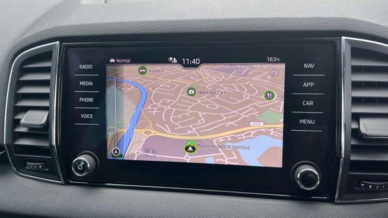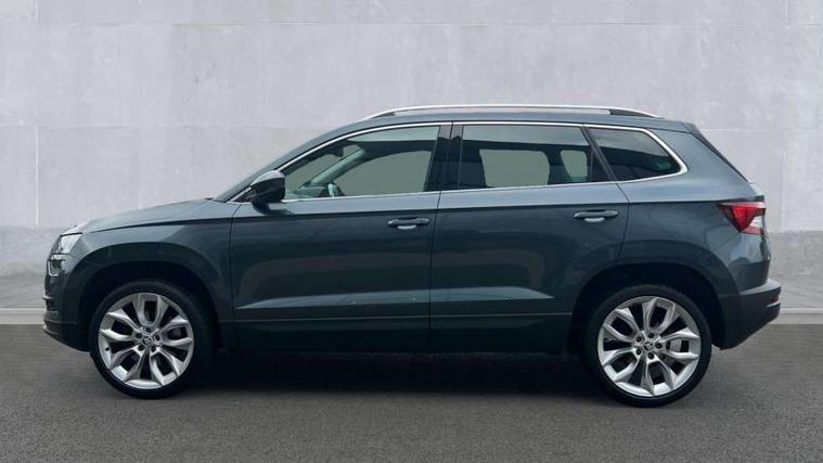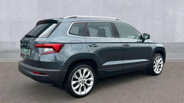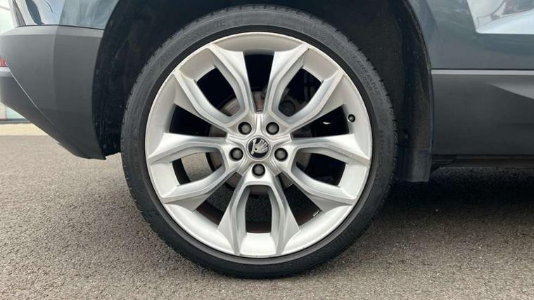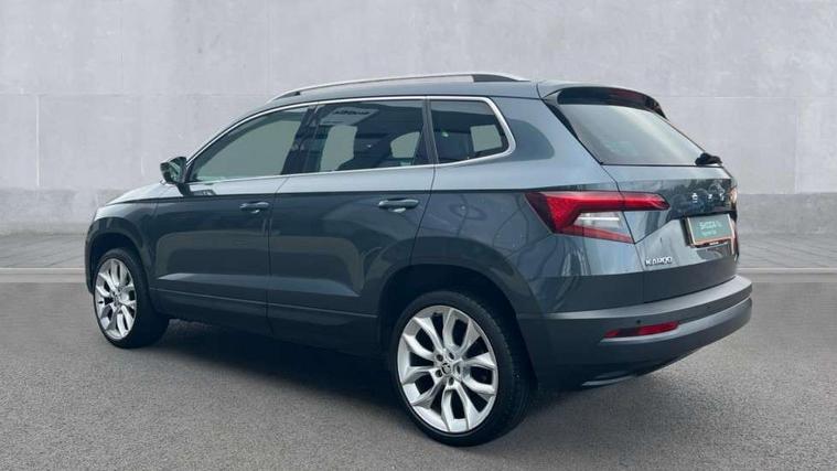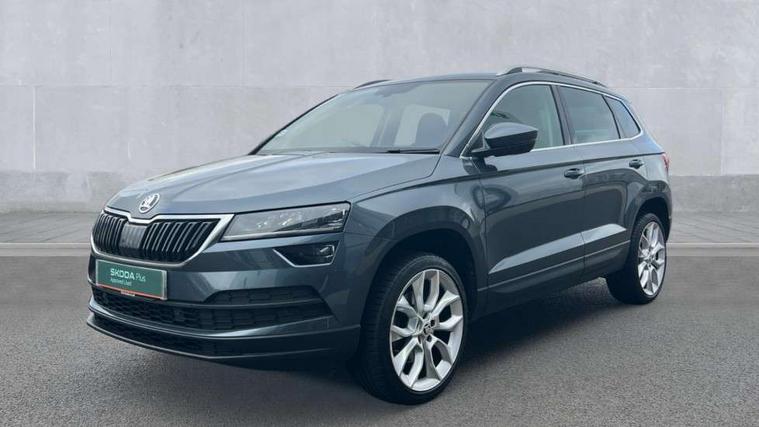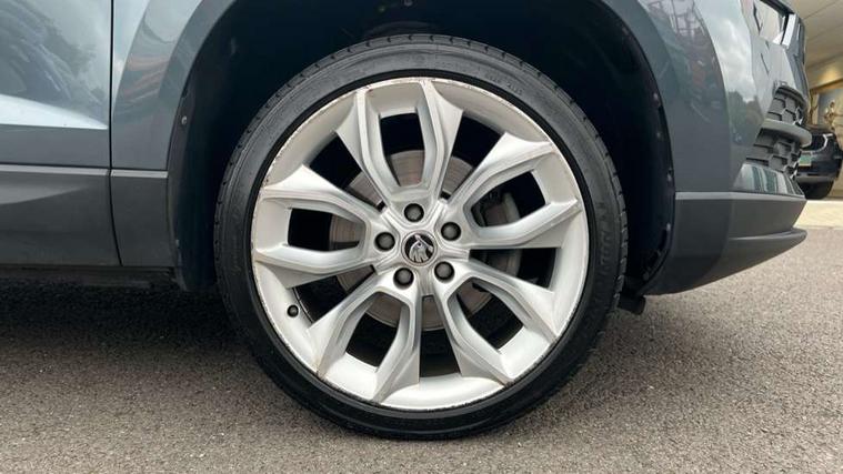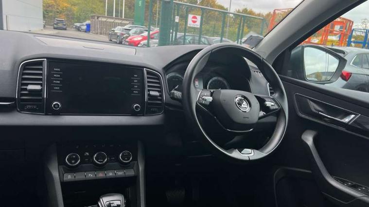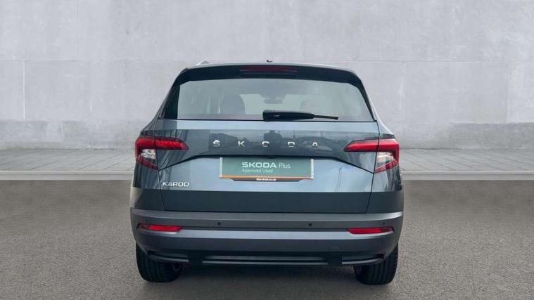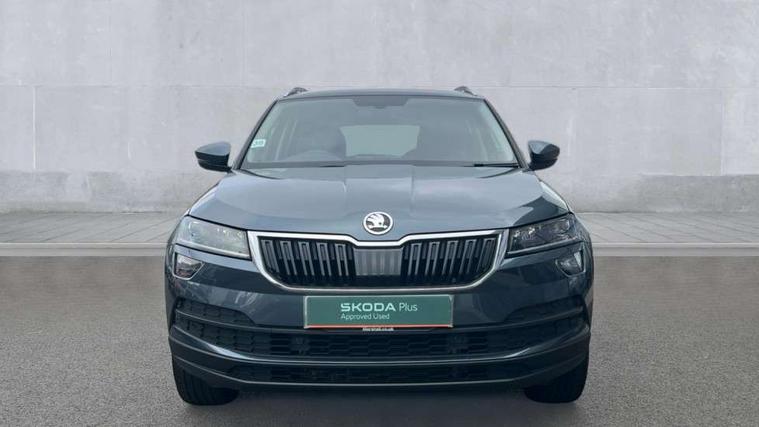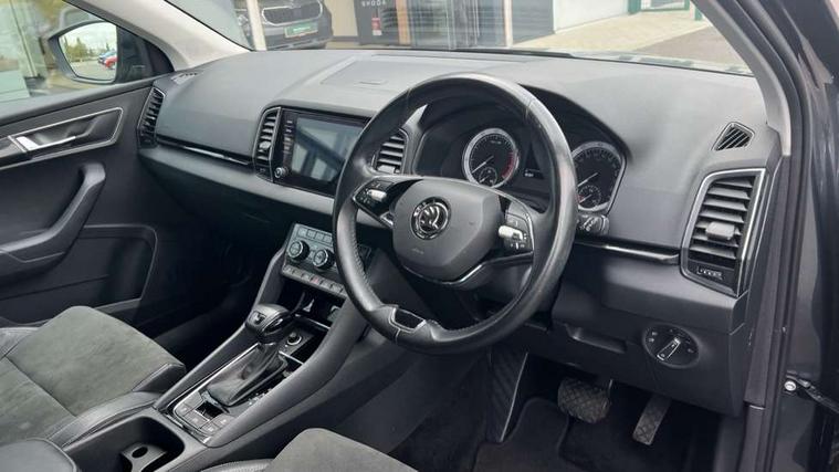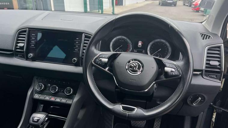 Care connect, Drive mode selector, Driver alert system, Driver fatigue sensor, Driver profile selection, Multifunction colour trip computer, Outside temperature gauge, Rear view camera, Service interval indicator, SmartLink + wireless for Apple and wired for Android, Start/stop system with regenerative braking, USB C Port x 2 in front centre console, DAB radio with Bluetooth, SD card slot, USB connection, Acoustic glass, Aero front windscreen wipers with intermittent function, Automatic headlight control system, Black electric window control buttons, Body colour door mirrors and handles, Body coloured bumpers, Electric front and rear windows with child proof lock, Full LED headlights + adaptive front light system + LED daytime running lights and front cornering fog lights, Headlight washers, Heated rear windscreen, LED rear lights with high functionality, Light assistant (coming/leaving home/tunnel light), Privacy glass, Safety reflectors on front doors, Third brake light, 1.5 litre bottle holders in driver and front passenger door panels, 12V socket in boot, 12v socket in front centre armrest with storage compartment and rear air vents, 2 Folding hooks and nets in boot, 2 Front readings lights for driver and passenger, 3 rear height adjustable headrests, 4 foldable roof handles with rear coat hooks, 4 lashing points on luggage floor, Backrest release, Cargo elements in boot, Chrome inner door handles, Folding tables on the front seat backrests, Front head restraints, Front seat and rear pockets, Height adjustable front three point seats belts with tensioners, Height adjustable passenger seat, Height/reach adjust steering wheel, Ice scraper, Illuminated and cooled glovebox, Illuminated luggage compartment, Isofix child seat preparation outer rear, Net programme in boot, Pen holder, Pollen filter, Rear boot cover, Rear reading lights, Rear seats fixed folding and divided 60:40, Retractable parcel shelf attachable to tailgate, Safety vest holder, Storage box in upper central dashboard closed, Storage compartment below the passenger seat, Sunvisors with illuminated vanity mirrors, Textile floor mats, Umbrella under passenger seat, VarioFlex seats with retractable parcel shelf, Chrome roof rails + chrome pack - Karoq, Airbags - Front side, head, knee and curtain, Automatic door unlocking in case of crash, Automatic fuel cut off in case of crash, Driver airbag, Electronic parking brake with auto hold function, Emergency rear braking signal, ESC including ABS, MSR, ASR, EDS, HBA, DSR, RBS, MKB and traction control, Front assist radar scanning of the space in front of the car with automatic braking, Hill hold control, Passenger airbag with switch-off function, Pedestrian monitor, Seatbelt reminder signalisation and pretensioner for all seats, Three point seatbelts rear, Two tone horn, Tyre pressure display, Tyre pressure monitor, Alarm with interior monitoring, back up horn and tilt sensor with safe function, Electronic engine immobiliser, Keyless entry and keyless start with safe system, Remote central locking with 2 remote folding keys, Chrome framed air vents, 19" Crater alloy wheels with anti theft wheel bolts, Storage on wheel cover,