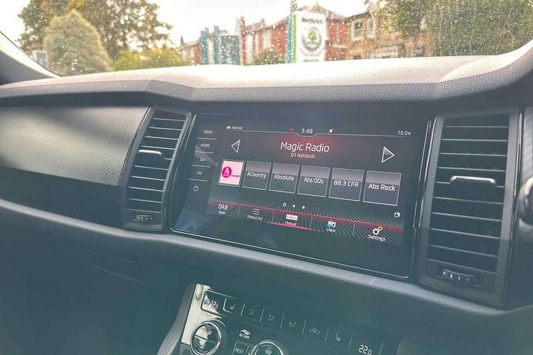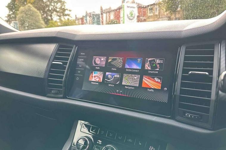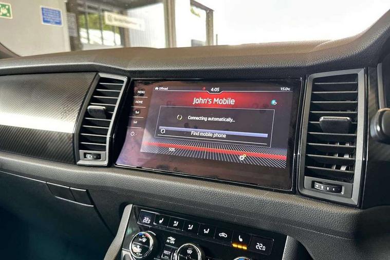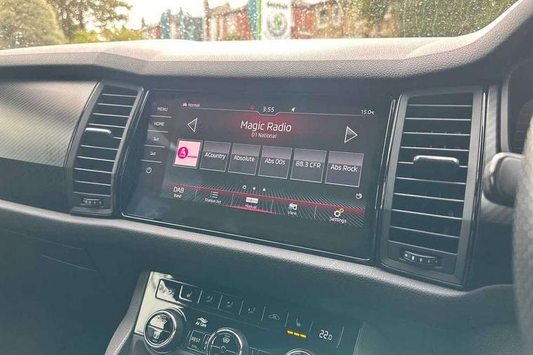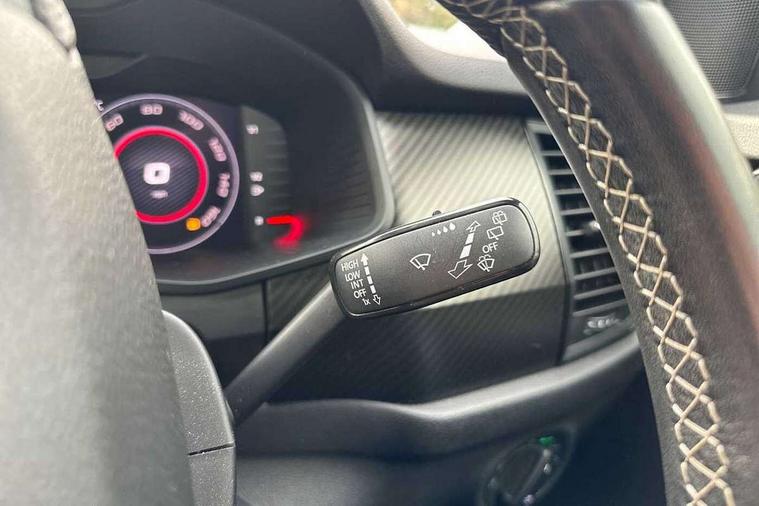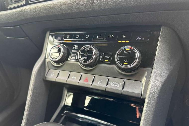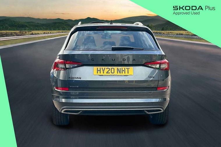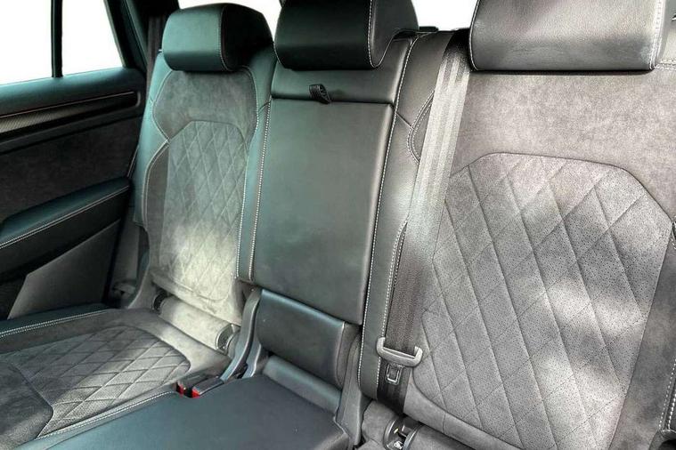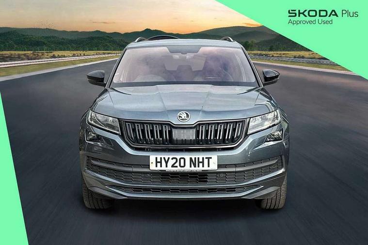 Bluetooth system, Colour multifunction trip computer, Columbus satellite navigation with 9.2" touch screen and integrated Wi-Fi + WLAN, Digital voice enhancement, ECO Stop/start function, Exterior temperature indicator, Map care, Progressive power assisted steering, SmartLink plus, Speed limiter, Sports dials, Tailgate unlocking from outside, Bolero Radio, DAB Digital radio, DVD System, USB and SD card connectivity, Aero front windscreen wipers with intermittent function, Aero rear window wiper, Auto dimming rear view mirror, Automatic activation of hazard warning lights, Black electric window control buttons, Black roof rails and door mirrors with radiator grille and window surrounds, Black wheel arch surrounds, Body colour bumpers, Body colour door handles, Chrome exhaust tailpipe, Electric front and rear windows, Electrically adjustable/heated/foldable and auto dimming door mirrors with memory function, Front door steps with SportLine logo, Full LED Headlights with adaptive front light system and LED daytime running lights, Headlight washers, Heated rear window, LED front fog lights with static cornering light function, LED rear fog light, LED third brake light in rear spoiler, Light assistant (coming home/tunnel light), Rain and light sensors, Rear diffuser, Rear spoiler, Safety reflectors on front and rear doors, Sportline badge on front fender, Sports front and rear bumpers, Sunset privacy glass, Tailgate lettering in Black, Without engine designation, 12V socket in boot, 2 rails with 2 hooks including 4 hooks for net programme, 4 foldable roof handles with rear coat hooks, 4 lashing points on luggage floor, 60:40 foldable rear seat with sliding adjustment and backrest angle adjustment, Alcantara door panels, Alcantara upholstery with Sports seats with silver stitching, Aluminium pedals, Black roof headlining, Bottle holders in door panel in the 1.5 litre front and 1 litre rear, Cargo storage compartments, Centre console with open storage box, cup holder and 12V socket, Chrome headlight control button, Chrome interior door handles, Coat hooks on B pillar, Covered storage compartment on driver side, Front and rear door armrest with black adductor trim, Front centre armrest with storage compartment, Front courtesy lights, Gear shift lever with chrome frame and black gloss insert, Height adjustable front headrests, Height adjustable rear headrests, Illuminated and cooled glovebox, Illuminated luggage compartment, Isofix system on outer rear seats, Manually adjustable steering column, Net programme in boot (1x horizontal Net, 2x vertical Nets), Overhead glasses storage compartment, Pollen filter, Rear centre armrest with cupholders, Roll up luggage compartment cover with intermediate position, Small Bags on the inner sides of the front backrests, Small pockets on the inner side of the front backrests, Storage compartment in lower middle Instrument panel, illuminated with closing, Three rear height adjustable headrests, Ticket holder on A Pillar, Umbrella in door panel, LED Interior Light pack - Kodiaq Scout/Sport Line/VRS/Laurin + Klement, Auto door release and activation of warning lights in the event of an accident, Driver and passenger airbags, Electronic parking brake with hill hold control, Emergency rear braking signal, ESC (incl. ABS+MSR+ASR+EDS+HBA+DSR+RBS+MKB), Front and rear three point safety belt on all seats, Front assist includes AEB city/urban, Front side airbags, Fuel cut off safety device, Head and knee airbags, Passenger airbag deactivate switch, Rear disc brakes, Safety vest holder in door, Seat belt reminder for all seats, Two tone horn, Tyre pressure monitor, Warning lights in front doors, Alarm with interior monitoring and tilt sensor with safe function, Immobiliser, Keyless entry and start system (KESSY), Remote central locking, Carbon finish dashboard and door inserts, Chrome air vent surrounds, Sportline plaque on the dashboard, 20" Vega Anthracite alloy wheels with anti-theft wheel bolts,