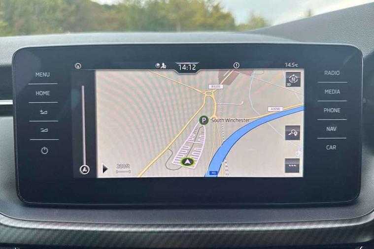 Amundsen satellite navigation with 9.2" glass colour touchscreen with virtual cockpit, Bluetooth system, Easy light assist, Front assist system, Lane assist, Monte carlo instrument cluster, Multi function trip computer, PAS, Rain and light assist with auto dimming rear view mirror, Speed limiter, 2 USB - C ports, 8 loudspeakers, Bolero radio with 8" touchscreen display, DAB Digital radio, Black door mirrors, Black radiator grille, Black rear diffuser, Black sill cover, Body colour door handles, Boot lettering in black, Electric folding door mirrors, Electrically adjustable and heated door mirrors, Front and rear electric windows, Front fog lights, Front sport bumper, LED daytime running lights, LED rear lights with dynamic indicators, Monte carlo plaque, Privacy glass, Skoda across tailgate in black, Tinted windows, 12V Accessory socket in centre console, Aluminium pedals, Black roof lining, Chrome inner door handles, Chrome on gear and handbrake lever, Cloth upholstery, Decor strip on dashboard and door panel, Door sills with lettering, Front gesture control, Front head restraints, Front sport seats, Glasses storage in roof liner, Height adjustable passenger seat, ISOFIX for rear passenger seat, Leather gearknob and handbrake lever, Leather multifunction sport steering wheel, Manual lumbar support for front seats, Reading lights for driver and front passenger, Sun visor with make up mirror for front passenger, Textile floor mats, Third rear headrest, Umbrella, Exterior design pack - Scala, 3x3 point rear seatbelts, Curtain airbags, Emergency call and proactive services, Front head and side airbags, Hill hold control, Passenger airbag switch off function, Seat belt reminder for all seats, Two tone horn, Alarm, Anti-theft wheel bolts, SAFE function for remote central locking, Chrome air vent surrounds, 18" Vega alloy wheels in black, Temporary space saver wheel,