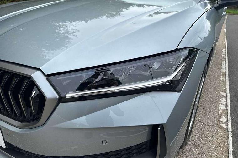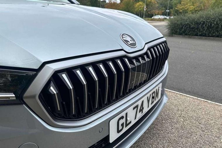 13" touchscreen display with satellite navigation, 4x USB-C ports (2x in front centre console and 2x in rear) (45W), Adaptive cruise control with speed assist, lane assist plus and traffic tram assist, Blind spot detection with door exit warning, Bluetooth system, CareConnect and Emergency Call, ChatGPT functionality, Driver fatigue sensor, Front assist with extended predictive pedestrian protection, Front cross traffic assist, PAS, Quick start all heating software functionality, Rear view camera with washer, Stop/start engine system, Traffic sign recognition, Turn assist with evasive assistance, Virtual Cockpit - 10.25" digital display, Voice control system, Wireless charging for one smartphone (15W) with cooling function, Wireless smartlink apple carplay, SmartLink+ android auto, 8 Speakers, DAB Digital radio, Display cleaner, FM radio connection, Web radio connection, Acoustic side windows and interior noise suppression, Backdrop lighting, Body colour door handles, Body coloured door mirrors, Chrome window surround, Electrically adjustable, heated, folding and driver side auto-dimming door mirrors with integrated indicators and logo projection, Frameless auto-dimming rear view mirror with USB-C, Front windscreen with heat-insulating glass, Ice scraper in fuel tank cap, LED 3rd brake light, Light assist with High beam control, Light assistant (coming/leaving home/tunnel light), Privacy glass, Rear fog light (x1), Rear side wing doors, Tow bar preparation, Unique dark chrome design logo on alloy wheels, Unique dark chrome grille surround with dark chrome rib elements, Windscreen wipers with rain sensor, 12V socket 1x centre console 1x boot, 12V socket and 2x cargo elements in boot, 2 spoke multifunction steering wheel with DSG paddles, 3 seat bench in 2nd row, 60:40 Split folding rear seats, Bottle holders in the front doors 1.5 litre bottle and rear 1.5 litre bottle, Cup holder in front with easy open mat, Front and rear footwell illumination, Front armrest with storage box, Front comfort seats, Heated front seats, Height adjustable driver and front passenger seats with 2-way electric tilt, 4-way pneumatic lumbar support, and extendable thigh support, Height adjustable front and rear head restraints, Height adjustable front passenger seat, Illuminated glovebox, Interior lights with control switches, Isofix child seat fittings in outer rear and front passenger seats, LED front and rear reading lights, Massage function for front seats, Single front passenger seat, Skoda lettering on steering wheel, Storage pockets on back of front seats, Sun visors with illuminated vanity mirrors, Ticket holder on A Pillar, Tri zone climate control, Umbrella in driver's door, 3 rear seatbelts, 8 Airbags - Front driver and passenger, front side driver and passenger, centre, curtain front and rear, drivers knee, Crew protect assist, Driver and passenger seatbelts with warning light, Electronic parking brake, ESC including ABS, EBV, MSR, ASR, EDS, HBA, DSR, RBS, CBC, multi-collision brake (MKB) and Auto hold, Hill hold assist, Power operated child lock in rear doors, Alarm with interior monitoring tilt sensor and back up horn, Backrest remote release from trunk, Electronic engine immobiliser, Keyless start/stop, Remote central locking with SAFE system, Third key, Decorative front door sills,