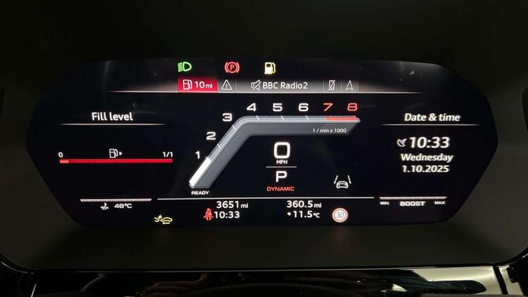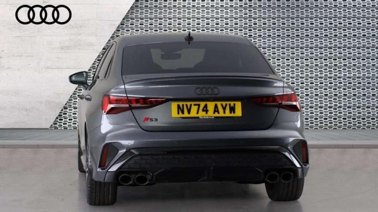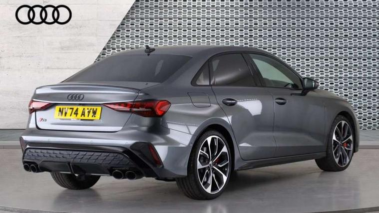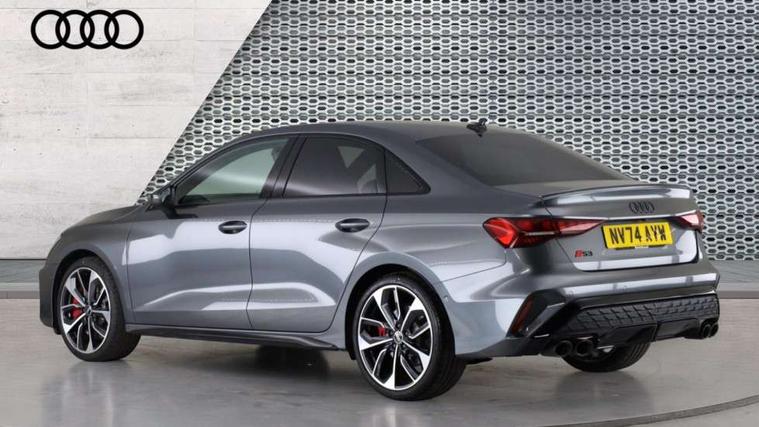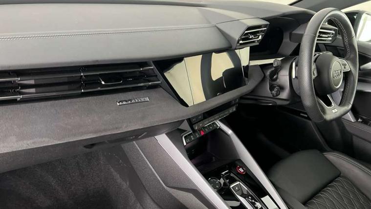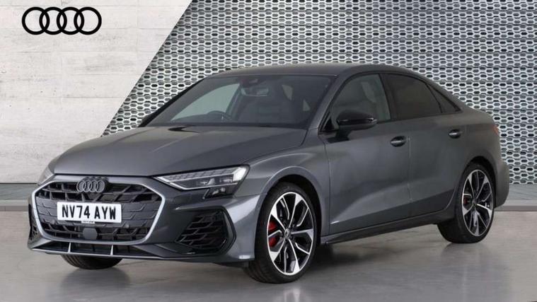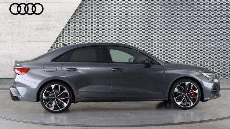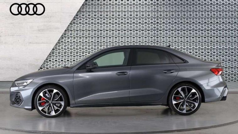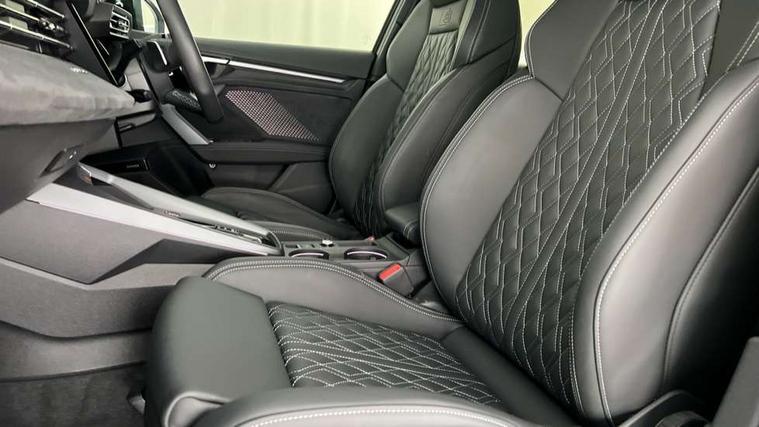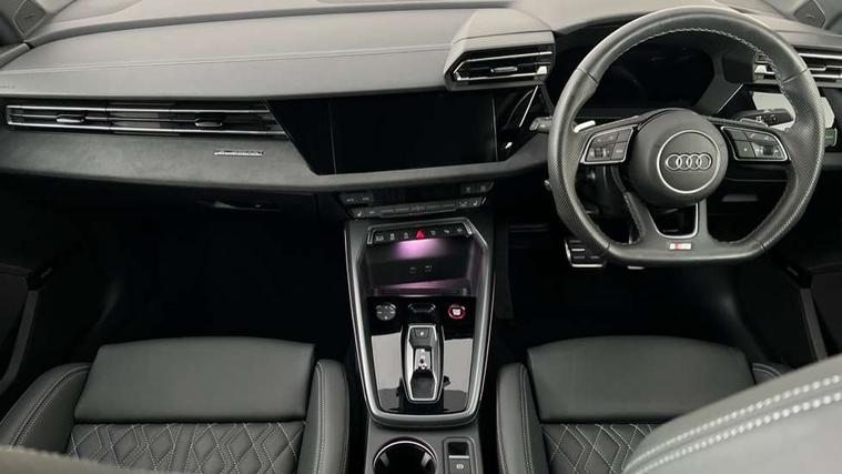 Adjustable speed limiter, Audi drive select, Audi smartphone interface with app store includes wireless Apple carplay, Android auto and Amazon alexa integration, Audi virtual cockpit plus - 12.3" full HD resolution dynamic digital instrument cluster, Automatic start/stop system with recuperation, Bluetooth interface, Camera based traffic sign recognition, Collision avoidance assistant, Distraction and Fatigue warning, e-Call (emergency call), Electromechanical power speed sensitive steering, Lane departure warning system, MMI Navigation Plus with high resolution 10.1" colour touch screen display, Park Assist with parking system Plus, Progressive steering, Service indicator, Trip computer, Voice control system with natural language interaction, S sport suspension with spring damper adjustment and lowering by 15mm, Audi Phonebox light with wireless charging, DAB Digital radio, USB ports with charging function in the rear, Anthracite grey Audi rings (front and rear), Audi Beam uses LEDs to project the rhombus S logo onto the ground as you exit your S3, Auto dimming frameless rear view mirror, Black accents front and rear bumpers including air inlets, Black accents in front grille and frame, Black accents window trims strips, Electrically adjustable/heated/folding/auto dimming door mirrors with integrated LED indications + kerb view function for passenger side, Exterior model badging, Front electric windows, Headlight washers, Heat insulating glass windscreen, Illuminated door sills with aluminium inserts at the front with S logo, LED 3rd brake light, LED daytime running lights, LED headlights with LED rear lights and dynamic rear indicators, Light and rain sensors, Privacy glass - dark tinted rear window, rear door and side windows, Rear boot, Rear electric windows, Rear side wing doors, S grille, S3 front bumper with S specific air intake grilles, 12V socket and storage compartment in front centre console, 3 seat bench in 2nd row, 3 spoke flat bottomed leather multifunction sport steering wheel with gear shift paddles, 3-zone deluxe automatic air conditioning, 4 way electrically adjustable lumbar support for driver and front passenger, 40/20/40 split folding rear seat bench, Black cloth headlining, Fine Nappa leather upholstery with front sports seats S embossed logo, Front and rear centre armrest in artificial leather, Front and rear headrests, Front/rear floor mats, Heated front seats, Manual boot compartment lid, Manually adjustable front seats, Rear cup holders, S badging on the steering wheel, Seat side bolsters, Single front passenger seat, Stainless steel pedals and front footrest in black, Aluminium interior elements pack - A3, Extended ambient lighting package Pro - S3 Black edition, Storage package - A3 Saloon, Technology package - A3, 3x3 point rear seat belts, Driver and front passenger airbag with passenger airbag deactivation, Electronic Stabilisation Control (ESC) including ABS, ASR and EDL, First aid kit with warning triangle and 2 safety vests, Front side airbags with head airbags and interaction airbag, Hill hold assist, Pre-sense front with pedestrian and cyclist detection, Seatbelt monitoring, Tyre pressure loss indicator, Anti theft alarm, Anti-theft wheel bolts, Electronically operated child locks, Immobiliser, Remote central locking with safelock, Inlays in black dynamica microfibre, Tyre repair kit,