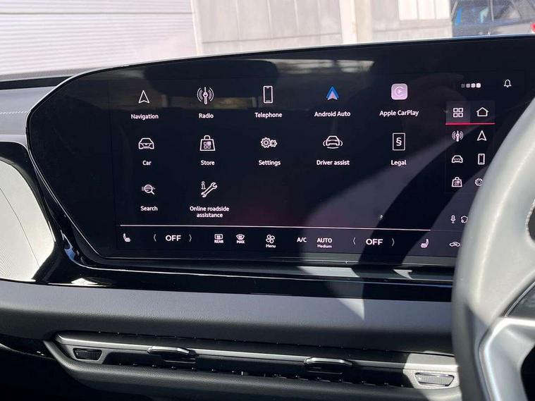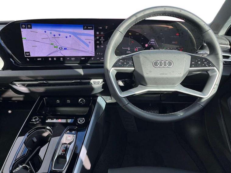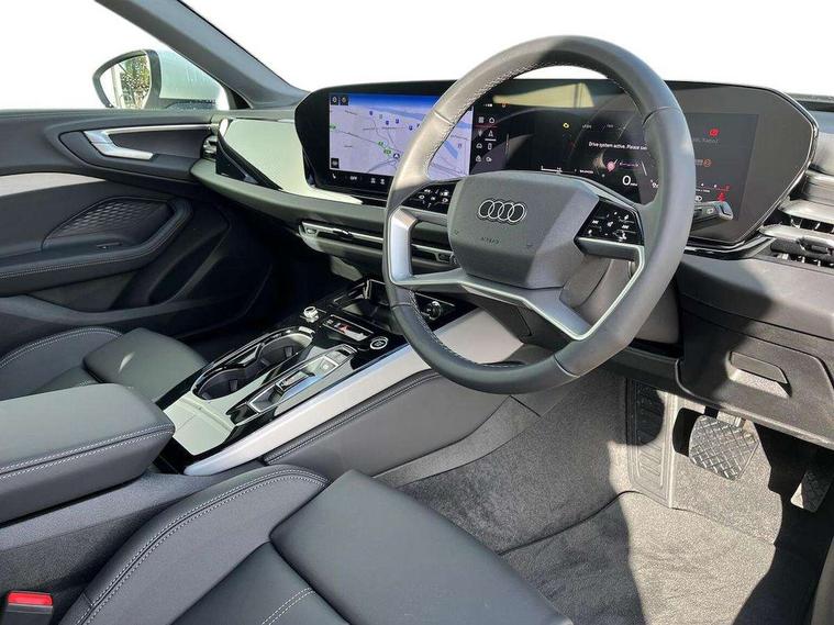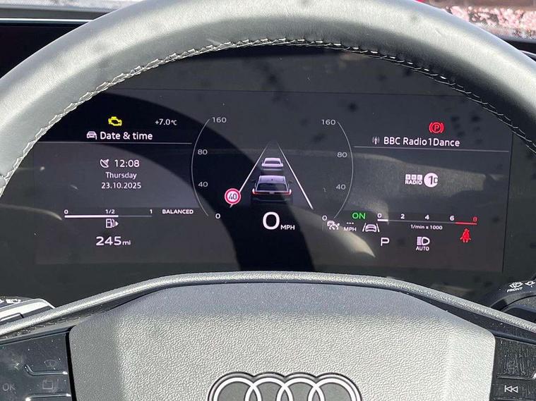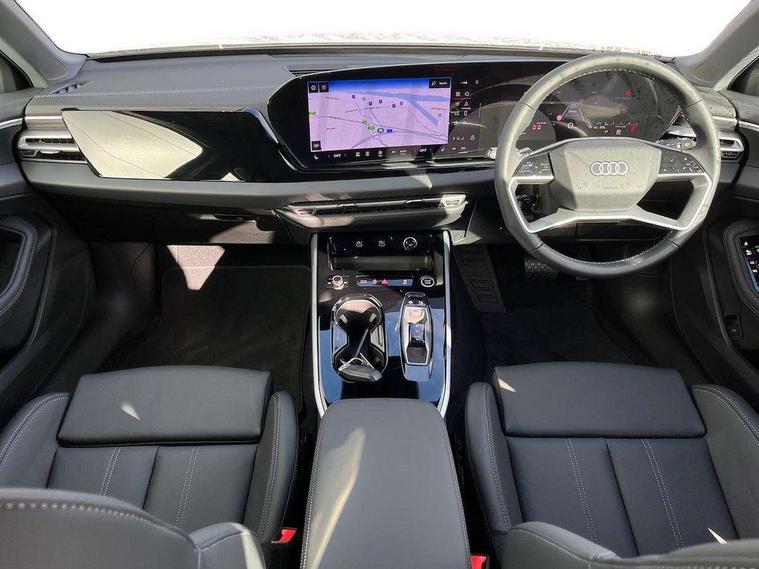 Adaptive cruise control, Advanced driver attention and fatigue montior, Audi application store, Audi assistant, Audi connect emergency call and service, Audi drive select, Audi smartphone interface, Audi virtual cockpit plus with 11.9" OLED colour display, Automatic start/stop system with coasting functionality, Camera based traffic sign recognition, Intersection assist, Lane departure warning, MMI navigation plus with high resolution 14.5" OLED touchscreen colour display, Park assist plus, Parking system plus with 360 display, Progressive steering with servotronic, Rear view camera, Swerve assist and turn assist, Traffic sign based speed limiter, Comfort suspension, 2 USB-C ports in both the front and rear, Audi sound system impressive sound with 10 loudspeakers including centre speaker and subwoofer, 6-channel amplifier with a total output of 180 watts, DAB digital radio reception, Smartphone compartment with wireless charging, Aluminium roof rails, Aluminium window trims, Auto dimming rear view mirror, Body colour door mirrors, Door mirrors - electrically adjustable, heated, folding and auto dimming on both sides, Front and rear electric windows, Front door sill trims with aluminium inlays, illuminated, High beam assist, LED headlights Plus incl. digital daytime running lights, turning light, all-weather light, motorway light, manouevring light and intersection light, LED rear lights pro incl. dynamic rear indicators and illuminated light strip with animated coming and leaving home function, LED third brake light, Rear and side windows with heat insulating glass, Rear side wing doors, Rear wash/wipe, Sport bumpers, radiator grille and diffuser in scandium grey and diffuser insert in matt selenite silver, White rhombus logo projection light in exterior mirrors, Windscreen with acoustic glazing, 3 rear headrests, 3 seat rear bench, 3-zone automatic climate control, 40:20:40 split folding rear seat bench with centre armrest and cup holders, Comfort front centre armrest, Front and rear floor mats, Front seats with manual adjustment for position and 4-way electric lumbar support, Front sport seats with integrated head reastrains, Heated front seats, i-Size child seat mounting on the front passenger side and outer rear seats, i-Size and top tether on the outer rear seats, Luggage compartment lid, electrically opening and closing, Manual steering column height and depth adjustment, Rock grey cloth headlining, Single front passenger seat, Twin leather upholstery, Twin spoke leather steering wheel with multi-function buttons with touch control, shift paddles and trim in chrome look, Ambient lighting package plus - A5, 3x3 point rear seat belts, Driver airbag, Electric child safety locks, First aid kit with warning triangle and vests, Front emergency brake assist, Front passenger airbag, Front passenger airbag deactivation, Front side airbags with head airbag system and front interaction airbag, Hill hold assist, Seat belt monitoring with rear seat occupant reminder, Tyre pressure loss indicator, Anti theft alarm, Anti-theft wheel bolts, Keyless Go, Accent surfaces and control buttons in gloss black, Black dashboard with contrast stitching, Inlays in matt brushed aluminium, silver, Softwrap in leatherette with contrast stitching, Upper and lower interior elements in leatherette, Tyre repair kit,