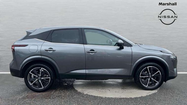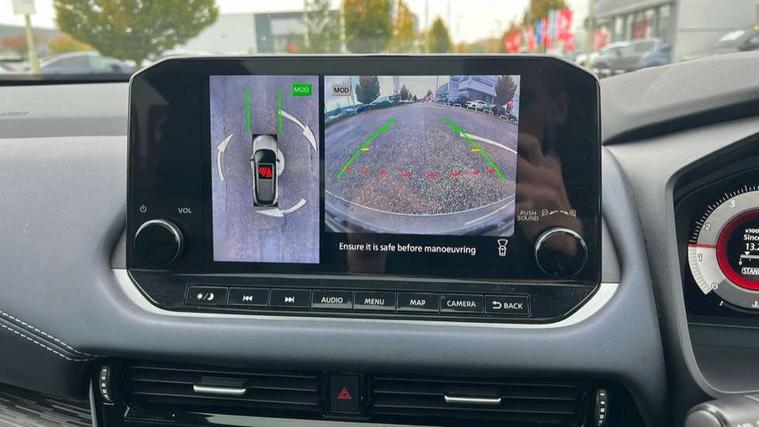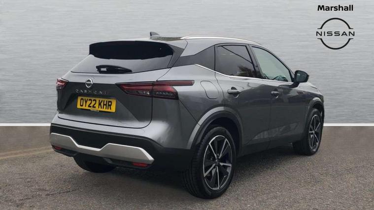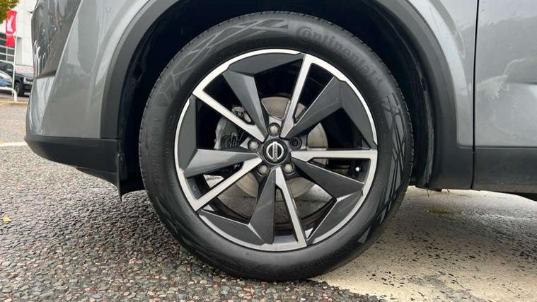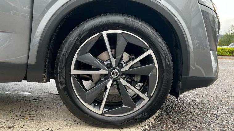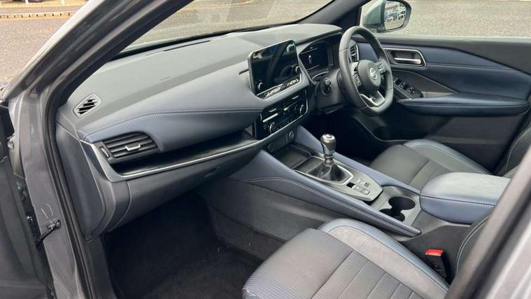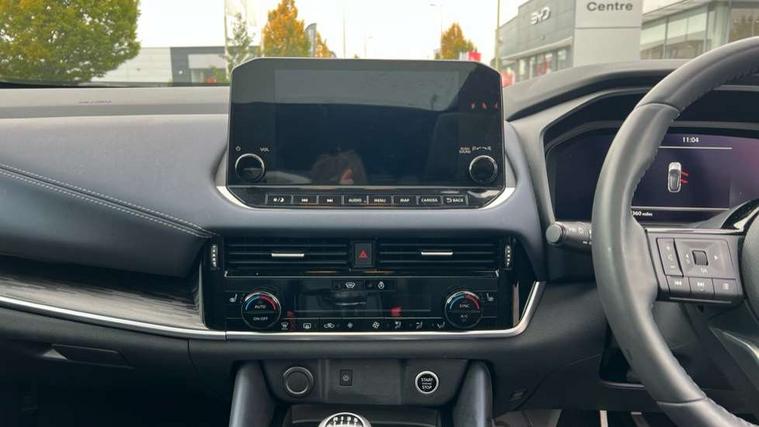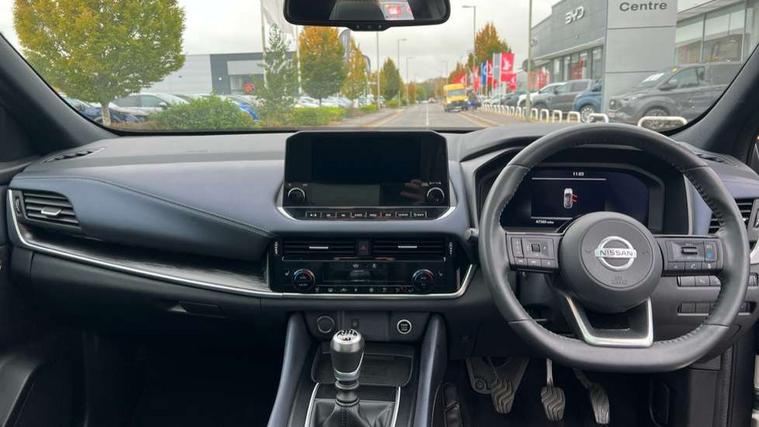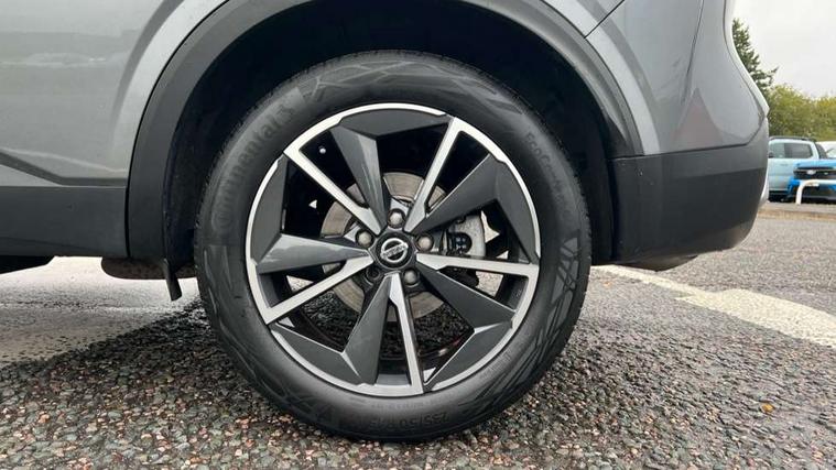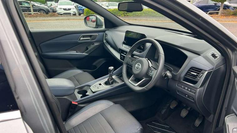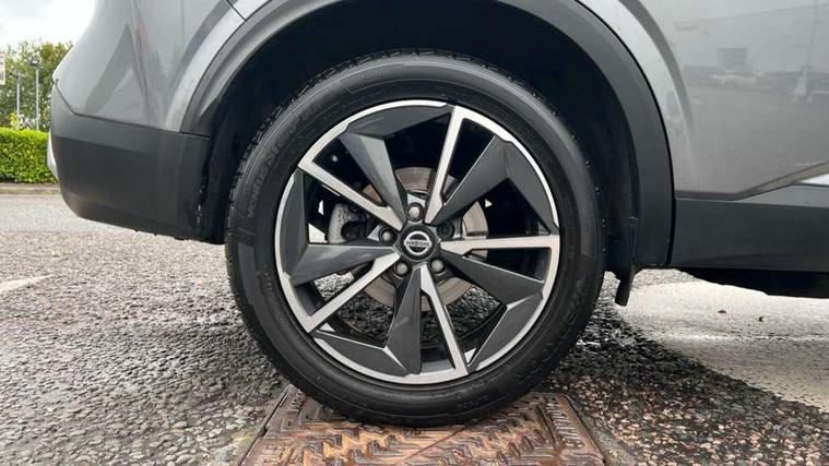 Blind spot warning, Drive modes (sport, normal, eco), Electric speed sensitive power steering, Emergency and breakdown call, Front and rear parking sensors, Full Digital 12.3" TFT Digital Combimeter, Google maps services - search, weather, 3D maps and Google street view, Hands free power tailgate, Idle stop/start system, Intelligent around view monitor, Intelligent Cruise control (ICC), Intelligent driver alert system, Intelligent forward collision warning, Intelligent lane intervention, Lane departure prevention, Lane departure warning system, Moving object detection, Nissan connect 12.3 inch touchscreen infotainment system, Nissan connect navigation, Push button starter, Rear cross traffic alert, Remote control services - door locks, lights, horn and car locator, Telematics - notifications and connectivity services, TomTom live traffic services, Traffic sign recognition with legal speed adjustment, Trip computer, Virtual personal assistant and firmware over the air capability, Wireless Apple CarPlay and wired Android Auto, Wireless charging pad, 6 speakers, AM/FM audio system with DAB, Bluetooth audio streaming, Front USB connections (Type-A and Type-C), Rear USB charging only ports (Type-A and Type-C), Auto dimming rear view mirror, Auto rear wiper when reversing, Automatic hazard signal with emergency stop signal, Body colour mirror caps, Body coloured door handles, Bodyside mouldings, Chrome side window finisher, Door handle with button, Dusk sensor, Electric auto folding door mirrors, Electrically adjustable and heated door mirrors with LED turn indicator, Fixed panoramic glass roof with electric sunshade, Follow me home headlights, Front and rear LED turning signals, Intelligent auto headlights, LED daytime running lights, LED rear lights, One touch front and rear electric windows with remote opening and closing, Partially body coloured bumpers, Privacy glass, Rain sensor, Rear bumper with graphite insert, Rear roof spoiler, Rear side wing doors, Rear styling plate, Roof rails, Shark fin antenna, Splash free rain sensing wipers, Super UV and infrared cut glass, Three blink turn signal, 12v power socket in dashboard and luggage, 2 way electrical driver lumbar adjustment, 2x Rear coat hooks, 3 bench rear seats in 2nd row, 3 rear headrests, 4 folding assist grip, 6 Luggage hooks - 4 on floor, 2 on side, 60/40 split folding rear seat bench, 8 way electric adjustable drivers seat, Ambient lighting around centre console, Ambient lighting in front doors, Centre console storage tray, Chrome interior door handles, Cloth/syntech leather monoform upholstery, Dark black/blueish PVC wrapping, Dark headlining, Driver and front passenger sunvisors with illuminated vanity mirrors, Driver seat back pocket, Dual zone automatic climate control with pollen filter, Front and rear door storage, Front cupholders x 2, Front door with bottle holders, Glovebox with light, Hard trunk cover, Height adjustable front headrests, Leather shift knob, Leather steering wheel, Luggage board system, Luggage space lighting, Manual lumbar support on passenger seat, Manually adjustable passenger (slide recline + lifter), Multifunction steering wheel, Passenger seat back pocket, PVC front centre console and armrest, Rear armrest with 2 cupholders, Rear door bottle holders, Single front passenger seat, Soft PVC kneepad, Steering wheel switches, Tilt/telescopic adjustable steering wheel, Two rear isofix child seat anchorage points with top tether, Welcome light and doors with console tray ambient lighting, Drive assist pack - Qashqai, Heat pack - Qashqai, Tech Pack (Drive Assist + HUD), 3x3 point rear seatbelt pretensioners + load limiters, ABS, ESP, EBD and brake assist, Active brake limited slip, Auto hold function, Child locks on rear doors, Curtain and front side, far side airbags, Driver and passenger airbags, Driver, passenger and 2nd row rear seat belt reminder, Electronic parking brake, Front seatbelt pretensioners + load limiters, Height adjustable front seatbelts, Hill start assist, Intelligent blind spot intervention, Intelligent front emergency braking with pedestrian, cyclist recognition and junction assist, Intelligent rear automatic braking, Tyre pressure monitoring system, Vehicle dynamic control, Capless fuel filler, Engine immobiliser, Nissan i-key, Remote central door locking with deadlocking, Thatcham Cat.1 alarm, Interior instrumental panel C finisher, 19" Alloy wheels, Tyre puncture repair kit,