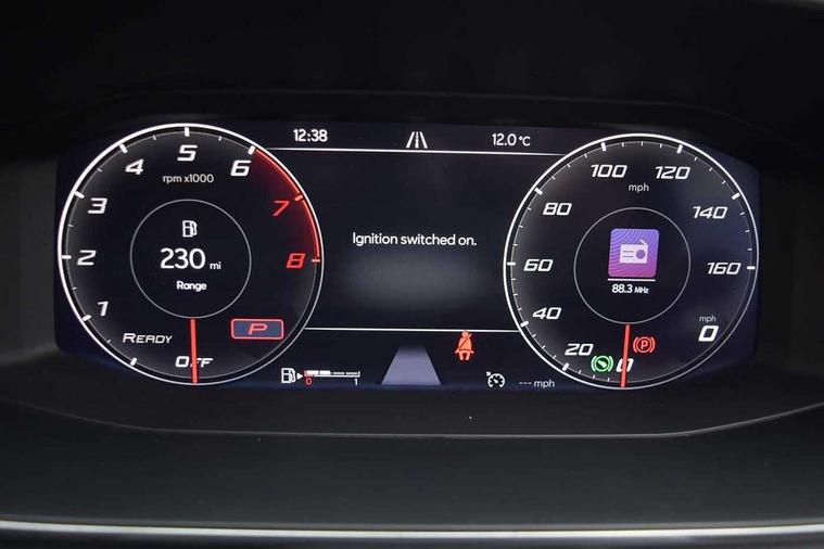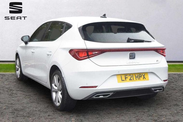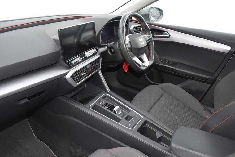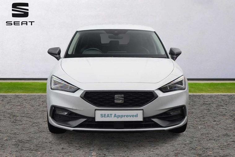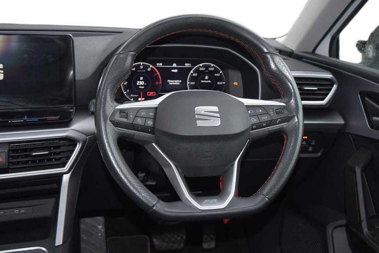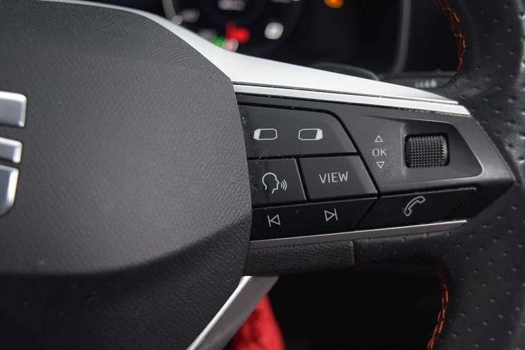 Digital cockpit, Front assist with forward collision warning braking reaction to vehicles, pedestrians and cyclists, Full link smartphone integration with Mirror Link, wireless Apple CarPlay and wired Google Android Auto, Lane keeping system, Lockable tailgate, Park assist (inc front/rear parking sensors), Power assisted speed sensitive electro-mechanical steering, RPM, trip computer, outside temp gauge, instrument light brightness, low fuel warning light, lights on reminder, gearshift indicator, SEAT drive profile with 4 modes (Eco/Normal/Sport/Individual), throttle response and gearshift mode, Service interval indicator, Start/stop system with regenerative braking, Sports suspension, XDS electronic differential lock and dynamic traction support, Auxiliary input socket, Auto dimming rear view mirror, Body colour door handles, Body coloured bumpers, Cosmo grey exterior mirrors with integrated LED indicators, Dark tinted rear windows, Electric front/rear windows, Electrically adjustable, heated and folding door mirrors, FR sports bumper, Illuminated front door sill, LED front fog lamps with cornering function, LED headlights and tail lights with dynamic turn signals, welcome light silhouette from exterior mirrors and dynamic headlight range control, LED rear fog lamp, Rain sensing wipers, Rear wash/wipe, Separate daytime running light with automatic headlight control and coming home feature, 12v power point in centre console, 60/40 split rear bench seat with armrest, Ambient lighting in door trim, Cloth upholstery, Driver/passenger manual seat height adjustment, Dust/pollen filter, Folding boot cover, Front and rear height adjustable headrests, Front and rear reading lights X 4, Front centre armrest, Front seatback storage pockets, Height/reach adjust steering wheel, Interior lighting with LED lighting in sunvisor, glovebox and rear headlining, ISOFIX points in outer rear seats with top tether anchorage points, Luggage tie-down hooks, Lumbar adjustment for front seats, Sunvisors with covered illuminated mirror, Three zone climate control, Media system plus with navigation - Leon, 3 point seatbelts on all rear seats, ABS, Brake control system - ESC and brake booster, Child proof door locks, Driver and front passenger airbags with front passenger airbag de-activation, front side and curtain airbags, Electronic parking brake, Extended safety system - seat belt tensioner, window closure and hazard lights, Hill hold control, Rear disc brakes, Seat belt reminder for front and rear seats, Tiredness recognition system, driver alert system, Tyre pressure monitoring system, Anti theft alarm system with interior monitoring in cab, backup horn and towing protection, KESSY Go (Keyless start), Locking wheel bolts, Wireless phone charging, Chrome interior detailing, 17" Dynamic Bi-spoke alloy wheels with 91W tyres, Tool kit,