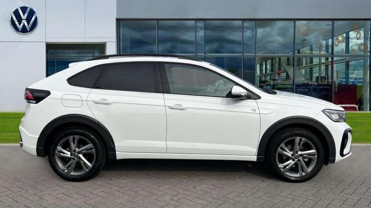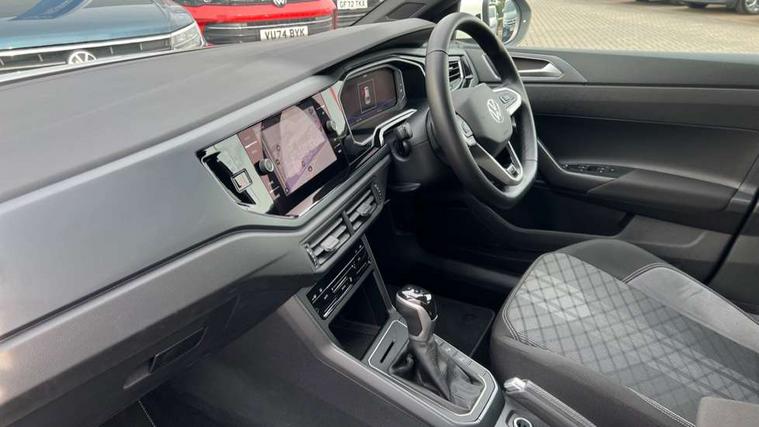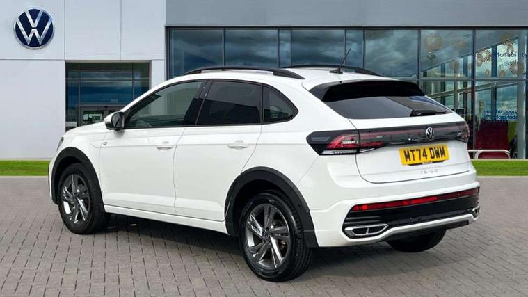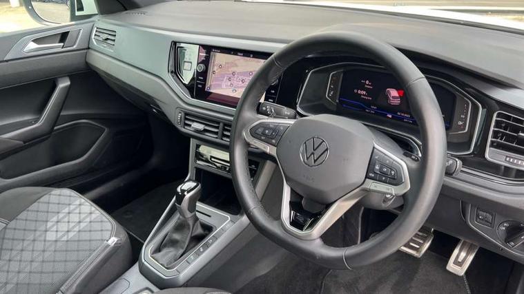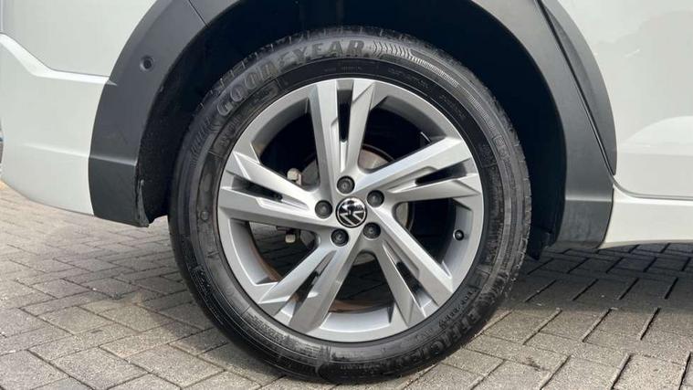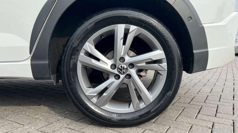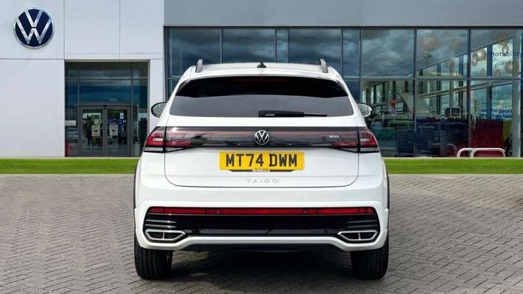 Adaptive cruise control, Advanced driver attention and drowsiness monitor, App-Connect including App-Connect Wireless, Digital cockpit pro - 10.25" high resolution TFT dash display screen with customizable menus and information, Driving profile selection, Dynamic road sign display, e-Call (emergency call), Power Steering, Travel assist including emergency assist, Washer fluid level indicator, Wireless Charging including Bluetooth, Start-stop system with battery regeneration (recuperation - energy recovery during braking), XDS electronic differential lock for improved traction and handling, Digital radio reception (DAB+), Diversity antenna for FM reception, WeConnect plus, Ambient lighting with logo projection, Aspherical driver's exterior mirror, Auto headlights, Body coloured bumpers, Bumpers in R-Line style, Electric windows, External USB type C socket and charging sockets, Front scuff plates with R-Line logo, LED rear combination lamp, LED third brake light, Left convex exterior mirror, Power folding adjustable/heated exterior mirrors and front passenger exterior mirror lowering function, Rear fog light on one side, reversing light on both sides, Rear side wing doors, Rear wash/wipe with intermittent wipe setting, 12V socket in centre console, 2 front reading lights, 3 rear head restraints, 3 seat bench in 2nd row, Air care climatronic air conditoning system with active combination filter and 2-zone temperature control, Black carpets, Black roof lining, Child seat anchor for child seat system i-Size, 2x top tether and child seat anchor in front on front passenger side, Chrome bezel for instrument cluster, vents, door handles + gear shift, Driver and front passenger seat height adjustment, Front + rear carpet mats, Front centre armrest, Front footwell illumination, Front sports comfort seats, Height and reach adjustable steering wheel, Interior ambient lighting and surround lighting, Karoso artvelours cloth upholstery, Leather trimmed gear knob, Leather wrapped multifunction steering wheel, Luggage compartment floor, Luggage compartment light, Lumbar support for driver's and front passengers seat, Seat covers in grey + titanium black, Single front passenger seat, Split folding backrest with centre armrest and unsplit rear seat bench, Stainless steel pedals, Storage compartment under front seats, Sun visors with illuminated vanity mirrors, Chrome Package - Taigo, Drivers assistance pack - Taigo, Light and Sight pack including High beam assist - Taigo, 2 x 3-point seatbelts/outer rear seats with ECE label, 3-point seat belts in front with pretensioner and height adjustment, 3-point seatbelt for centre rear seat, Adaptive driver and front passenger airbags with passenger airbag deactivation function, Driver and front passenger safety-optimised head restraints, Electronic stability control, Extended and predictive pedestrian/ cyclist protection, Front and rear disc brakes, Front curtain and side airbags with center airbag, Hill start assist, Manual rear child locks, Single tone horn, Tyre pressure loss indicator, Anti-theft alarm system with interior monitoring, backup horn, and towing protection, Grey anodised matte decorative inserts in dash and front door panels, Low rolling resistance tyres,
