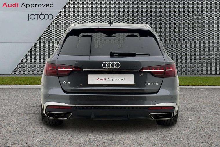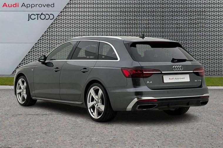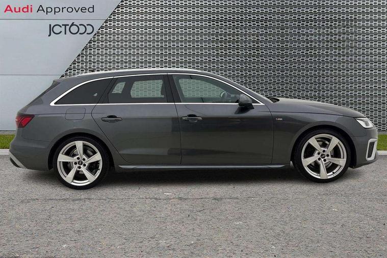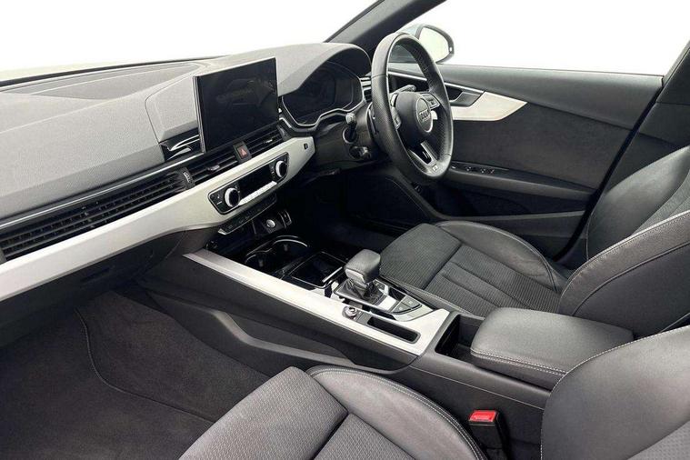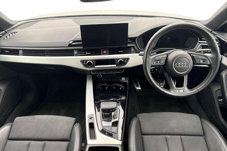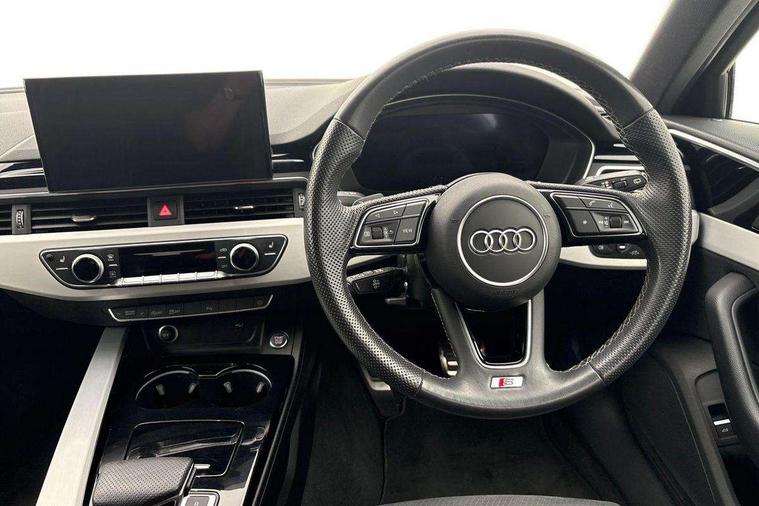 Audi connect safety and service (e-call), Audi drive select, Audi smartphone interface, Audi virtual cockpit, Automatic start-stop system with coasting functionality and efficiency programme, Bluetooth interface, Camera based traffic sign recognition, Electromechanical power steering, Email, calendar and text messages displayed via MMI, Front and rear parking sensors, Lane departure warning, MMI Navigation plus with MMI touch includes 10.1" high resolution colour MMI display, 3D map, Power operated tailgate, Rear view camera, Voice control system, 54 litre fuel tank, Sports suspension lowered by 23mm, 2 USB charging ports, 8 passive loudspeakers, DAB digital radio reception, Aluminium roof rails, Auto dimming rear view mirror, Body colour door handles, Body colour front spoiler lip, Body colour side sill trim, Body coloured door mirrors, Electric adjustable/heated/folding door mirrors with auto dimming, Grained matt black side air inlets with matt aluminium silver inlay, High beam assistant, Honeycomb structure radiator grille in grained matt black, LED headlights with LED rear lights + dynamic rear indicators + headlight adjustment and high beam, turning light + LED daytime running lights, LED third brake light, Matt aluminium silver tailpipe trim, Privacy glass, Rain and light sensors, Rear side wing doors, Rear wiper, S Line badges on the front wings, S line front and rear bumpers with side skirts, S Line rear diffuser in matt anthracite black with trim strip in matt aluminium silver, S Line roof edge spoiler, Variable intermittent front wash/wipe, Windscreen with acoustic glazing, 3 spoke high multi-function sports leather steering wheel grips in perforated leather with S badging including paddle shift, 4 way electric lumbar support for driver and front passenger, 40/20/40 split folding 3 rear seat bench in 3 parts with rear centre armrest, Black carpets, Black cloth headlining, Black perforated leather gearknob, Contrast stitching on seats, steering wheel and gear lever gaiter, Deluxe 3 zone electronic climate control, Electric load area cover, Front and rear head restraints, Front centre armrest, Heated front seats, Illuminated door sill trims with S logo, ISOFIX child seat mounting and top tether, Manual seat adjustment, Single front passenger seat, Stainless steel pedals and foot rest, High gloss package - A4, LED Interior light pack - A4/S4, 3 rear seatbelts, 6 airbags - Driver, front passenger, curtain and side windows, Attention and drowsiness assist, Electronic Stabilisation Control (ESC) including ABS, ASR and EDL, Hill hold assist, Multi collision brake assist, Pop-up bonnet for pedestrian protection, Pre sense city, Rear door child safety locks, Seatbelt monitoring, Warning triangle and first aid kit, Anti theft alarm, Anti theft wheel bolts, Central locking, Keyless Go, Matt brushed aluminium inlays, Tool kit, Tyre repair kit,