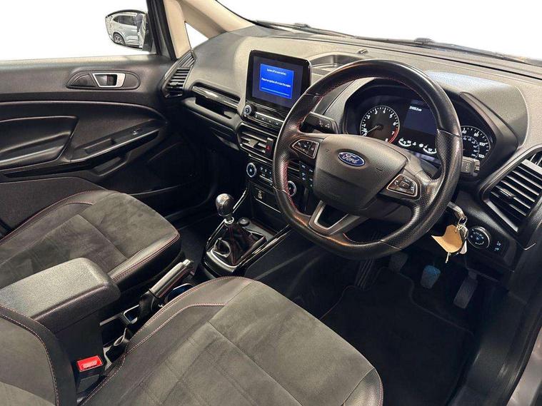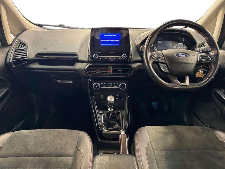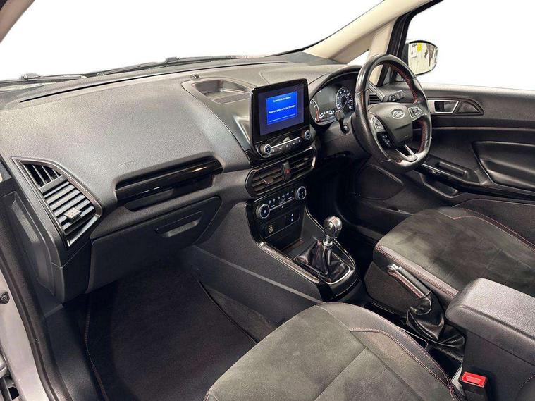 Cruise control, e-Call (emergency call), Easy fuel capless refuelling system, Ford SYNC 3 nav system with DAB radio, 8" screen, emergency assistance, Apple car play/Android auto, 2x USB, 6 speakers, Ford pass connect, Intelligent speed limiter, PAS, Rear parking sensors, Rear view camera, Traffic sign recognition, Trip computer, Sports suspension, Steering wheel mounted audio controls, Auto dimming rear view mirror, Automatic front wipers, Automatic headlights, Black roof rails, Body colour door handles, Body coloured bumpers, Chrome lower window surround, Electrically adjustable and heated door mirrors, Front fog lights, Front grille bars and surround in black, Headlight levelling control, Large rear roof spoiler, LED day running lights, LED third brake light, Power front and rear windows, Puddle lights, Quick-clear heated windscreen, Rear side wing doors, Rear wiper, ST Line body styling kit - Black headlamp bezel, front and rear sport bumpers, body colour lower door claddings, 12V socket in front and rear, 3 seat bench in 2nd row, 60/40 split rear seats, Ambient lighting, Centre console with sliding front armrest, Cooled glovebox, Courtesy lights with map reading light, Driver seat height/lumbar adjust, Driver's side glovebox, Driver/passenger sunvisors and lidded vanity mirrors, EATC - Electronic Auto Temperature control, Folding grab handles, Front head restraints, Front seat back map pockets, Illuminated glovebox, Illuminated luggage compartment, Isofix system on outer rear seats, Luggage compartment carpet, Neosuede/Partial sensico leather upholstery, Overhead console with sunglasses holder, Rake adjustable rear seats, Reach + rake adjustable steering column, Rear headrests, Sensico trimmed steering wheel, handbrake and gearshift gaiter with red stitching, Single front passenger seat, ST-Line Front floor mats with red stitching, Stainless steel sports pedals, Storage drawers under front seats, Tie down hooks, Variable boot floor, 3x3 point rear seatbelts, ABS, Autonomous emergency braking, Child locks on rear doors, Curtain airbags, Driver airbag, Drivers knee airbag, Electronic Stability Programme with hill launch assist, Front passenger airbag deactivation, Front side airbags, Passenger airbag, Pre collision assist system with AEB, Seatbelt reminder for driver and front passenger, Traction control, Tyre pressure monitoring system, Immobiliser, MyKey system, Remote central locking, Thatcham 1 volume sensing alarm, Low rolling resistance tyres, Tyre inflation kit,