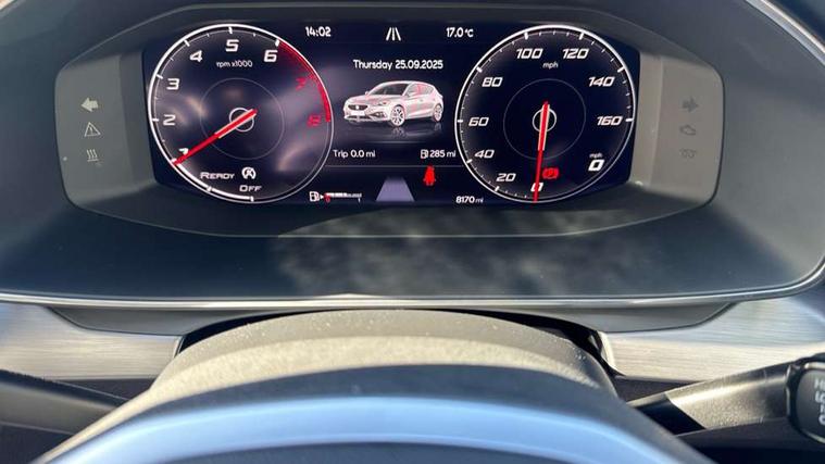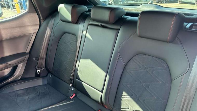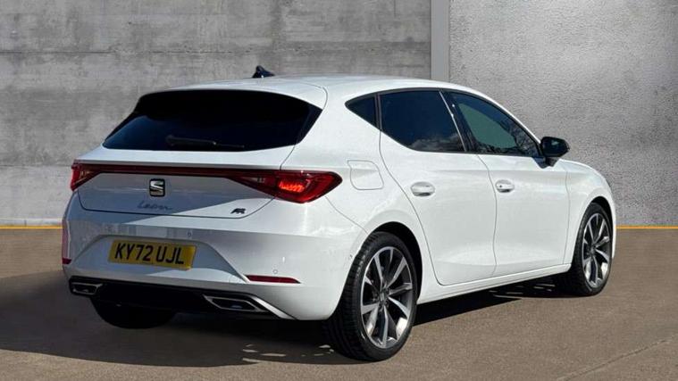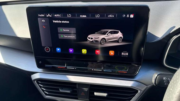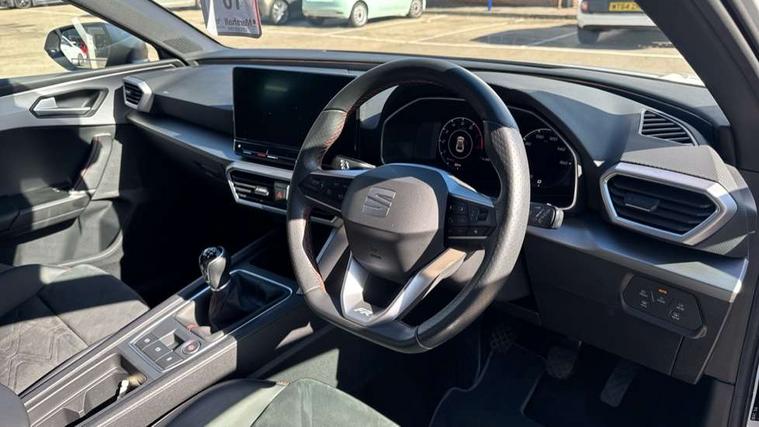 Digital cockpit, E-call, Four x USB Type C ports, Front assist with forward collision warning braking reaction to vehicles, pedestrians and cyclists, Full link smartphone integration with Mirror Link, wireless Apple CarPlay and wired Google Android Auto, Lane assist, Lockable tailgate, Park assist (inc front/rear parking sensors), Power assisted speed sensitive electro-mechanical steering, RPM, trip computer, outside temp gauge, instrument light brightness, low fuel warning light, lights on reminder, gearshift indicator, SEAT drive profile with 4 modes (Eco/Normal/Sport/Individual), throttle response, Service interval indicator, Start/stop system with regenerative braking, Sports suspension, XDS electronic differential lock and dynamic traction support, 7 speakers, Auxiliary input socket, Auto dimming rear view mirror, Body colour door handles, Body coloured bumpers, Dark tinted rear windows, Door mirror LED indicator lights, Electric adjustable/heated/folding door mirrors with memory, Electric front/rear windows, FR sports bumper, Illuminated front door sill, LED front fog lamps with cornering function, LED headlights and tail lights with dynamic turn signals, welcome light silhouette from exterior mirrors and dynamic headlight range control, LED rear fog lamp, Rain sensing wipers, Rear side wing doors, Rear wash/wipe, Separate daytime running light with automatic headlight control and coming home feature, Third brake light, 12v power point in centre console, 3 seat bench in 2nd row, 60/40 split rear bench seat with armrest, Ambient lighting with glovebox, footwell and single monocolour, Black headlining, Dust/pollen filter, Electric driver lumbar support + passenger manual lumbar support, Folding boot cover, Front and rear height adjustable headrests, Front and rear reading lights X 4, Front centre armrest, Front seatback storage pockets, Heated front seats, Heated leather steering wheel with leather gearstick, Height/reach adjust steering wheel, ISOFIX points in outer rear seats with top tether anchorage points, Luggage tie-down hooks, Microsuede cloth upholstery, Power driver seat with memory and manual height adjustable passenger seat, Single front passenger seat, Sunvisors with covered illuminated mirror, Three zone climate control, Tool kit, Wraparound lighting, Media system plus with navigation - Leon, 3 point seatbelts on all rear seats, ABS, Brake control system - ESC and brake booster, Child proof door locks, Driver and front passenger airbags with front passenger airbag de-activation, front side and curtain airbags, Electronic parking brake, Extended safety system - seat belt tensioner, window closure and hazard lights, Hill hold control, Rear disc brakes, Seat belt reminder for front and rear seats, Tiredness recognition system, driver alert system, Tyre pressure monitoring system, Anti theft alarm system with interior monitoring in cab, backup horn and towing protection, KESSY Go (Keyless start), Locking wheel bolts, Wireless phone charging, Chrome interior detailing, 18" Performance machined alloy wheels with 92Y tyres,