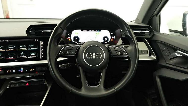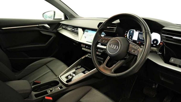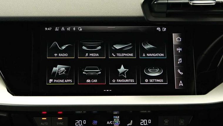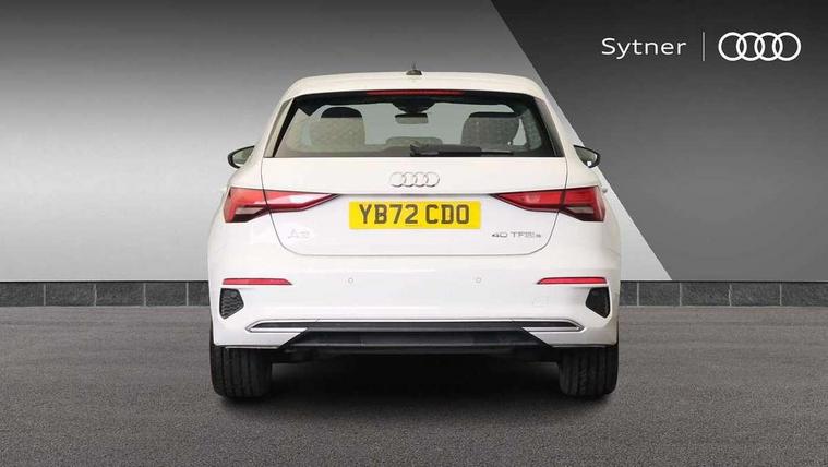 Audi drive select (Auto, Comfort, Dynamic, Efficiency and Individual), Audi smartphone interface, Audi Virtual Cockpit - 10.25" digital and colour instrument cluster, Automatic start/stop system with recuperation, Bluetooth interface, Collision avoidance assistant, e-Call (emergency call), Electromechanical power speed sensitive steering, Lane departure warning system, MMI Navigation Plus with high resolution 10.1" colour touch screen display, Service indicator, Trip computer, Voice control system with natural language interaction, 3 pin 10 amp domestic charging cable, 3.6 kw On-board charger, Standard suspension, Type 2 mode 3 32 amp charging cable, Type 2 socket for AC charging, 2xUSB-C connection with data and charging functions, 6 passive loudspeakers, DAB Digital radio, 3rd brake light, Acoustic glass windscreen, Aluminium window trim, Auto dimming frameless rear view mirror, Body colour exterior mirrors, Body colour roof spoiler, Electrically adjustable/heated/folding/auto dimming door mirrors with integrated LED indications + kerb view function for passenger side, Front electric windows, LED daytime running lights, LED headlights and halogen rear lights, Light and rain sensors, Rear electric windows, Rear side wing doors, Rear window, rear door windows and rear side windows in clear glass, Rear wiper, 12V socket and storage compartment in front centre console, 3 seat bench in 2nd row, 40/20/40 split folding rear seat bench with cupholder, Dual zone electronic climate control, Front and rear centre armrest, Front and rear headrests, Front door sill trims with aluminium inlay, Front/rear floor mats, Height and reach adjustable steering wheel, Interior lighting - Front and rear roof module including reading lights, glove compartment light and right hand side, Luggage compartment floor covering, Manual boot compartment lid, Manually adjustable front seats, Seat side bolsters, Single front passenger seat, Steel grey cloth headlining, Twin leather upholstery, Aluminium interior elements pack - A3 Sportback, Sport styling pack - A3 Sportback, 3x3 point rear seat belts, Audi pre sense front, Driver and front passenger airbag with passenger airbag deactivation, Electronic Stabilisation Control (ESC) including ABS, ASR and EDL, First aid kit with warning triangle and 2 safety vests, Front side airbags with head airbags and interaction airbag, Pre-sense front with pedestrian and cyclist detection, Seatbelt monitoring, Tyre pressure loss indicator, Anti theft alarm, Anti-theft wheel bolts, Electronically operated child lock, Immobiliser, Remote control central locking, Inlays with silk effect paint in platinum grey, Tool kit, Tyre repair kit,