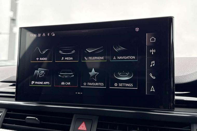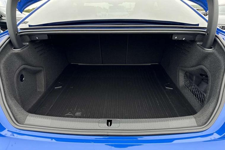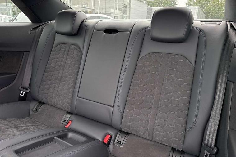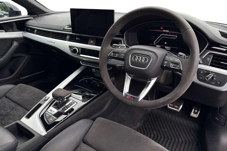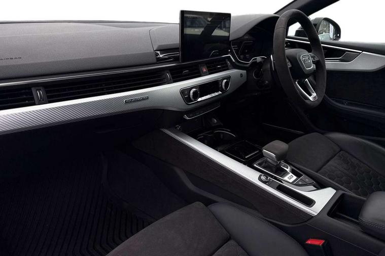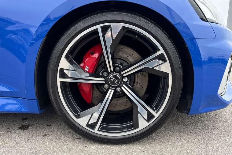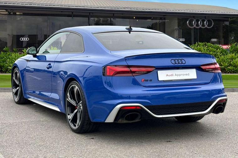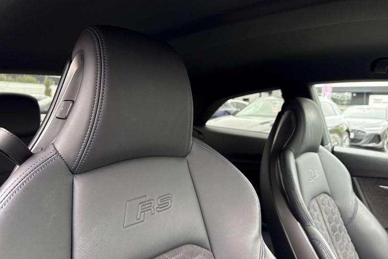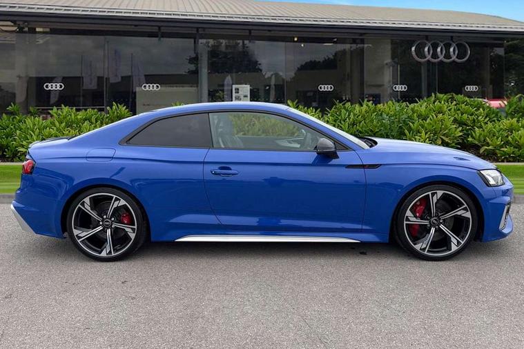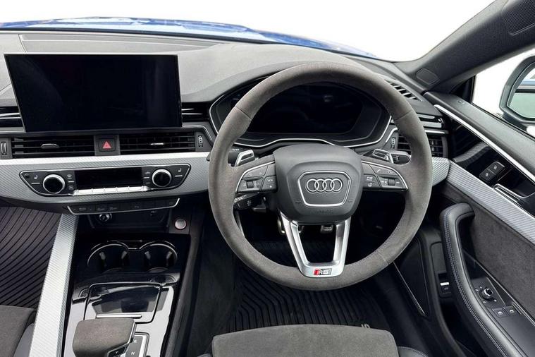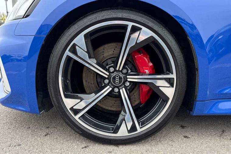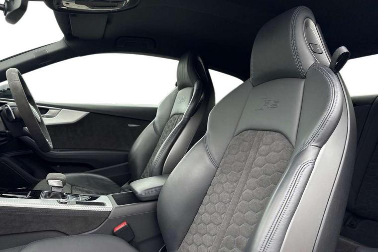 360 degree camera, Advanced key with electric hands free boot opening system, Audi connect safety and service (e-call), Audi parking system plus with front and rear sensors, Audi phone box with wireless charging, Audi side assist, Audi smartphone interface, Audi Virtual Cockpit with RS specific design and 12.3" display, Automatic start-stop system with coasting functionality and efficiency programme, Bluetooth interface, Cruise control system with speed limiter with free wheeling capability, Electromechanical power steering, Email, calendar and text messages displayed via MMI, MMI Navigation plus with MMI touch includes 10.1" high resolution colour MMI display, 3D map, RS Audi drive select, RS drive modes on steering wheel, Service interval indicator, Voice control system, Quattro sports differential, RS sports suspension, Bang + Olufsen 3D sound system, DAB digital radio reception, Audi Beam uses LEDs to project the Audi logo, Audi exclusive paint, Audi matrix LED headlights with LED rear lights + dynamic front and rear indicators, Audi rings and lettering glossy black, Auto dimming rear view mirror, Body colour door handles, Electric front windows, Electric rear windows, Electrically folding, adjustable and heated door mirrors with integrated LED side indicators and kerb view function for passenger side, Exterior mirror housing in high gloss black, Front blade, side flaps, sill extension inserts and horizontal bar in rear diffuser in aluminium matt look, High beam assistant, Larger singleframe grill, LED daytime running lights, Privacy glass with rear acoustic glazing, Rain and light sensors, RS bumper with quattro lettering, RS sport exhaust system, RS5 badges on grille, the front wing panels and rear, RS5 dual branch chrome tailpipes with left and right oval pipes, Windscreen with acoustic glazing, 2 x USB charging port with aux input socket, 40/20/40 split folding 2 seater rear seat bench with rear centre armrest, 40/20/40 split folding 3 seater rear bench seat, Alcantara side centre console, black with contrast stitching in denim blue, Aluminium shift paddles, Black cloth headlining, Deluxe 3 zone electronic climate control, Door armrest in fine nappa leather, black with contrast stitching in denim blue, Electrically adjustable front seats, Fine nappa leather with contrast honey comb stitching + super sports seats with pneumatic massage function, Floor mats in black and denim blue contrast stitching on floor and piping in alcantara coblat blue, Front head restraints, Heated front seats, Illuminated door sill trims with RS5 logo, ISOFIX child seat mounting and top tether, Leather door armrests and knee pad, Rear head restraints, Seat centre panels in alcantara, black with honeycomb pettern in denim blue, Seat side bolsters, head restraints and centre armrest, front in fine Nappa leather, black with contrast stitching in denim blue backrests, Selector lever knob in Alcantara, black and selector lever gaiter in leather, black with contrasting stitching in denim blue, Stainless steel pedals, Steering wheel rim in Alcantara, black and contrasting stitching in denim blue, Tool kit, Extended LED Interior multi-coloured lighting pack - A5/RS5, RS bodystyling pack - RS5, 2 x 3-point rear seat belts, 6 airbags - Driver, front passenger, curtain and side airbags, Electromechanical parking brake, Electronic Stabilisation Control (ESC) including ABS, ASR and EDL, Front passenger airbag deactivation, Height adjustable front seatbelts, High gloss red painted brake callipers with RS logo at front, Hill hold assist, Multi collision brake assist, Pop-up bonnet for pedestrian protection, Pre sense city, RS Model enhanced braking system, Seatbelt monitoring, Tyre pressure warning, Warning triangle and first aid kit, Anti theft alarm system, Anti theft wheel bolts, Immobiliser, Keyless Go, Remote control key with RS emblem, Aluminium race inlays, 20" 5 arm flag design sport alloy wheels with gloss anthracite black and diamond cut finish, Tyre repair kit,