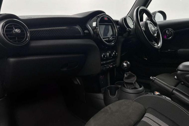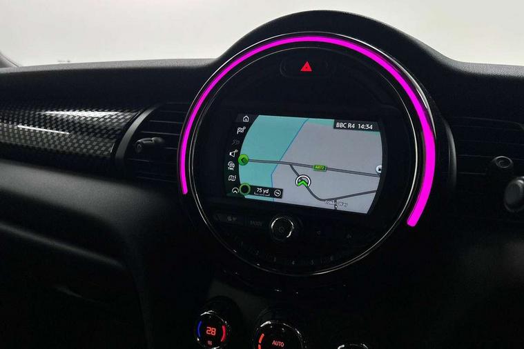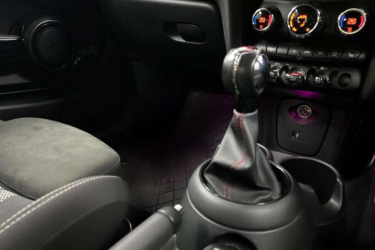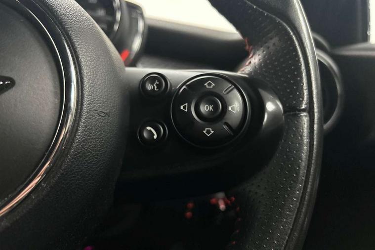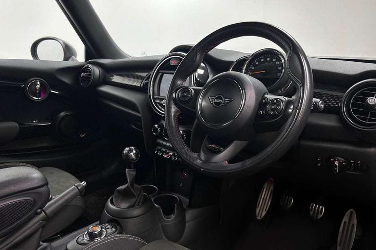 Compatible mobile phone bluetooth with audio streaming, Instrument cluster, Mini E-call, MINI TeleServices, On board computer, Service interval indicator, Performance Control, 6.5" touchscreen with LED ring, FM tuner and DAB digital radio, Automatic headlight activation switch, Bonnet scoop, Chrome border honeycomb structure radiator grille with S badge, Chrome plated fuel cap, Dynamic brake lights, Electric front+rear windows, Heated rear window, Heated windscreen washer jets, John Cooper Works - aerodynamic kit (front and rear apron, spoiler), front and rear sport bumpers and part-painted side sills with door sill finishers, John Cooper Works rear spoiler, LED headlight with closed ring and daytime driving lights, Metal door sill strips with Cooper S imprint, Model logo Cooper S on right of tailgate, Rain sensor window wipers, Rear fog lights, Rear LED lights with union jack design, Rear window wiper, Side scuttle panel with integrated indicator, Sun/heat protection glass, Two central exhaust tailpipes with chrome finisher, White indicator lenses, 12V Accessory socket in centre console, 4 lashing eyes in luggage compartment, 60/40 split folding rear seat, Anthracite headlining, Chrome interior highlights, Cupholders, Front and rear isofix with front passenger airbag deactivation, Glove compartment, Height and length steering column adjustment, Interior lighting with 12 basic colours selectable via toggle switch in roof, John Cooper Works leather steering wheel with contrasting stitching in Chilli Red with John Cooper Works logo, John Cooper Works Logo in seat, Leather gearshift lever and handbrake gaiters, LED reading lights, vanity mirror lights, front foot well light and spotlight on front seats, Manual air conditioning, Mechanical seat adjustment, driver seat height adjust, forward/back and front seats backrest, Mini logo projection on floor from drivers exterior mirror, Multifunction steering wheel, Storage compartments in doors, Storage pocket on back of front seats, Sunvisors with vanity mirrors, 3 point seatbelts on all four seats, 6 Airbags - front, side, head and seat belt tensioners, Anti-lock braking system (ABS), DSC - Dynamic Stability Control, Front and rear disc brakes, Hill start assist, Two tone horn, Tyre pressure monitoring system, Alarm system with tilt sensor, monitoring doors, bonnet interior and tailgate, Electronic vehicle immobiliser, Start/stop toggle with keyless go, Tool kit,