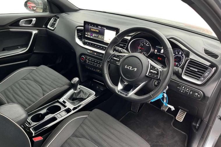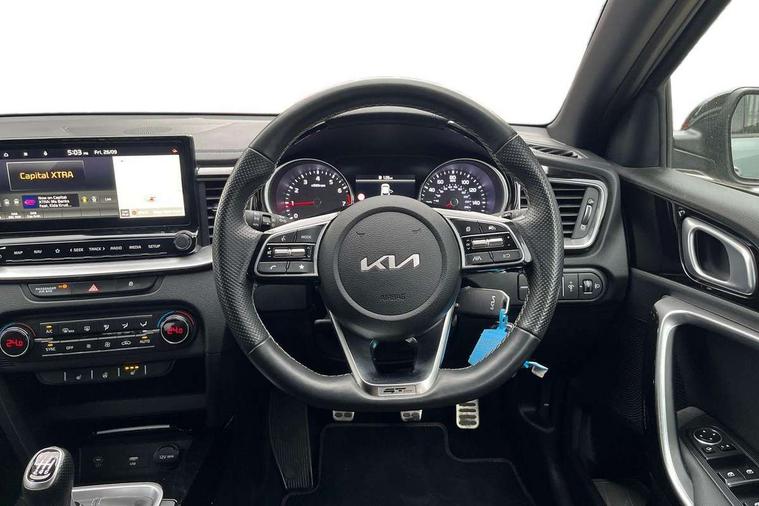 10.25" touchscreen satellite navigation, 4.2" supervision colour cluster display, Android auto with voice control, Apple car play with voice control, Bluetooth with Voice Recognition & Music Streaming, Cruise control + speed limiter, Driver attention warning, Emergency call service, Forward Collision-Avoidance Assist (FCA) - City/Pedestrian/Cyclist, Intelligent speed limit warning, Lane Following Assist (LFA), Lane keep assist, Motor driven power steering, Rear parking sensor, Reversing camera with dynamic guide lines, Tailgate, Trip computer, Intelligent Stop and Go, 1x Rear USB-C, 2x Front USB (1x USB-C, 1x USB-A), 7 speakers, DAB Radio with MP3, Rear console USB C-type charge port, Steering wheel mounted controls, All-round Electric Windows with Auto Up & Down Function, Auto dimming rear view mirror, Automatic defog system, Automatic headlights, Black side sill mouldings with body coloured inserts, Black wheel arch trim, Body colour bumpers, Body colour exterior door handles, Body colour rear roof spoiler, Body coloured and dark chrome rear skid plate, Body coloured shark fin antenna, Dark chrome window surround, Electrically folding, adjustable and heated door mirrors with integrated LED indicator lights, GT-Line body kit, Heated rear window with timer, High beam assist, High gloss black door mirrors with matt black lower housing, High gloss black roof rails, High glossy black and dark chrome radiator grille, LED Bi-Function projection headlights, LED daytime running lights, LED front fog lights, LED High-mounted Brake Light, LED honeycomb rear light, LED rear fog light, Privacy glass - Rear windows and tailgate, Rain sensing front wipers, Rear side wing doors, Rear wiper, Smaller XCeed badge on rear left hand tailgate, Sports front bumper, Tinted glass, Variable front intermittent wipers, Wide view drivers door mirror, Windscreen Washer Level Warning, 3 seat bench in 2nd row, 60/40 split folding rear seat, All-round height adjustable headrests, Aluminium pedals, Centre Console with Storage Box and Sliding Armrest, Chrome interior door handles, Cloth/faux leather upholstery, Cupholders in centre console, Driver + front passenger electric lumbar support, Driver and passenger front seat pockets, Driver's seat height adjuster, Dual zone automatic air conditioning, Faux leather door trim, Front and luggage area 12V power sockets, Front and rear door storage, Front cabin map light with sunglasses case, Front Passenger Seat Height Adjuster, Heated front seats, Heated steering wheel, Illuminated driver and front passenger sunvisors with vanity mirror, ISOFIX Child seat top tethers and anchor fixings, Leather D cut steering wheel, Luggage area light, Luggage area parcel shelf, Luggage hooks, Rear cabin light, Rear centre armrest with cupholders, Single front passenger seat, Sports seats, Tilt/telescopic adjustable steering wheel, Towing pack - XCeed, ABS with Electronic Brakeforce Distribution (EBD) and Brake Assist System (BAS), All round 3-point seatbelts, Dual horn, Electronic parking brake, Electronic stability control (ESC) and vehicle stability management (VSM), Front passenger airbag cut off switch, Height adjustable front seatbelts, Hill start assist control (HAC), Impact sensing auto door unlocking, Rear door child safety locks, Seatbelt reminder warning, Traction control, Twin curtain airbags, Twin front airbags, Twin front side airbags, Tyre pressure monitoring system, Alarm system, Engine Immobiliser & Deadlocks, Locking wheel nuts, Remote central door locking with fold away key, 18" GT-Line alloy wheels, Tyre mobility kit,