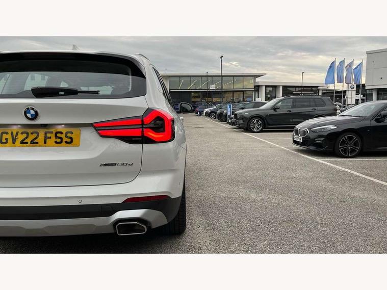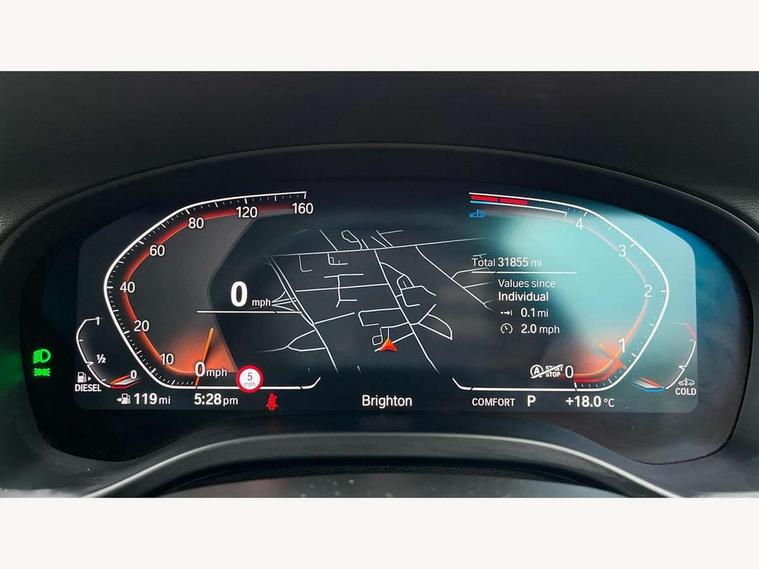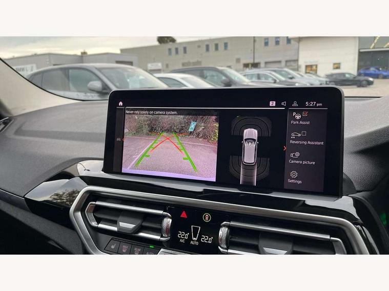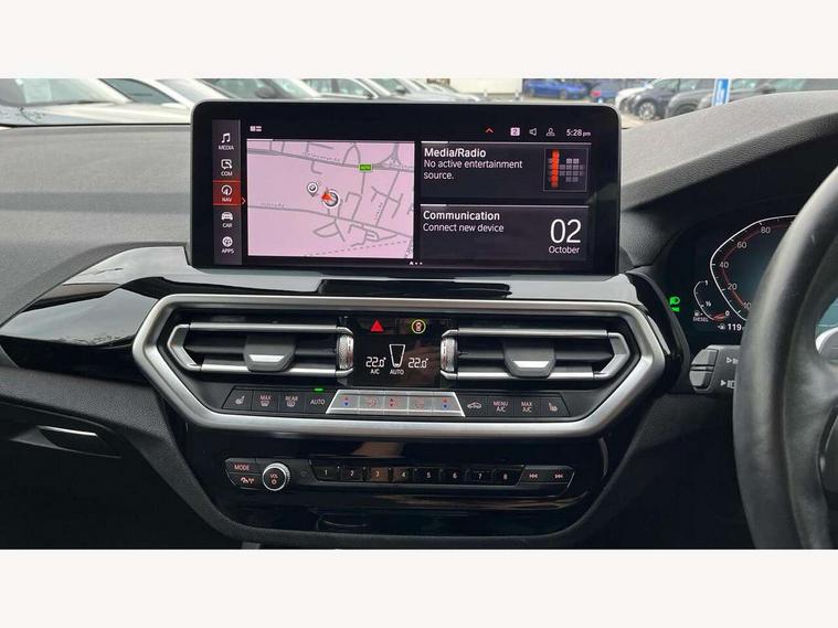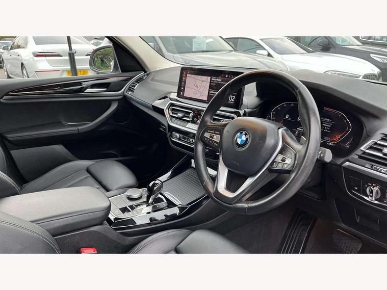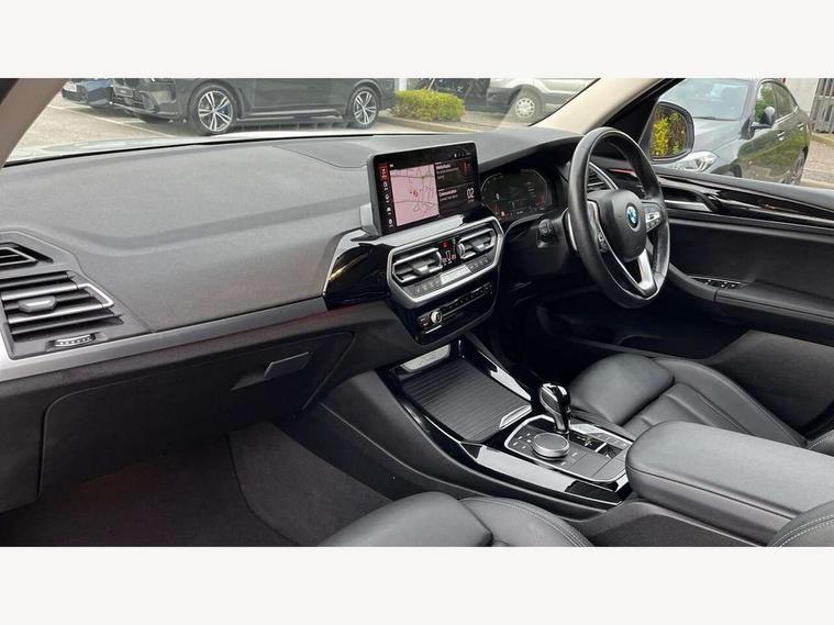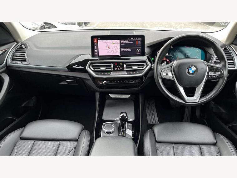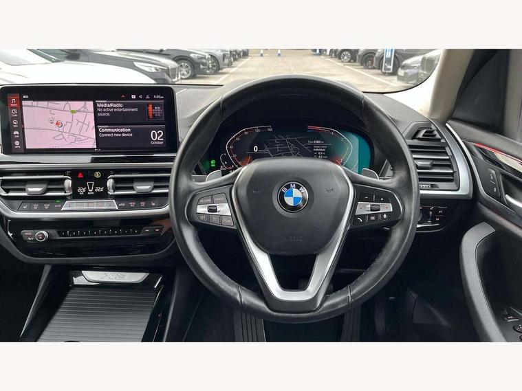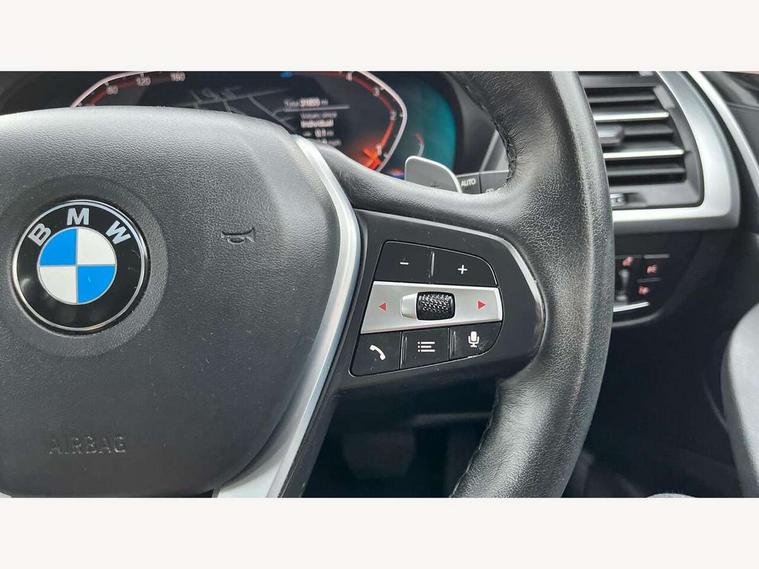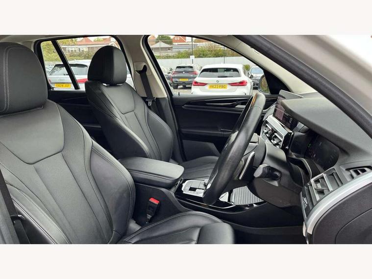 Active Guard, Attentiveness assist, BMW Live Cockpit Professional nav system including 12.3" instrument display + 12.3 high resolution control display, BMW Online services, BMW Teleservices, Brake pad wear indicator in front and rear, Check Control warning system for monitoring of lights and door/luggage compartment open warning, Condition based service - BMW service history, electronic service booklet, integrated owner's handbook, Connected drive services, Cruise control with brake function + speed limiter, Electric boot lid, Electric Power Steering (EPS) with Servotronic, Front/rear Parking distance control, iDrive Controller with 8 favourite buttons, Instrument cluster with speedometer with mph readout, tachometer, fuel gauge and oil temperature gauge, Lights on warning by audio warning signal when ignition is switched off, Oil sensor for level and grade, warning by check control system, On board computer - average speed+fuel consumption, service interval, clock/date, odometer/trip meter, outside temperature display and ice warning, Optimum shift indicator, Personal Profile - automatic lock when driving away selectable, Run flat indicator, Stop/start system, Automatic transmission with gearshift paddles, Diesel particulate filter, Incorrect fuelling protection, Larger capacity fuel tank, Multi-link rear suspension, BMW professional radio/CD/MP3, DAB tuner, Acoustic glazing, Aluminium exterior trim, Automatic windscreen wipers and automatic headlight, Black finish on B pillars, Body colour door handles, Body colour electric adjust heated aspherical door mirrors, Body colour roof mouldings, Body coloured bumpers, Direction indicator, side repeaters, integrated in exterior mirrors, Dynamic brake lights, Exhaust tailpipes - dual, round, split left and right with chrome finisher, Fingertip control / anti-trap function on electric window, Folding wing mirrors with auto dimming, Follow me home headlights, Front and rear bumper system with replaceable deformation elements, Front and rear electric windows, Glacier silver metallic matt in side sills, Gloss chrome tailpipes finishers, Green tinted heat insulating glass, Heated windscreen washer jets, High beam assistant, High level 3rd brake light incorporating LED Technology, Interior rear view electrochromatic mirror with automatic anti dazzle function, LED tail lights, Lightweight engineering, M Sport entry door sill strips, Matt aluminium roof rails, Model designation, Rear side wing doors, Rear wing door, Rear wiper, Shark fin antenna, Visible VIN plate, Welcome lighting, Windscreen wipers with adjustable interval, xLine exterior styling with underbody protection, 12V power socket in front centre console, 3 rear headrests, 3 seat bench in 2nd row, 3 spoke sports leather multi-function steering wheel, 3 zone automatic air conditioning, 4 lashing points to secure luggage, 40:20:40 split folding rear seat with loading system, Ambient lighting, Automatic interior light when door is opened/ignition switched off or via remote key, Deletion lumbar support/width adjustment passenger side, Floor mats in velour, Foldable storage floor with compartment, Four grab handles integrated in roof lining, Front and rear bottle holders integrated into door trim storage compartments, Front and rear side armrests integrated into door trim, Front centre armrest with storage compartment, Front door sill finishers with BMW X-line designation, Front footwell lights, Front head restraints, Front passenger seat, Front sports seats, Front/rear courtesy lights with soft on/off dimming, Front/rear reading lights, Heated front seats, Isofix rear child seat preparation, Leather gear knob, Luggage area underfloor compartment, Luggage compartment lighting, Parcel shelf removeable and storable under boot floor, Reach and rake adjustable steering column, Rear centre armrest with 2 cupholders, Removable / retractable luggage cover, Sensatec perforated upholstery, Slope adjustable rear seats, Storage compartment in rear centre console and front/rear door trims, Sun visors with vanity mirrors and ticket pocket, Toolkit located in luggage compartment, Two front cupholders with removable oddments tray/lid, Connected pro pack - X3, Driving assistant pack - X3, ADB - Automatic Differential Brake, Anti-lock braking system (ABS) with brake assist, Automatic Stability Control (ASC), Battery safety cut-off, BMW emergency call, Brake drying, Brake energy regeneration, Braking pre-tensioning, Child locks on rear doors, Cornering brake control (CBC), Crash Sensor - activation of central locking release, hazard warning light and interior lighting, Deactivation of fuel pump in the event of a crash, Driver and front passenger front and side airbags with passenger deactivation and ITS front and rear head airbags, DSC+, Dynamic brake control, Dynamic Traction Control - DTC, Electromechanical parking brake, Hill descent control, Hill start assist, Seatbelt security check for front seats, Side impact protection, Three point seatbelts to all seats with front and outer rear pyrotechnic belt tensioners and seat belt force limiters, Two tone horn, Tyre pressure sensor, Ventilated front and rear disc brakes, Warning triangle and first aid kit, Central locking switch for all doors, fuel filler cap and luggage compartment, Electronic engine immobiliser, Locking wheel nuts, Remote control including two integrated key - one button for open/close all lockable content, windows and separate button for open luggage compartment, Remote control Thatcham category 1 alarm, Start/stop button with Comfort Go keyless engine start and auto Start/stop deactivation button, Low rolling resistance tyres, Tyre repair kit,